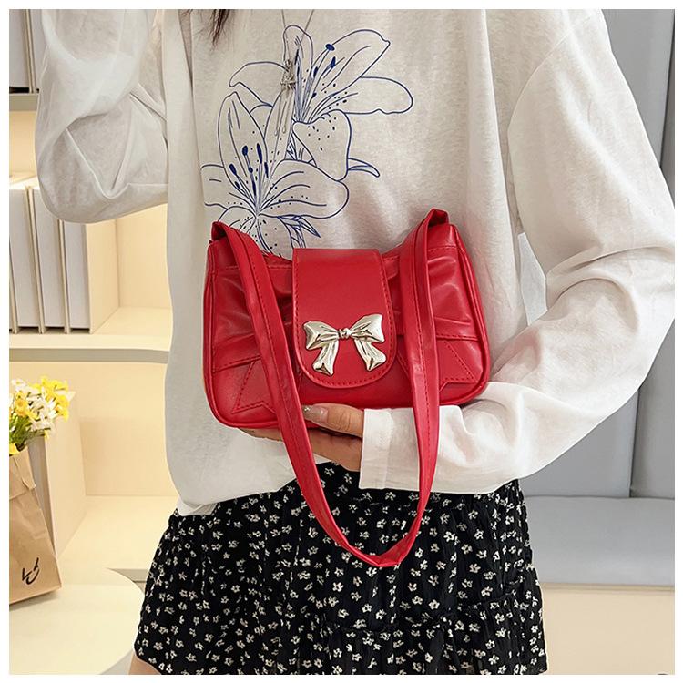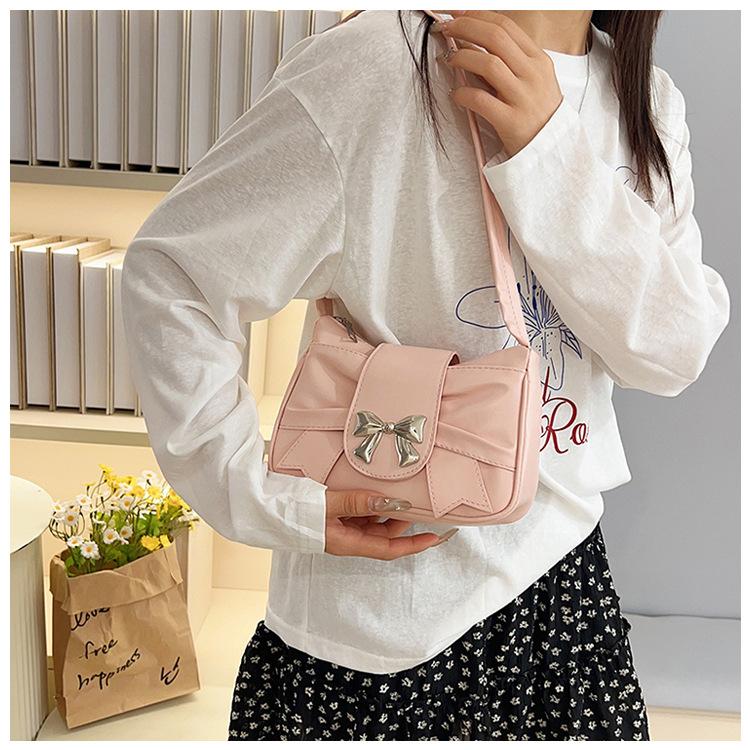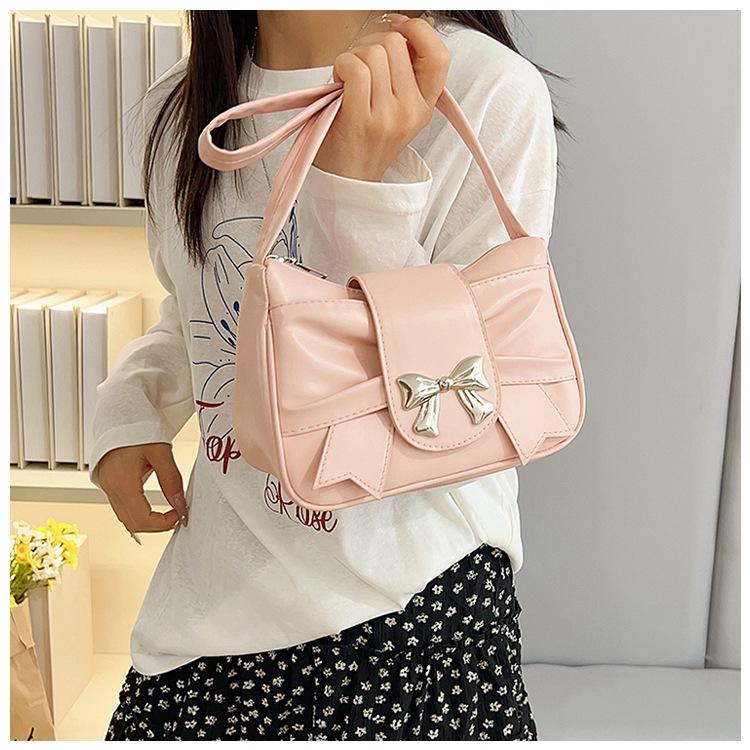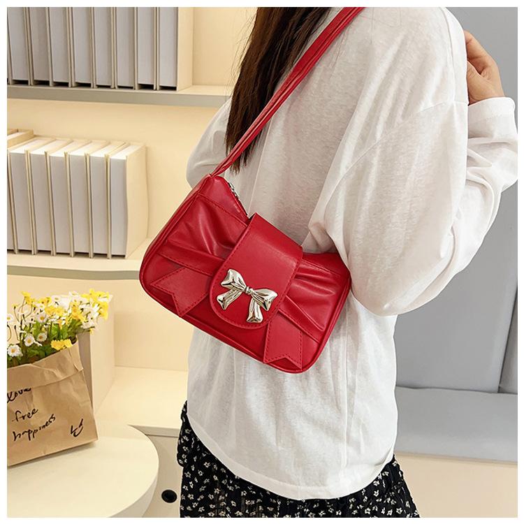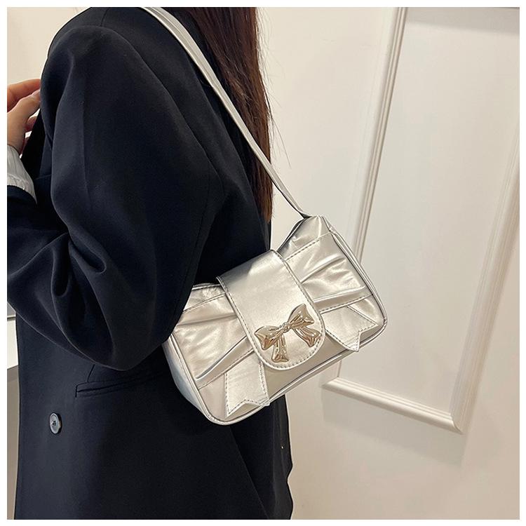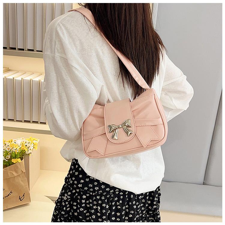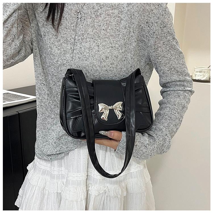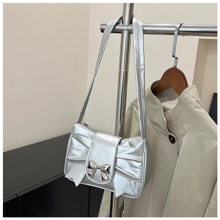 Bolso de Hombro Único Plisado Estilo Coreano con Lazo para Mujer 2025 Primavera y Verano Nuevo Versátil Bolso de Axila Ins para Mujer