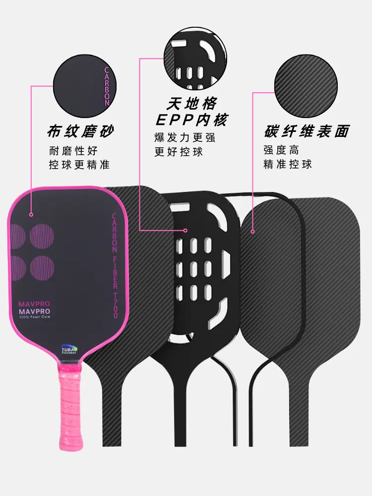 Nuevo set de pala de pickleball con núcleo de espuma EPP, pala de pickleball prensada en caliente específica para competición de fibra de carbono esmerilada