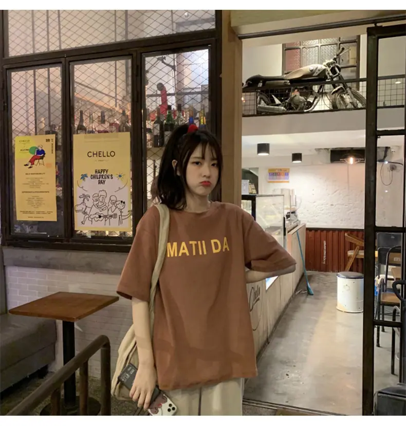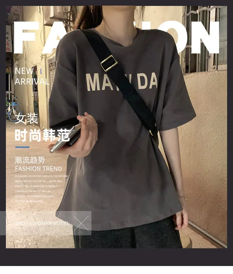 Verano Corea del Sur mujer nueva letra manga corta camiseta mujer holgada estudiante camiseta base top suministro de ropa al por mayor