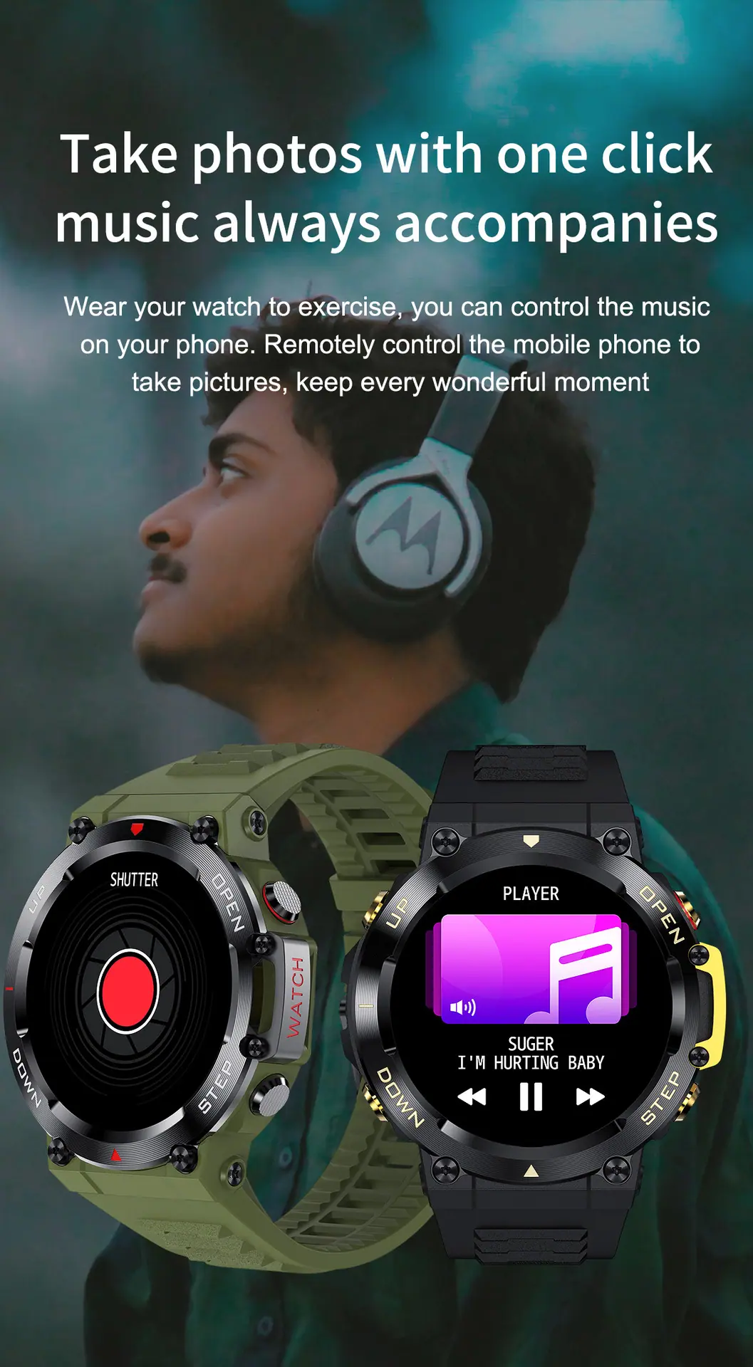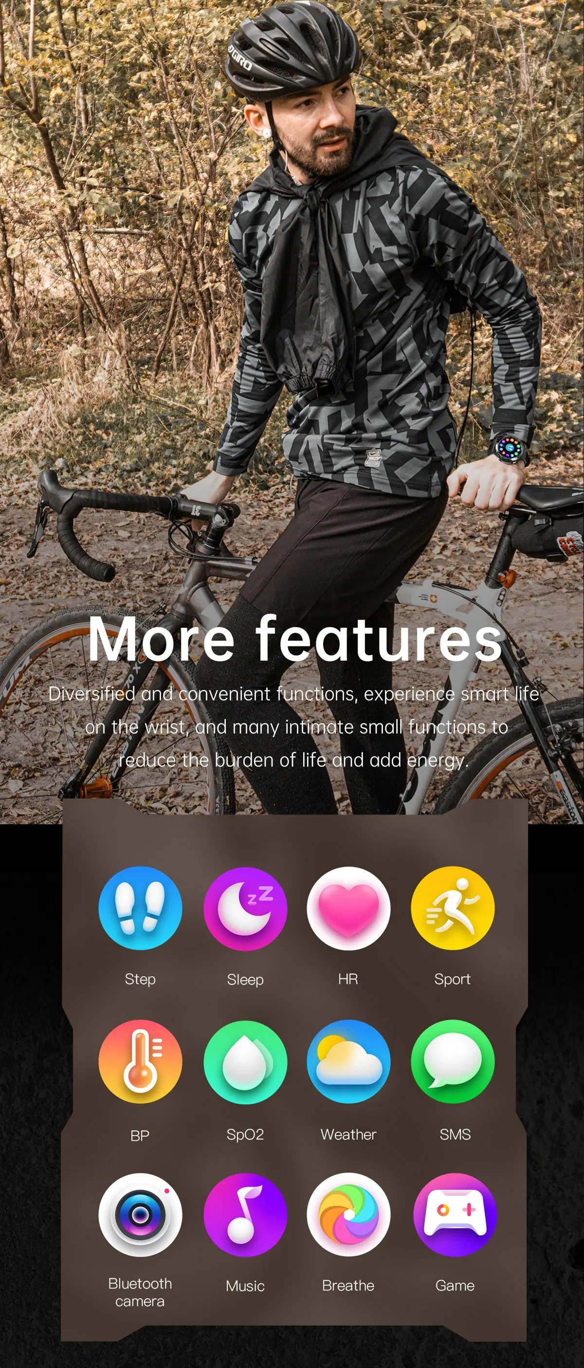 Bluetooth call, Smart reminder, Remote control selfie, Sleep monitoring