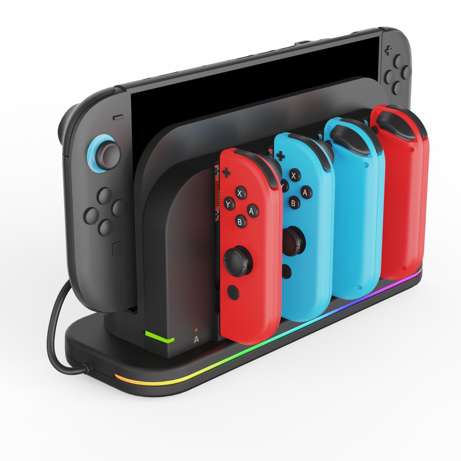 2. Equipado con 8 ranuras de carga, admite la carga de 1 a 4 controles Joy-Con de primera generación de N-S o 2 controles Joy-Con de N-S simultáneamente;
