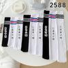 Black mid-length, White with black mid-calf, red and blue striped mid-calf, Black calf, White background black...