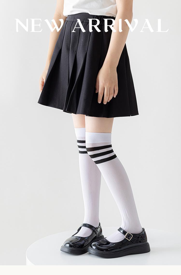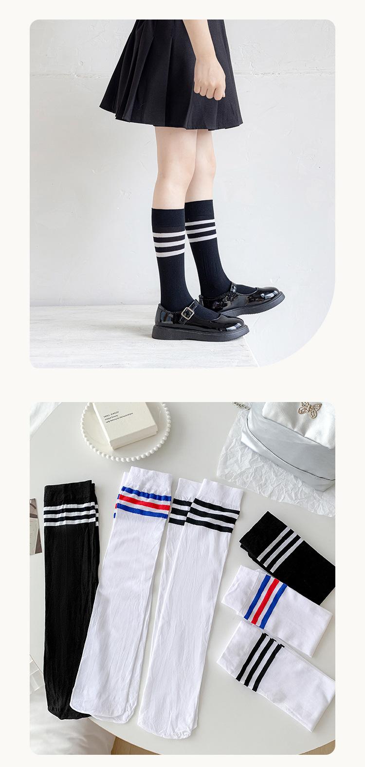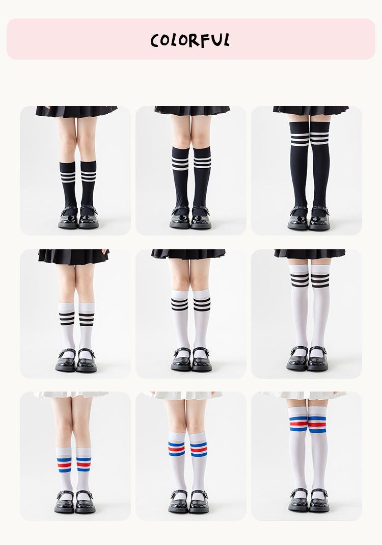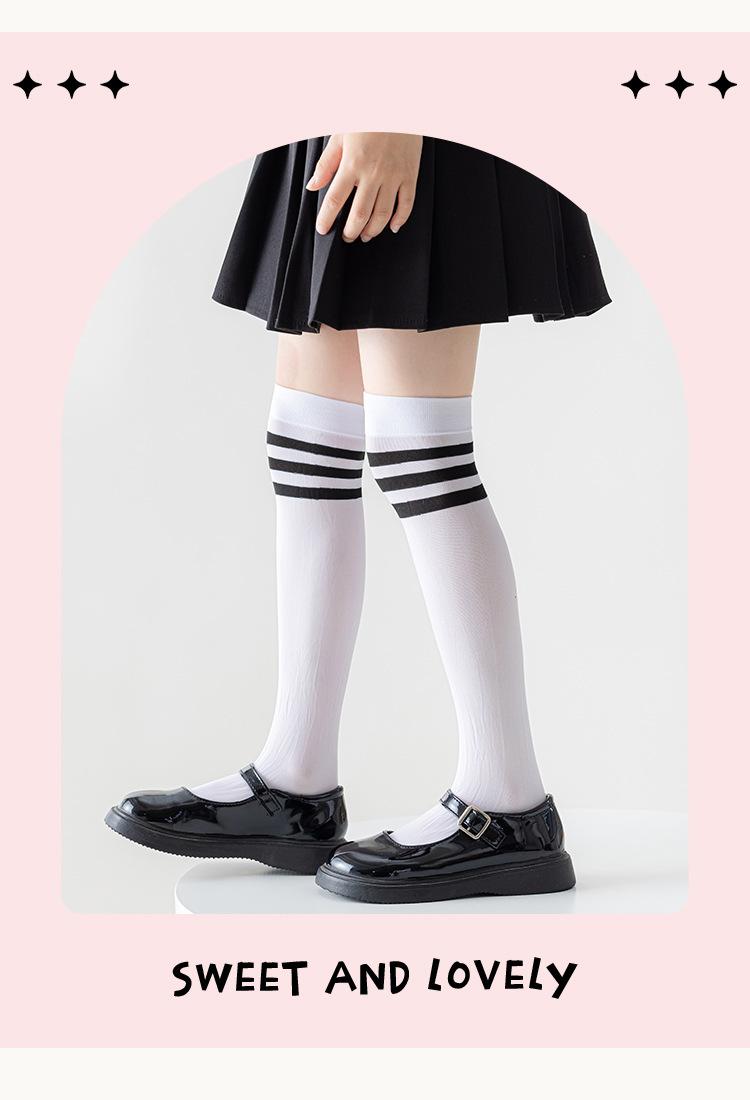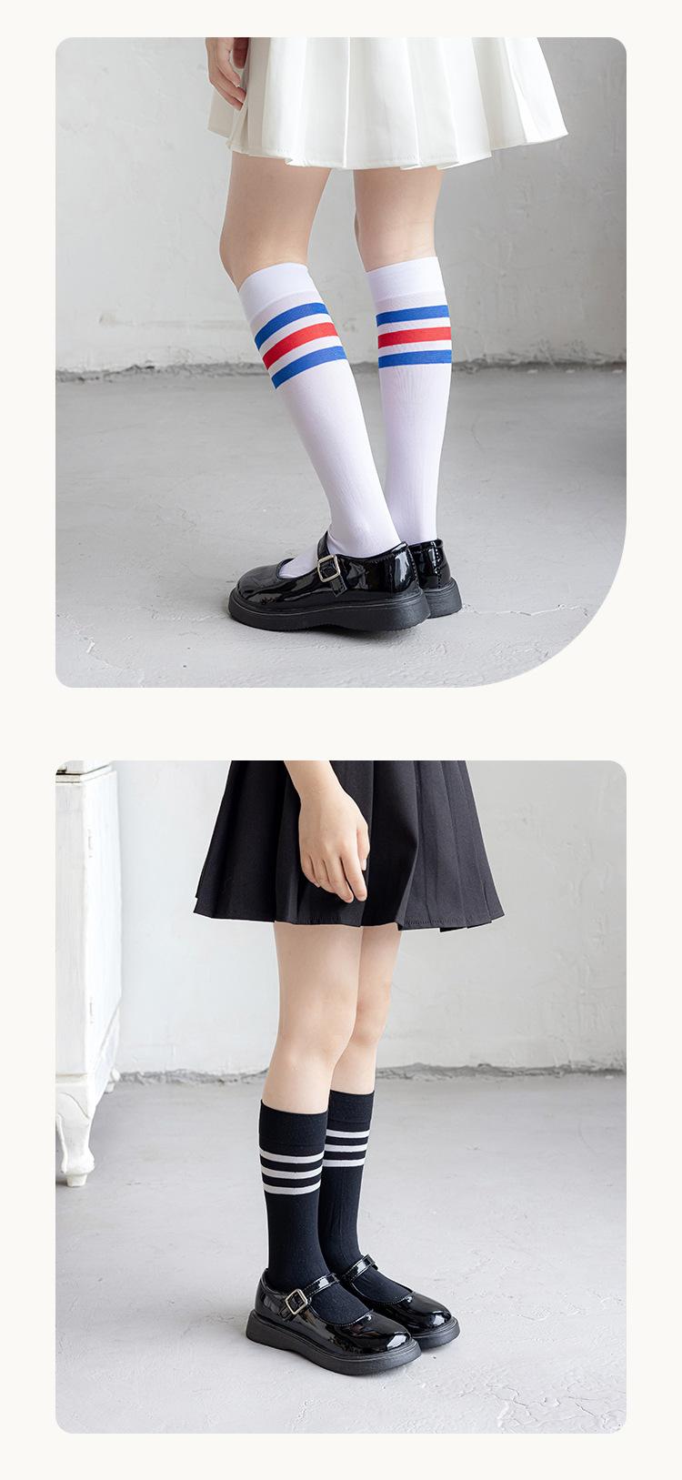 Calcetines hasta la rodilla para niños Primavera Verano Terciopelo Niños Niñas Estudiante Media rodilla Sobre la rodilla Tres rayas Calcetines hasta la rodilla