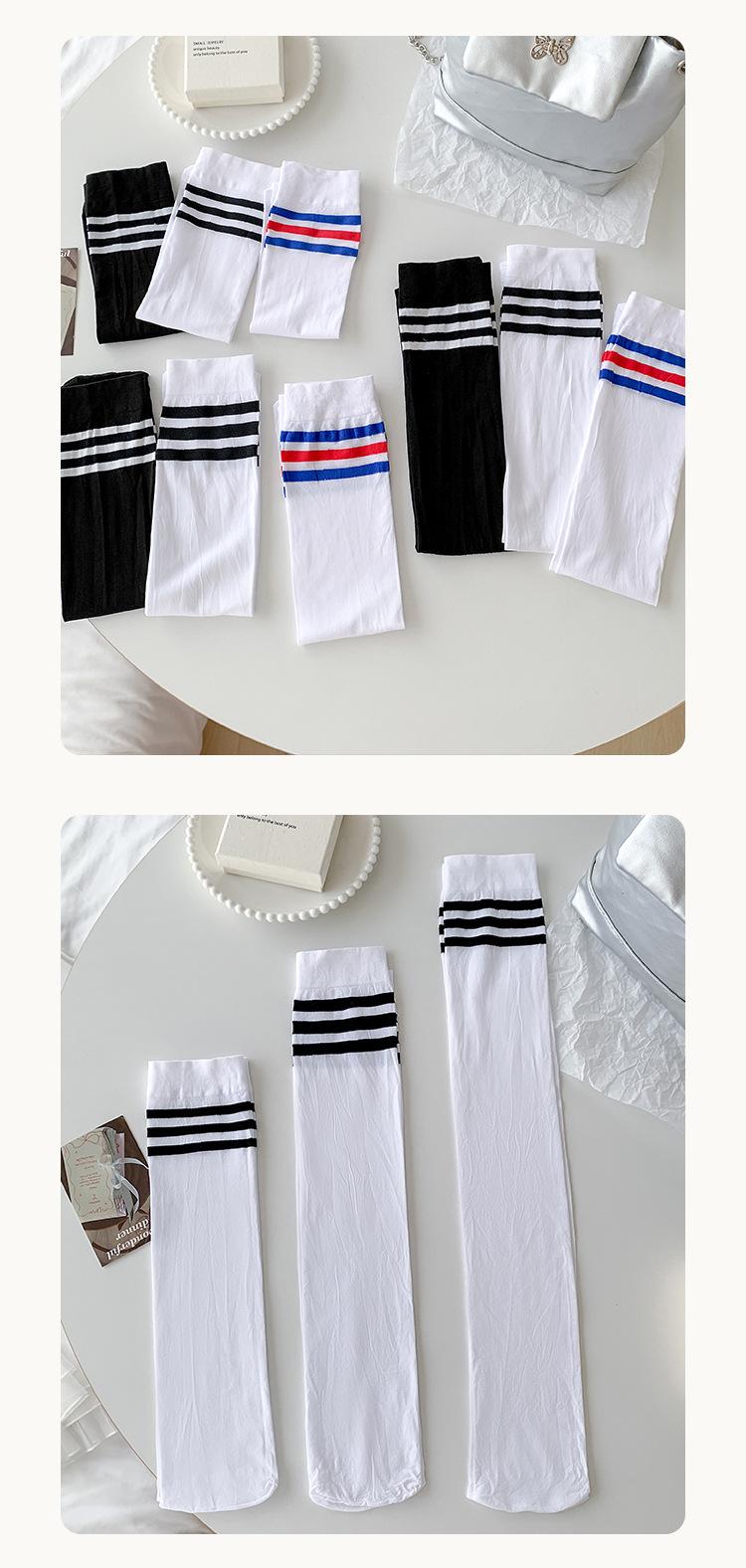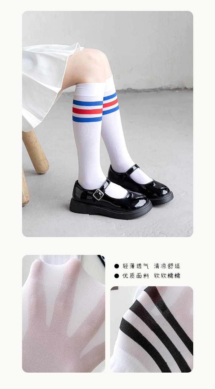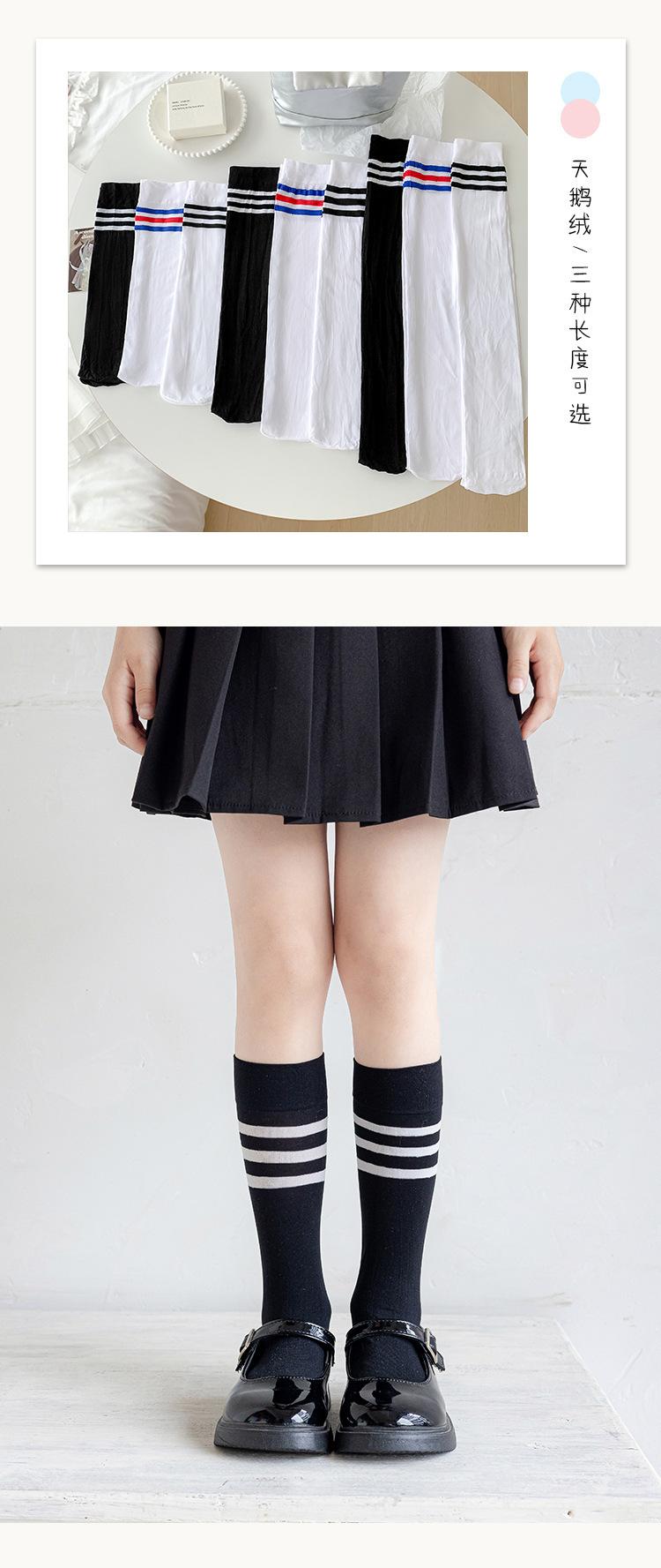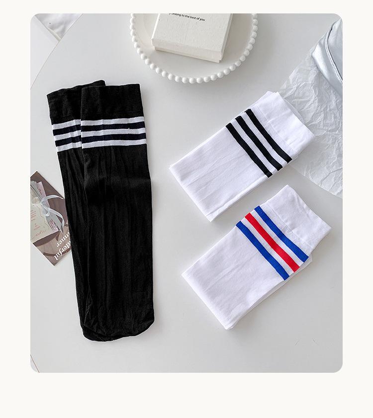 Calcetines hasta la rodilla para niños Primavera Verano Terciopelo Niños Niñas Estudiante Media rodilla Sobre la rodilla Tres rayas Calcetines hasta la rodilla
