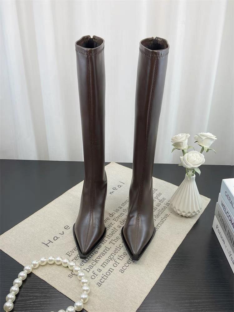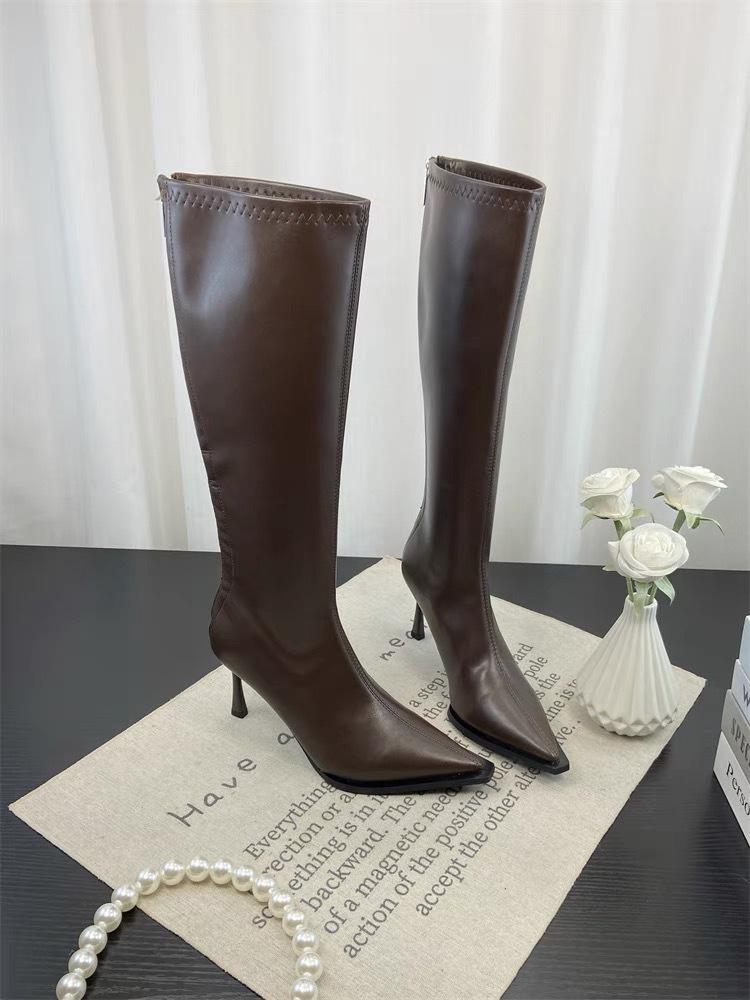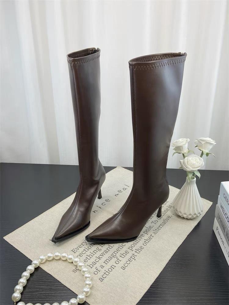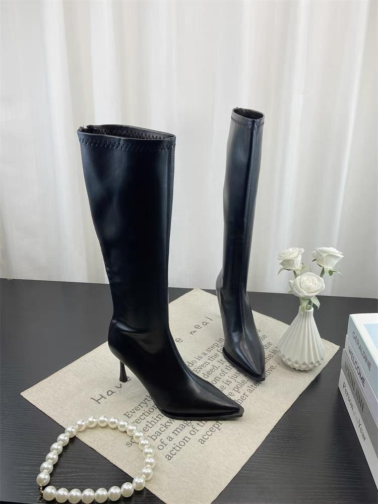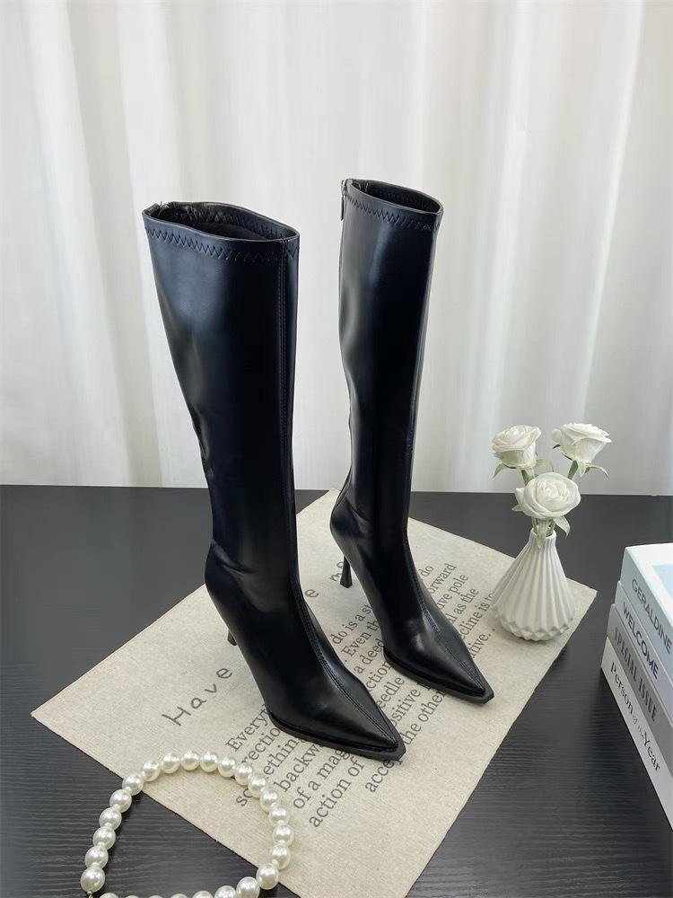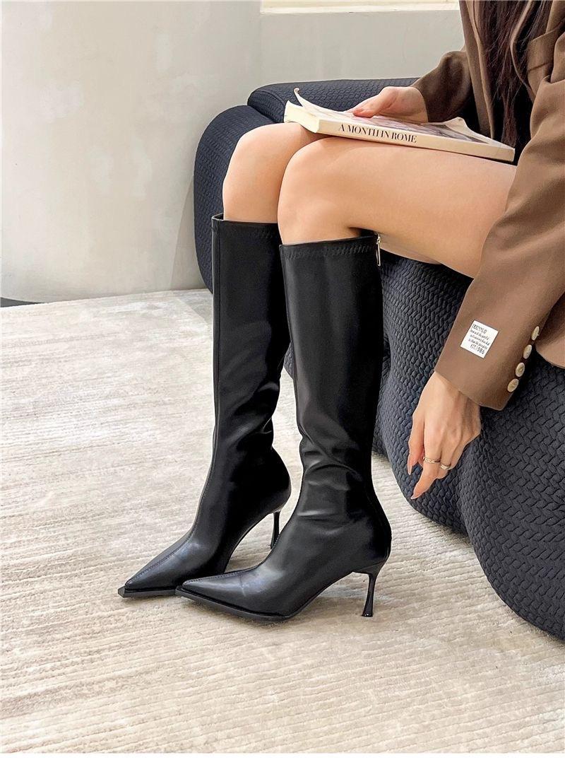 2024 nuevo estilo viento punta puntiaguda adelgazante botas por encima de la rodilla mujer otoño tacón de aguja tubo alto botas largas cremallera trasera tacón alto botas ajustadas