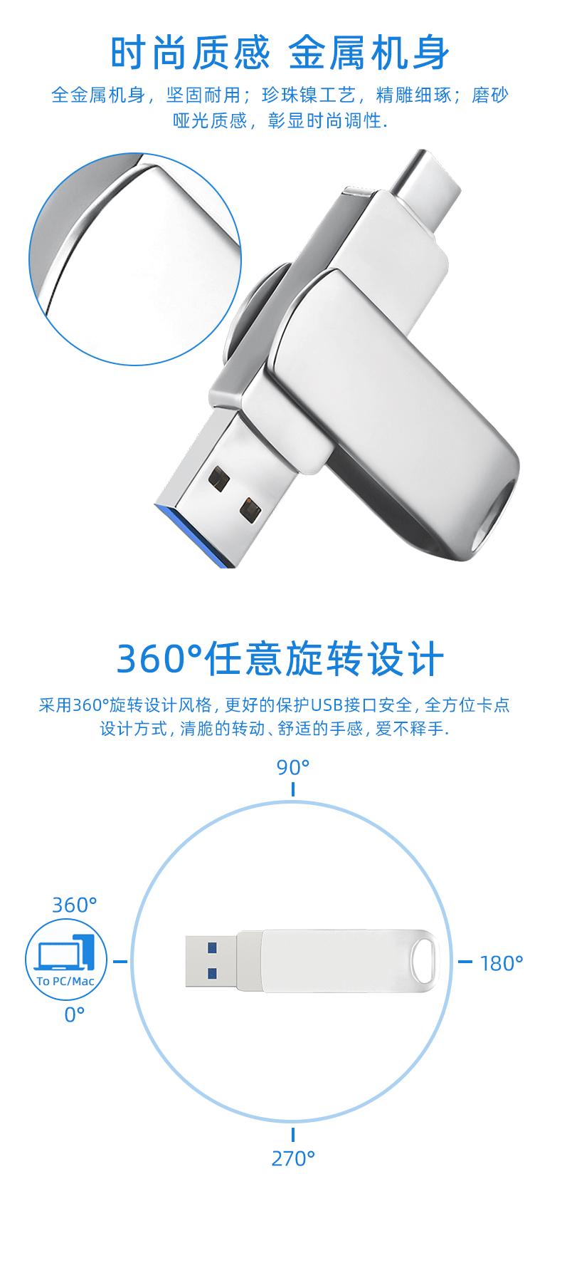 Brand new, Metal rotating mobile phone usb flash drive usb2.1+type-c, Metal rotating mobile phone usb flash drive usb3.1+type-c