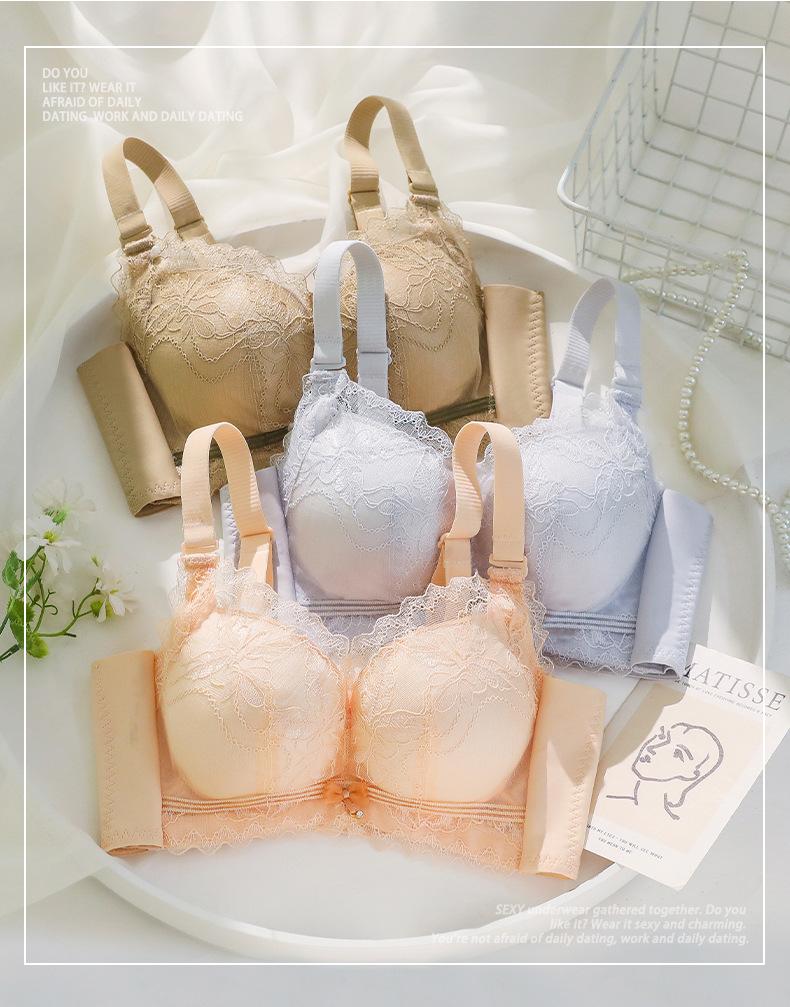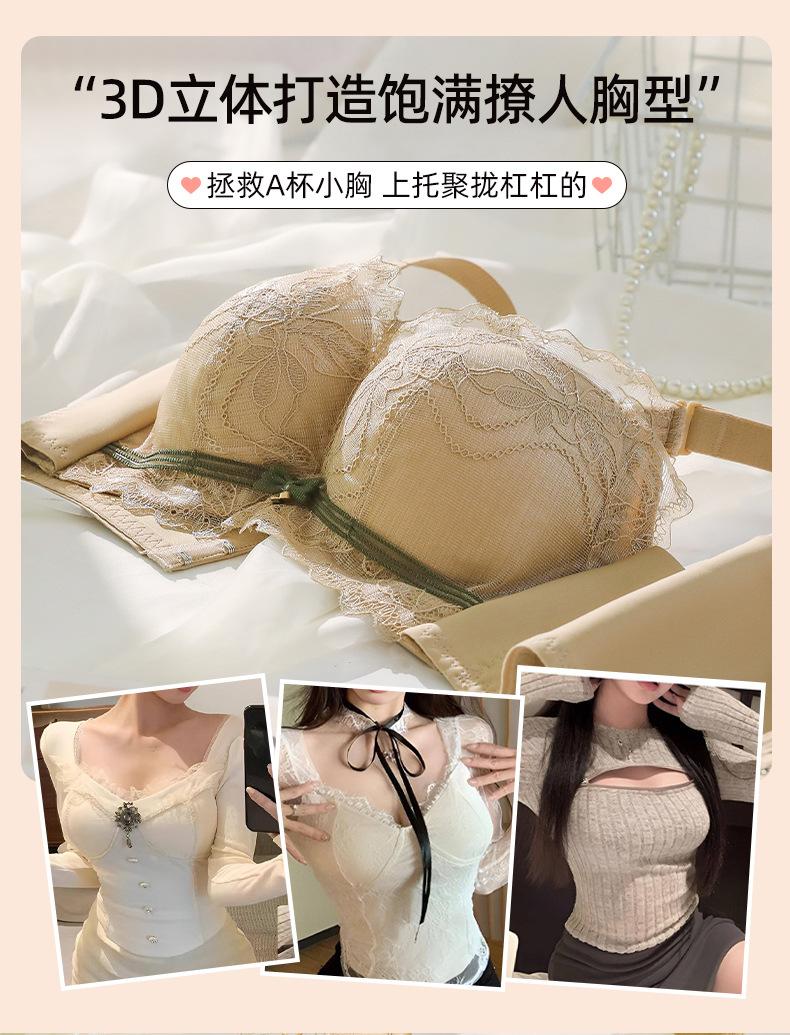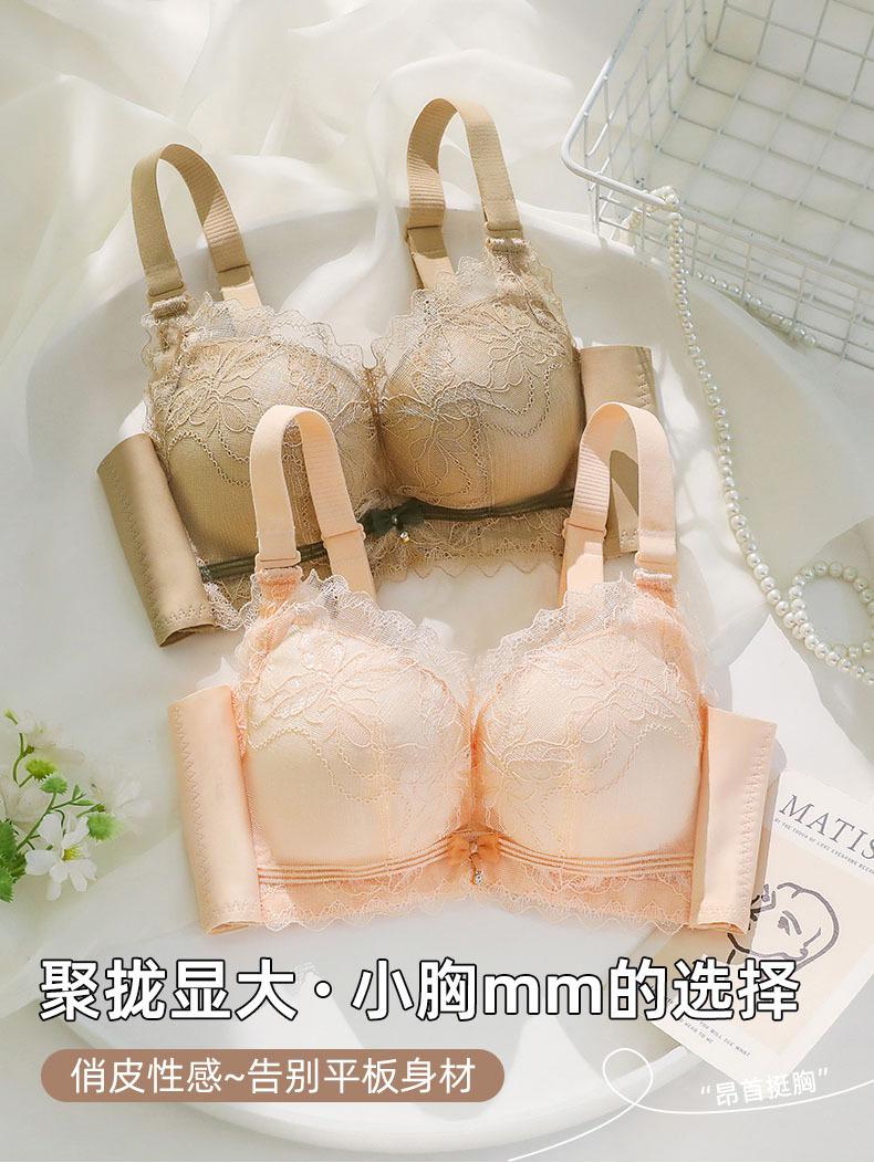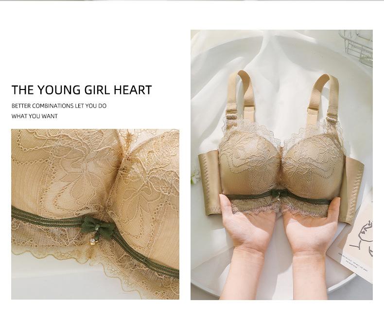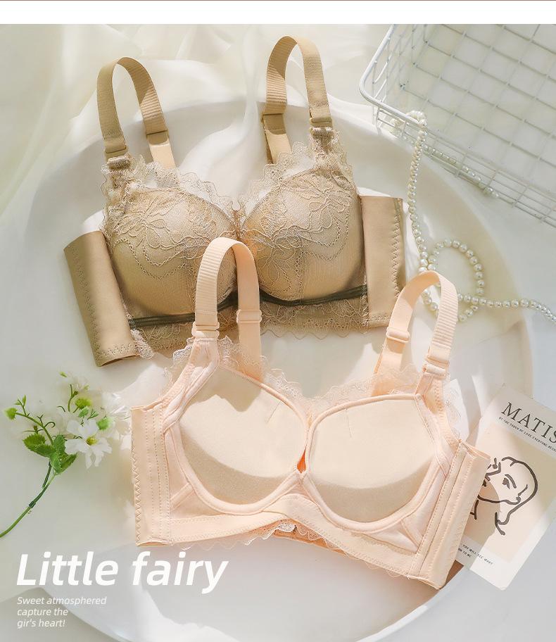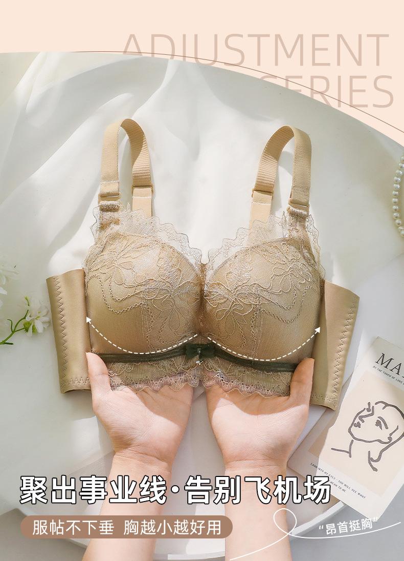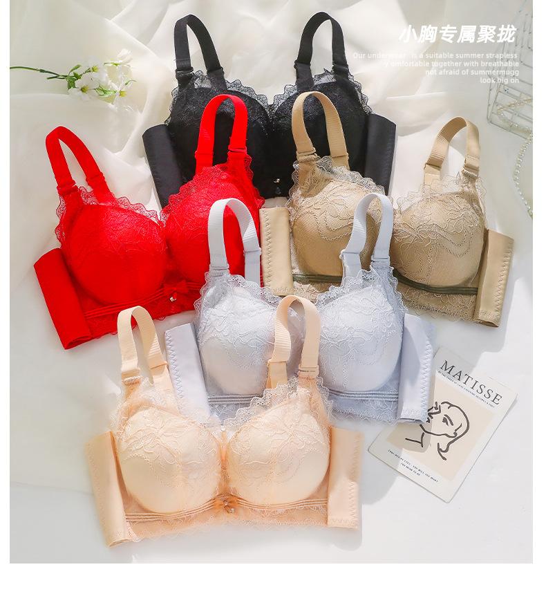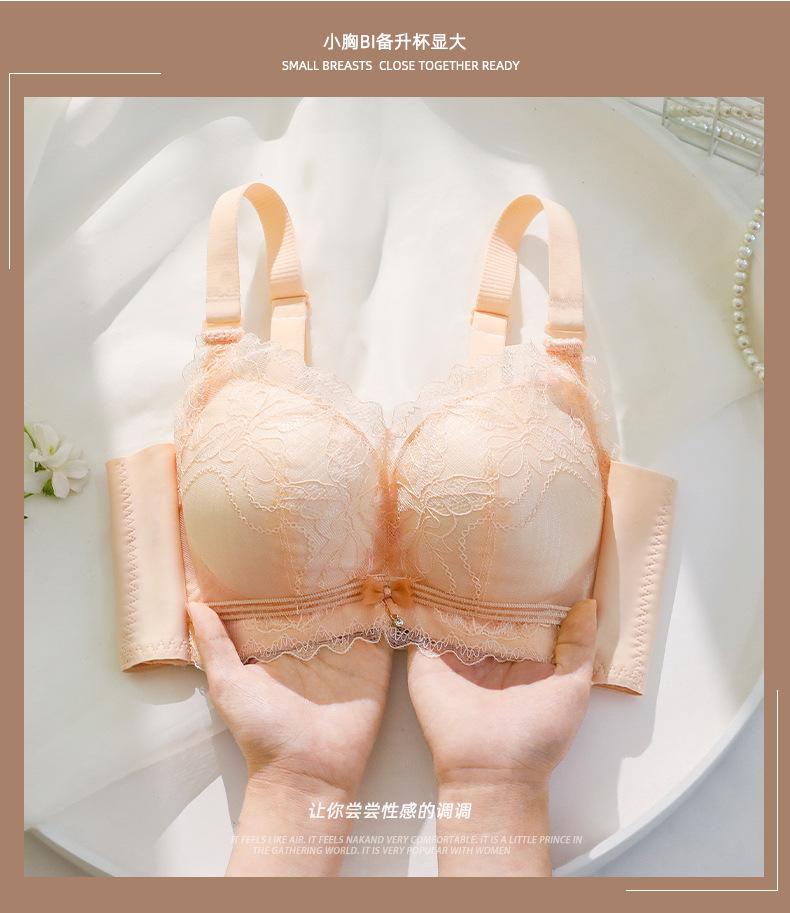 Ropa interior de mujer con realce para pecho pequeño, encaje grande, sin aros de acero, anti-flacidez, gruesa, de marca, brasier ajustable