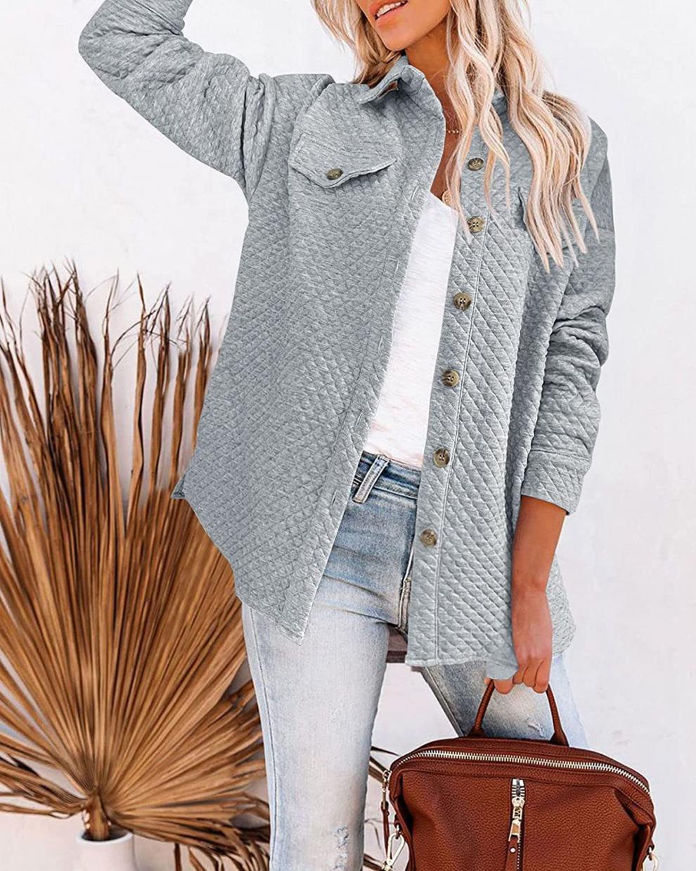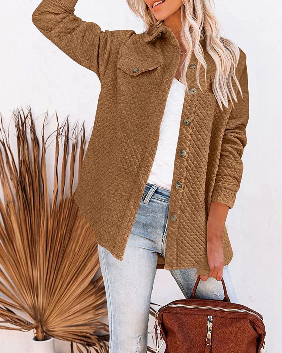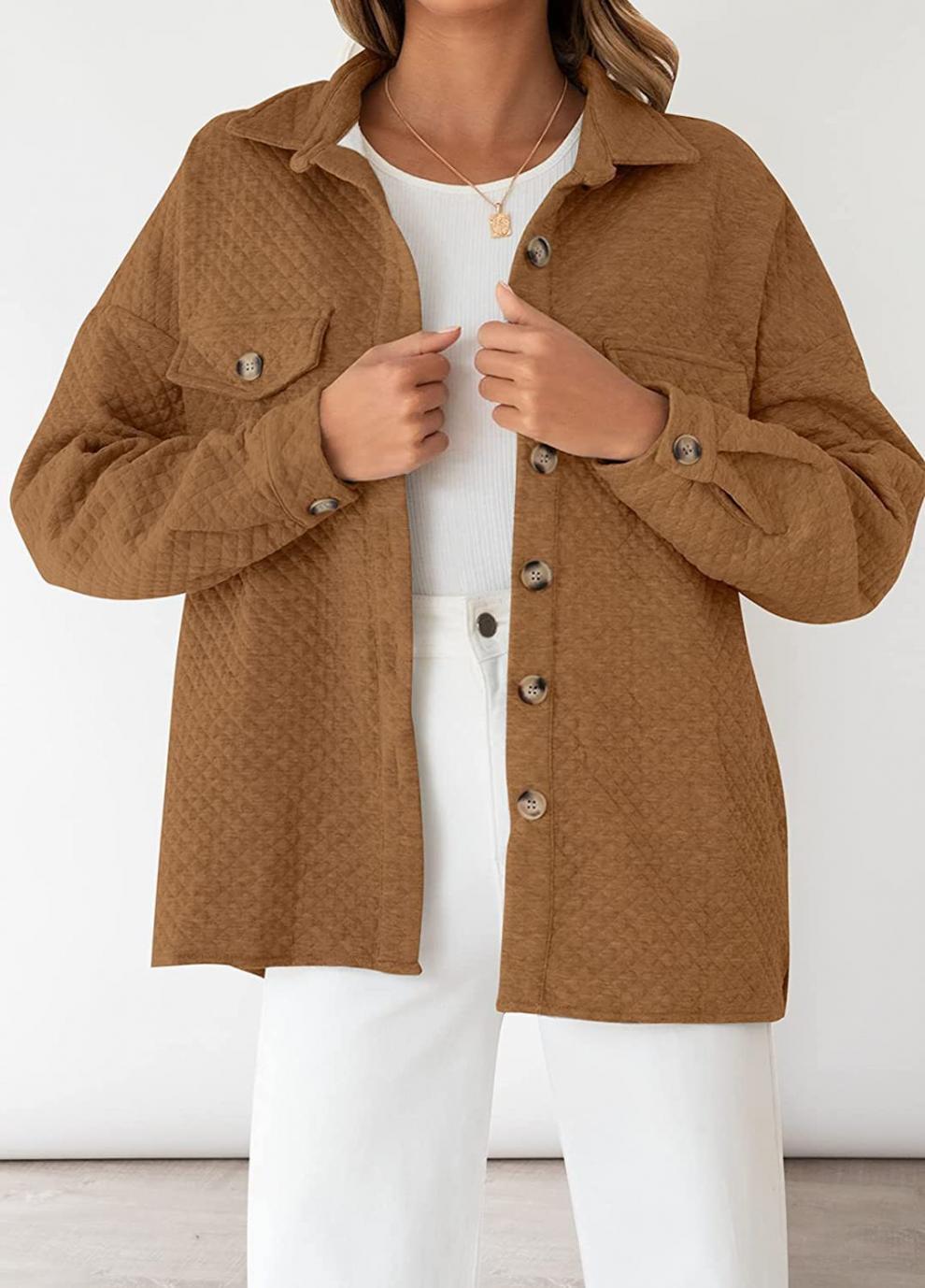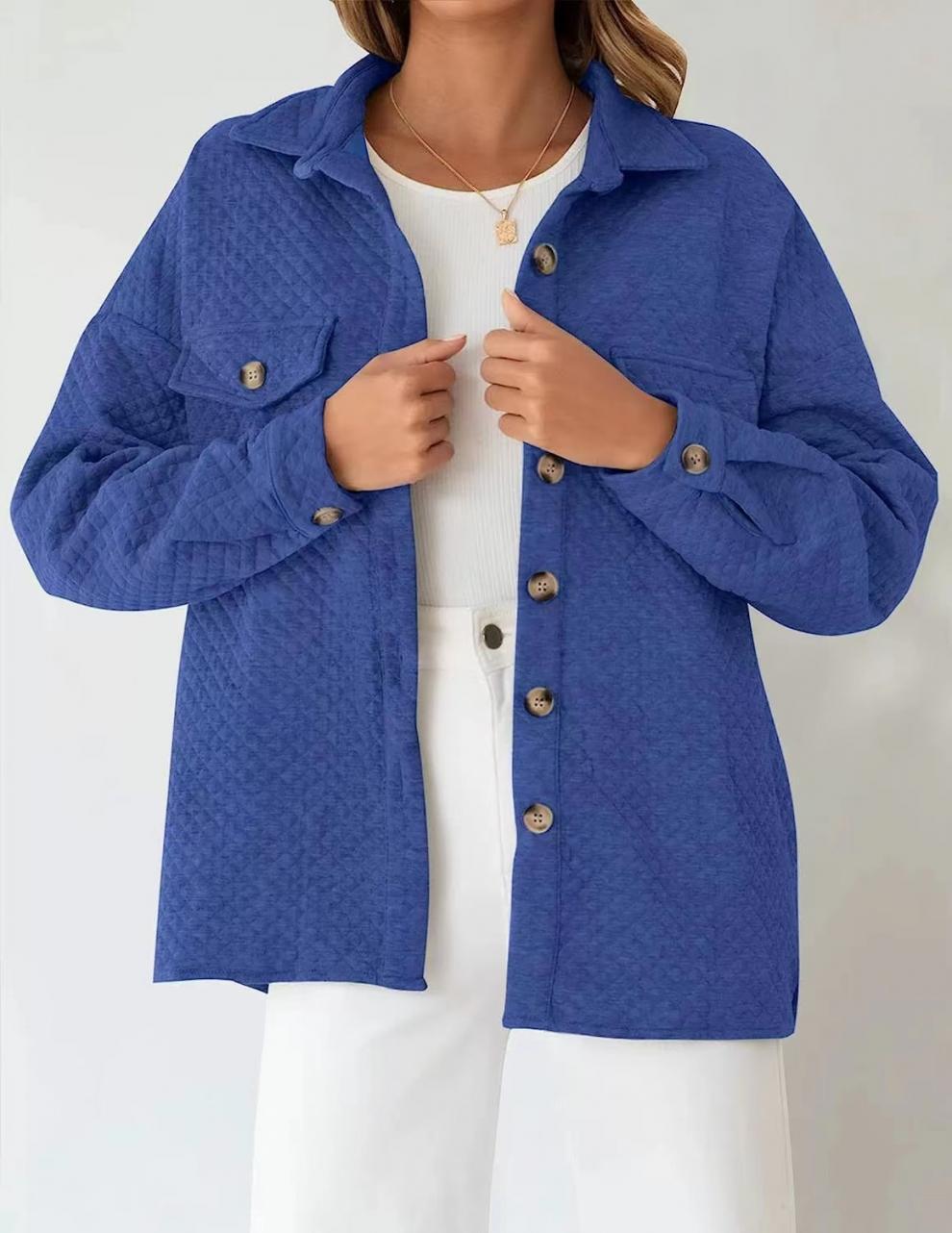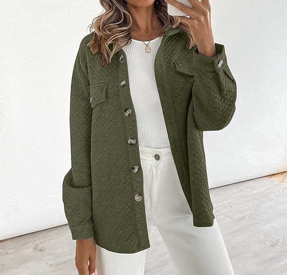 Otoño/Invierno 2025 Nuevo Estilo Europeo y Americano Estación Independiente de Amazon Chaqueta Casual Ligera con Bolsillo de Diamante de Color Sólido para Mujer