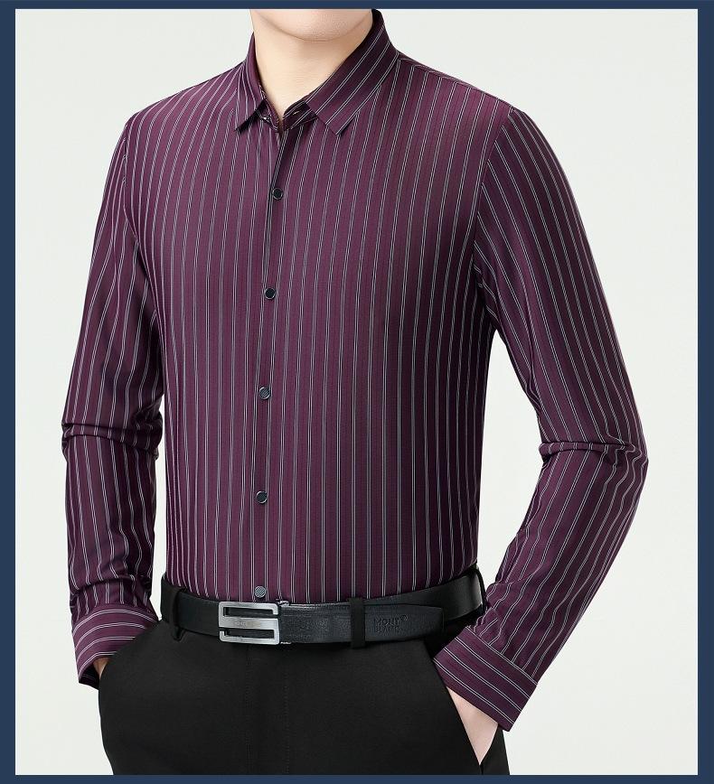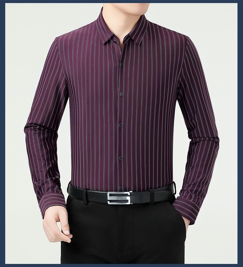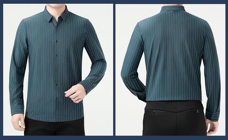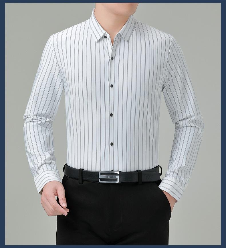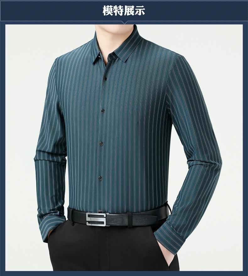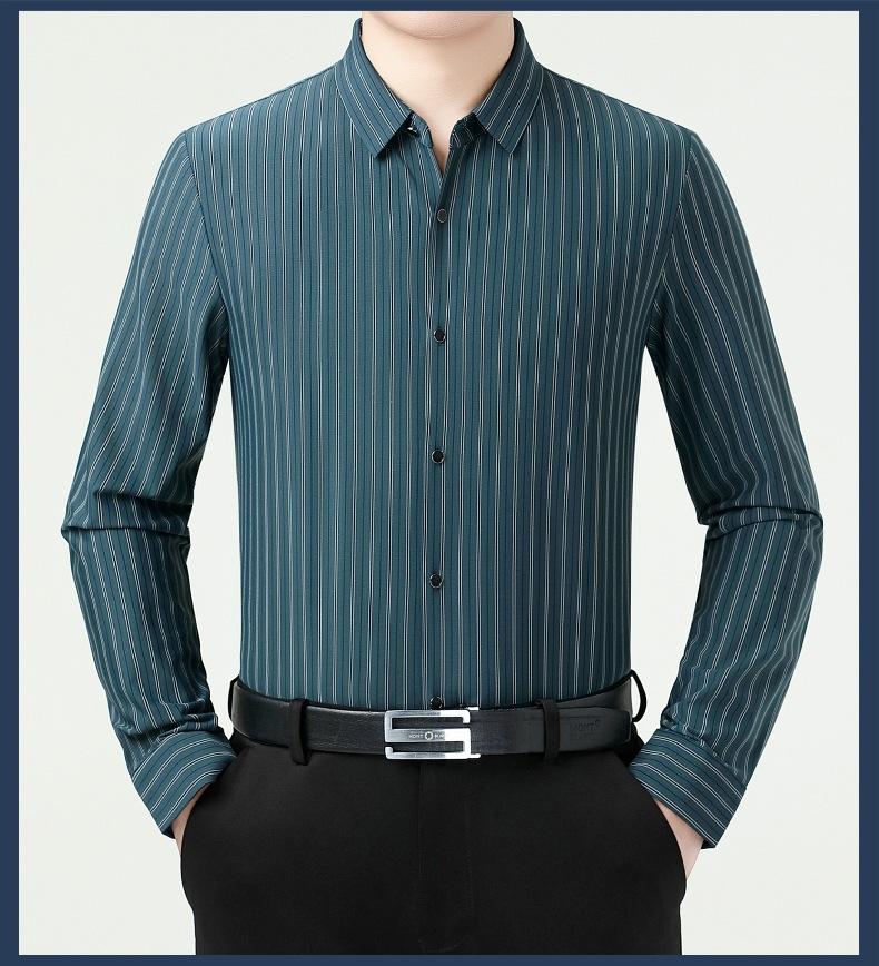 Marca Camisa de Manga Larga a Rayas de Seda de Morera para Hombre Ropa para Hombres de Mediana Edad y Jóvenes Camisa Profesional Business Casual Marea