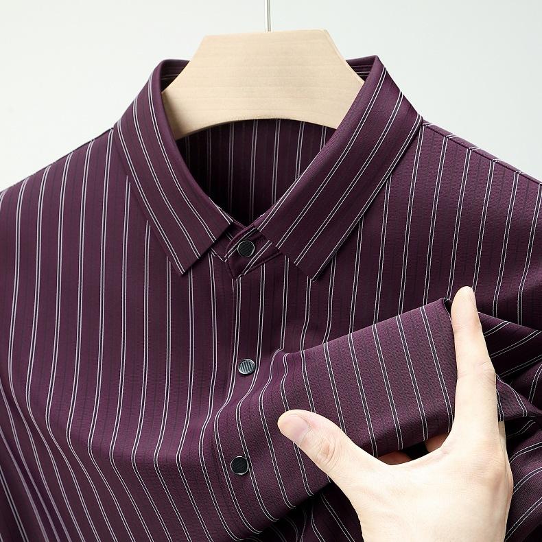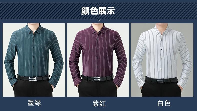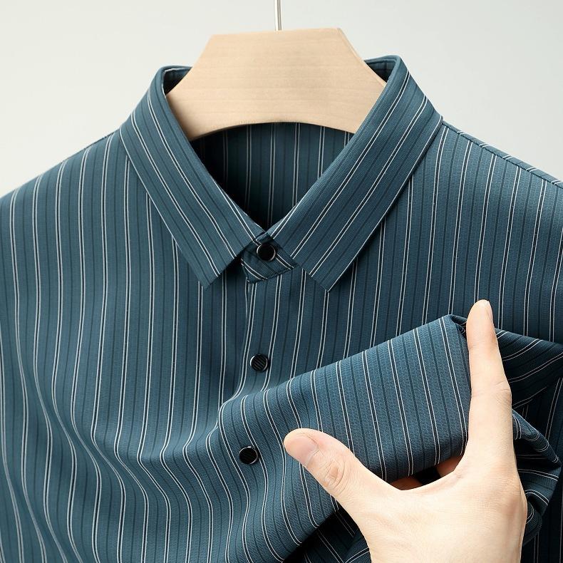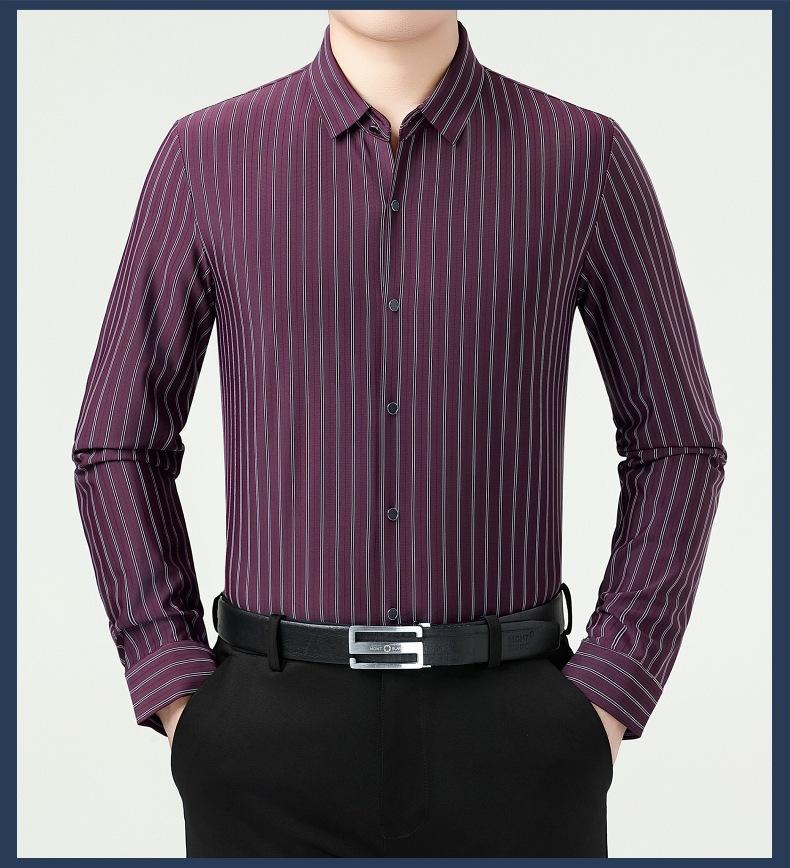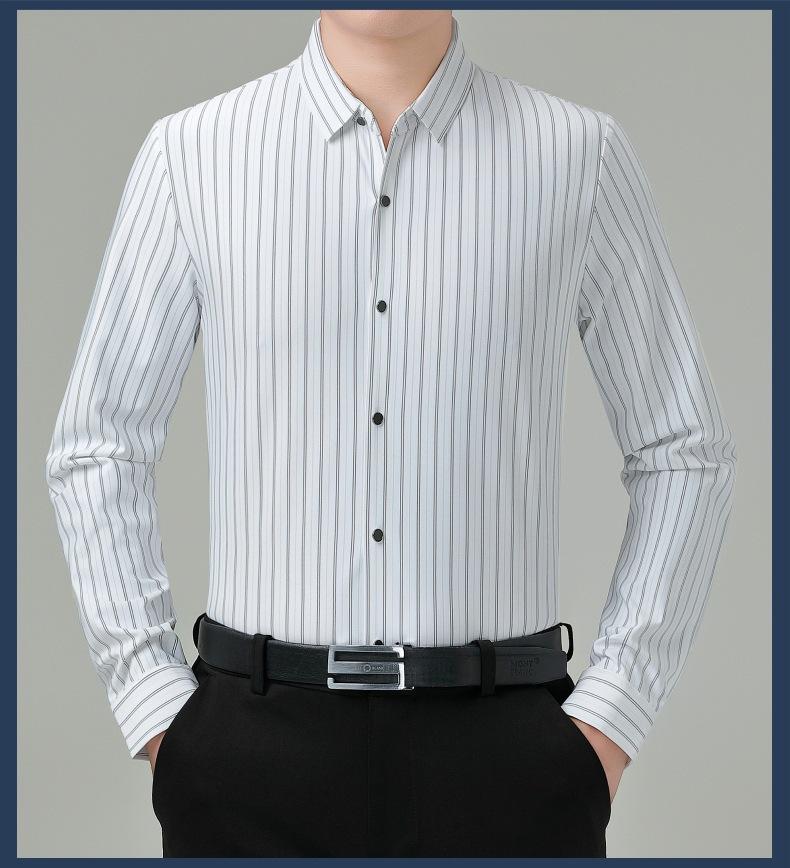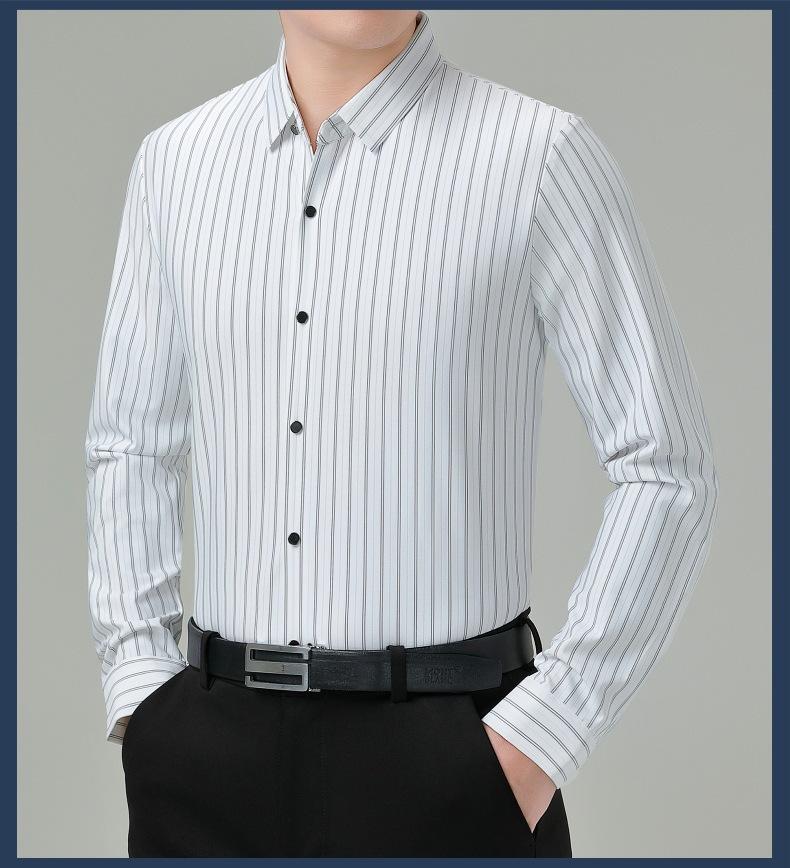 Marca Camisa de Manga Larga a Rayas de Seda de Morera para Hombre Ropa para Hombres de Mediana Edad y Jóvenes Camisa Profesional Business Casual Marea