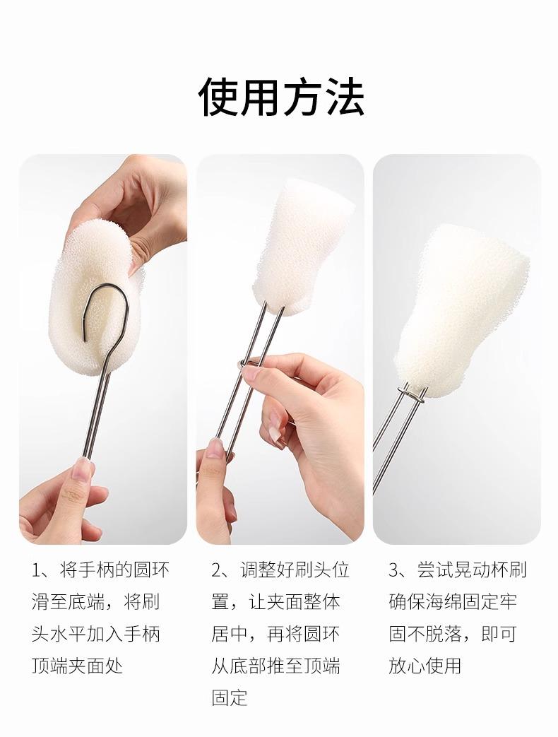 Long-handled stainless steel cup brush (opp bag packaging)