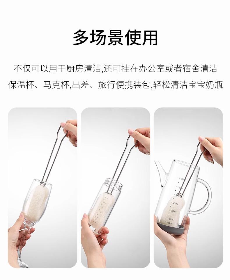 Cepillo para Botellas, Cepillo para Vasos de Acero Inoxidable, Cepillo de Esponja, Cepillo para Tazas de Agua con Mango Largo, Cepillo Multifuncional para Lavar Tazas