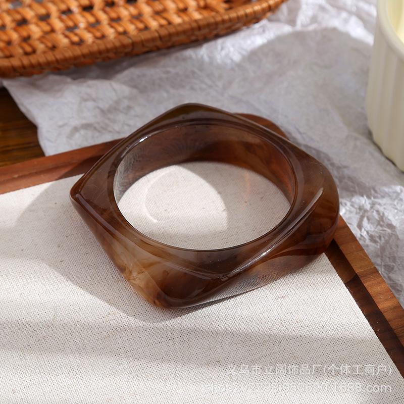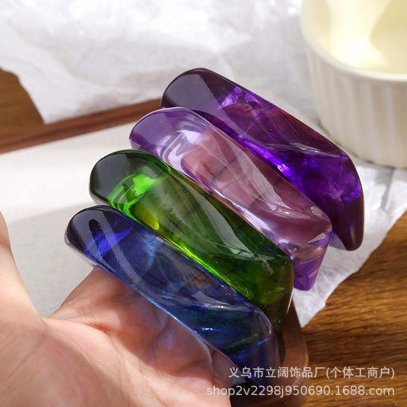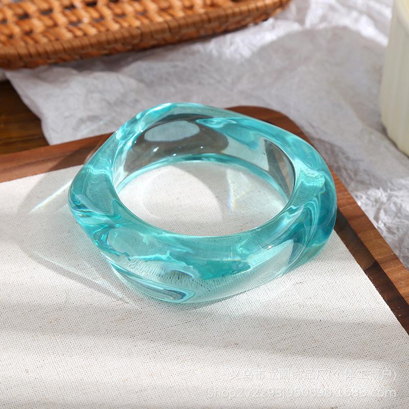 Pulsera Ancha Irregular de Moda con Efecto Marmoleado, Brazalete Irregular Translúcido, Joyería de Personalidad Nicho