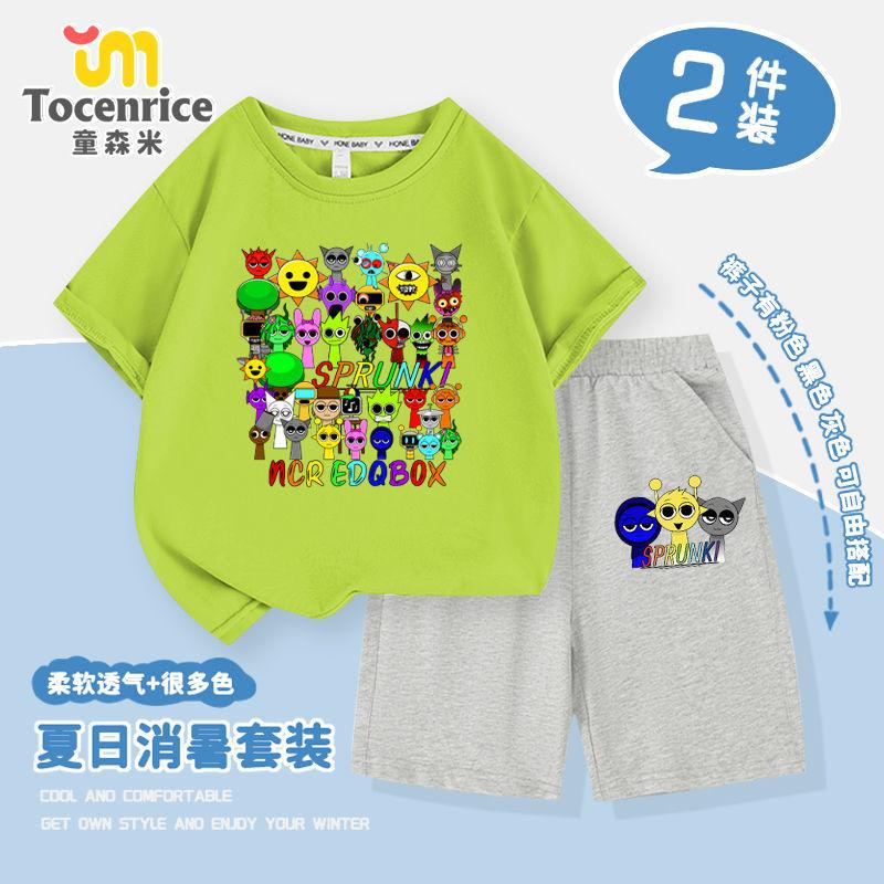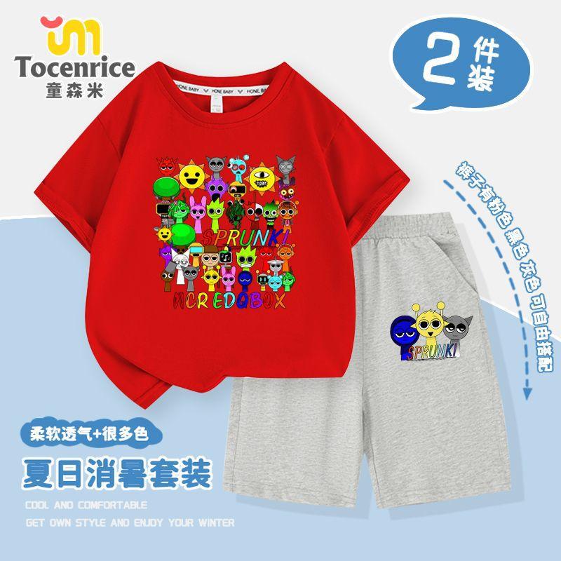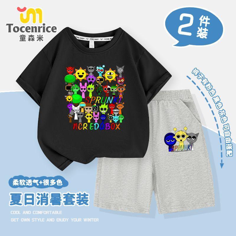 Sprunki Caja de Música Ropa Traje de Manga Corta para Niños Pijama de Algodón Puro para Niños Ropa de Verano para Niños Delgada 8