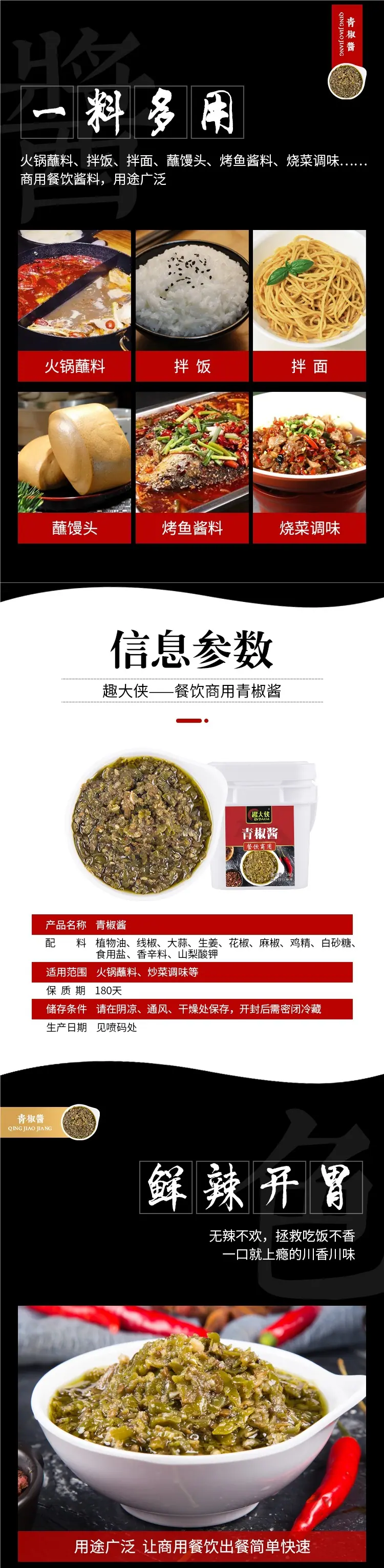 Salsa de Pimiento Verde Salsa Comercial de Chile Salsa de Pimiento Morrón Salsa de Pimiento Asado para Fideos de Arroz Sándwich Sichuan Picante Cubeta Restaurante Fun Xiaxia