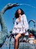 Primavera 2025 Nuevo Ropa de Mujer Transfronteriza Europea y Americana al por Mayor Moda Urbana Crochet Estampado Encaje Vestido con Cordones Bb6314