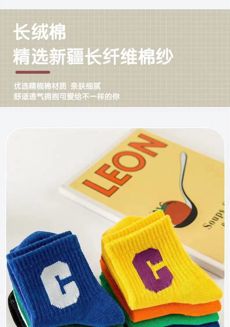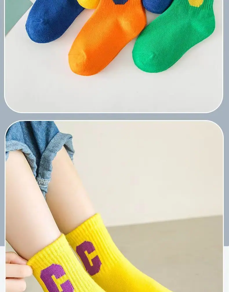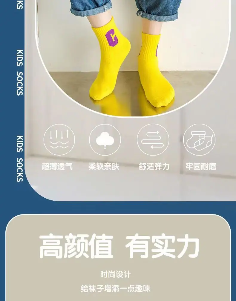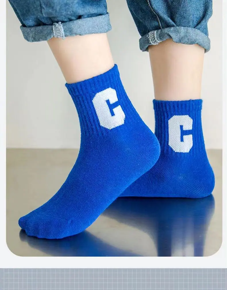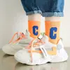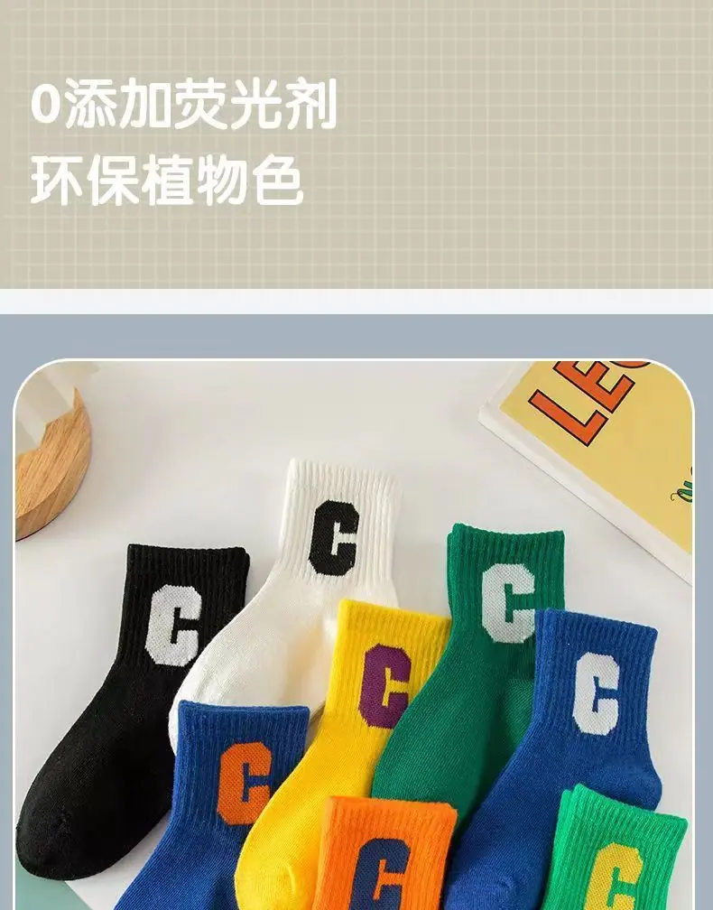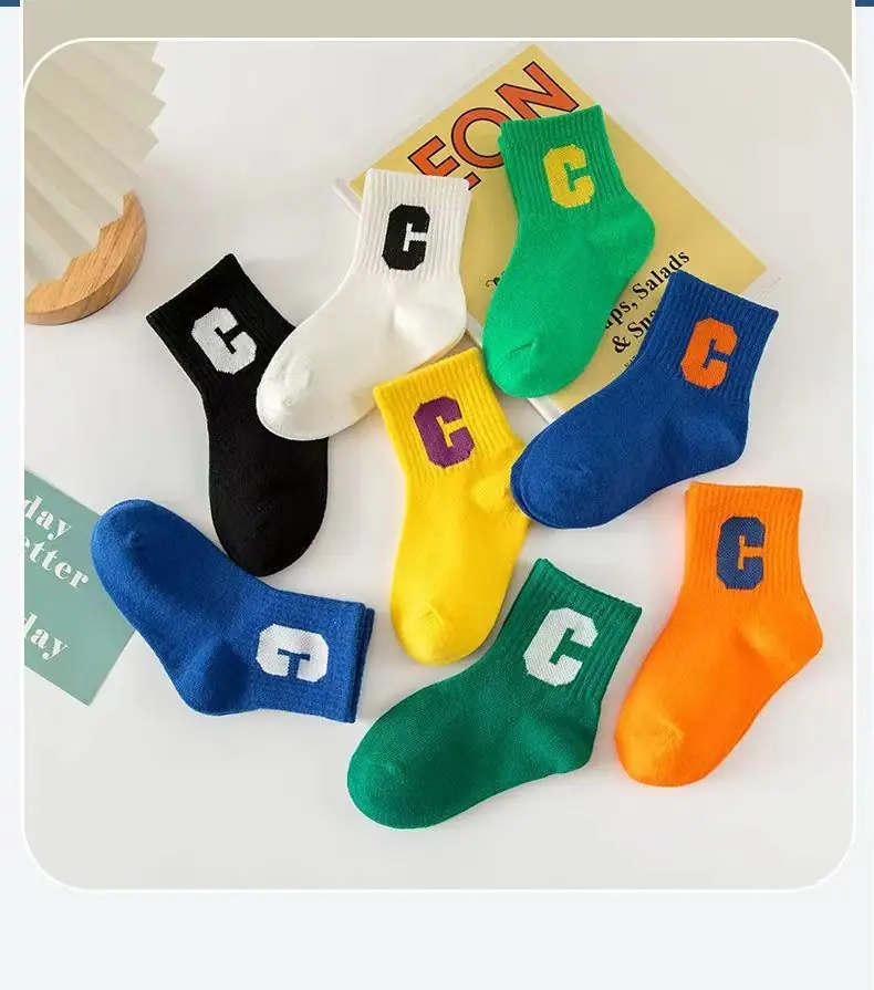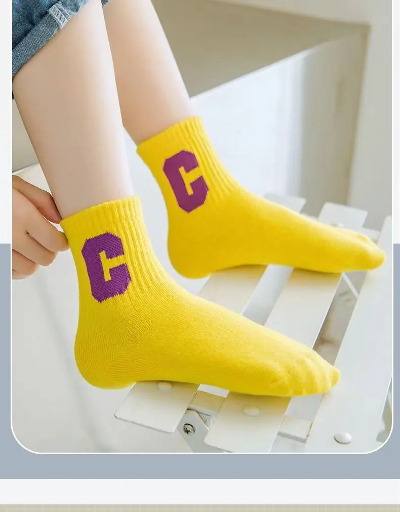 Calcetines para Niños, Algodón Clase A Letra C, Calcetines para Niños Grandes, Calcetines Deportivos Transpirables para Estudiantes, Calcetines Absorbentes de Sudor a Media Pantorrilla para Niños y Niñas