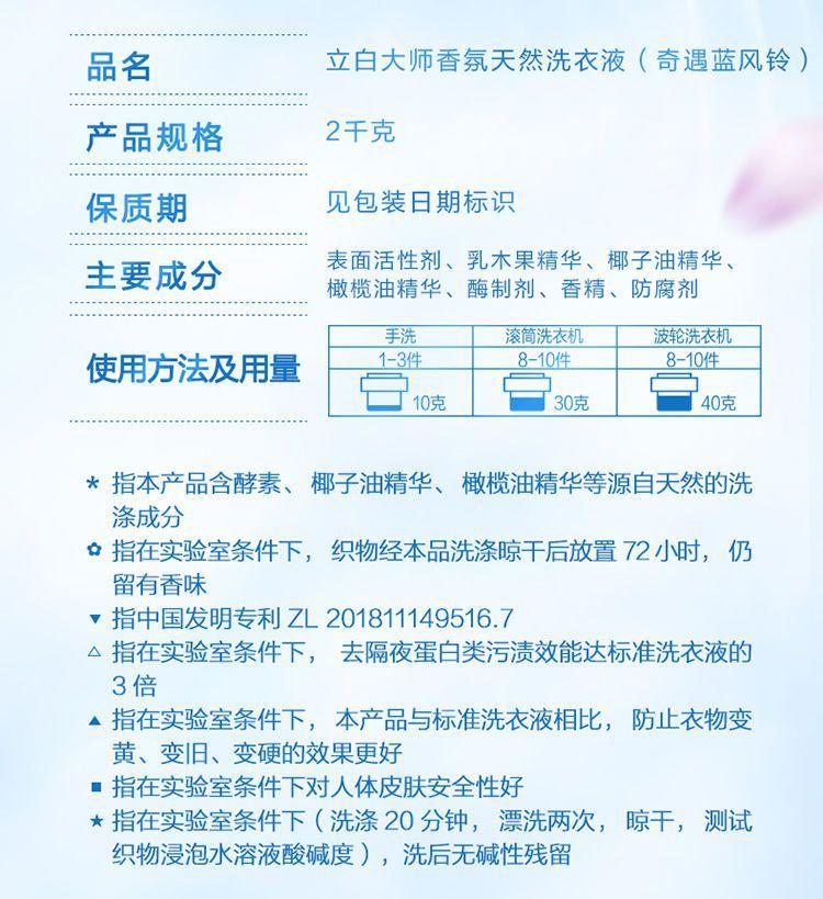 Libai Master Fragrance Detergente para Ropa Campanilla Azul a Granel Fragancia Duradera Ropa Limpia Antiamarillamiento Paquete de Valor para el Hogar