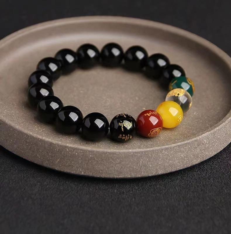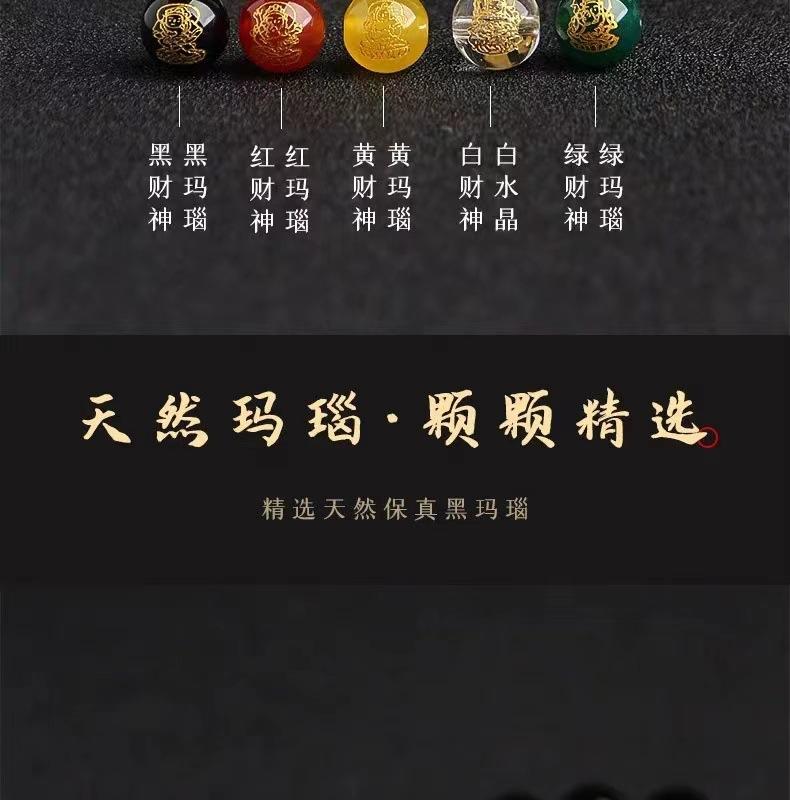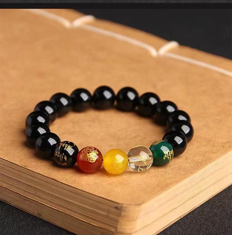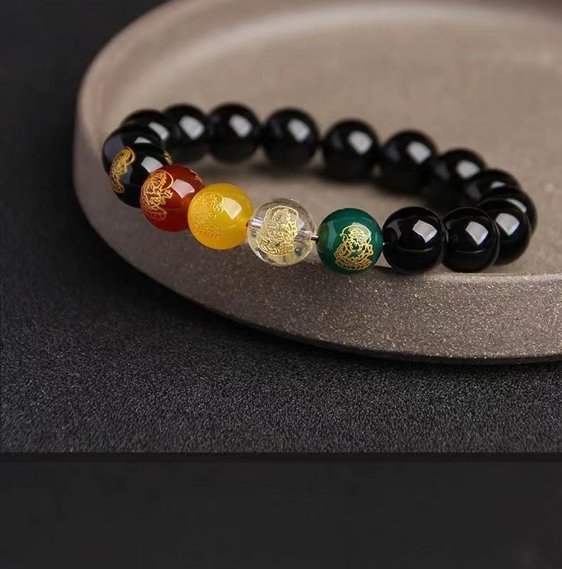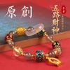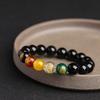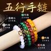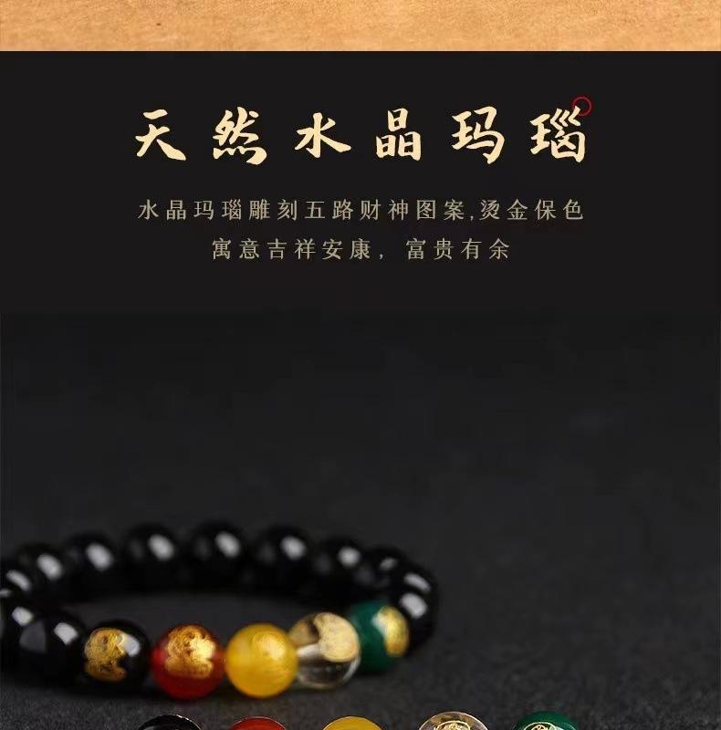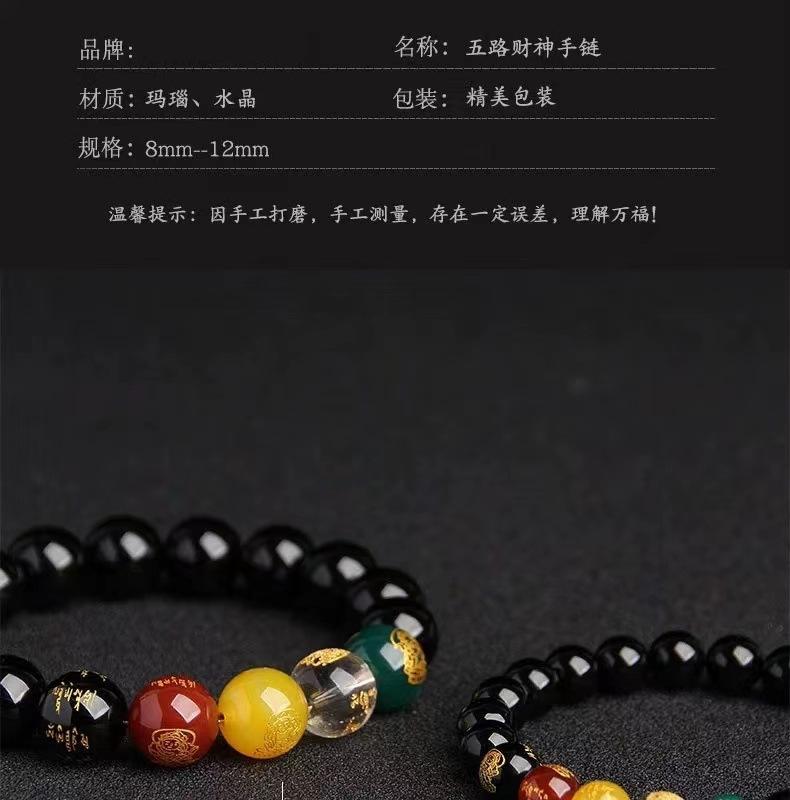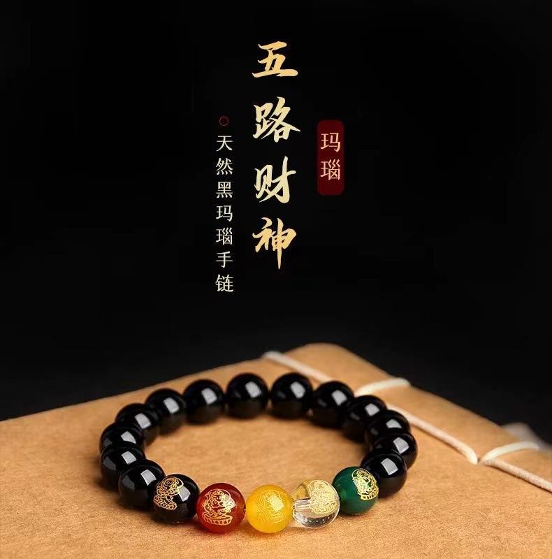 Pulsera de Ágata Dios de la Riqueza de Cinco Vías Pulsera de Ágata Negra Madera Dorada Agua Fuego Tierra Cuentas de Transferencia Adornos de Mano para Hombres y Mujeres