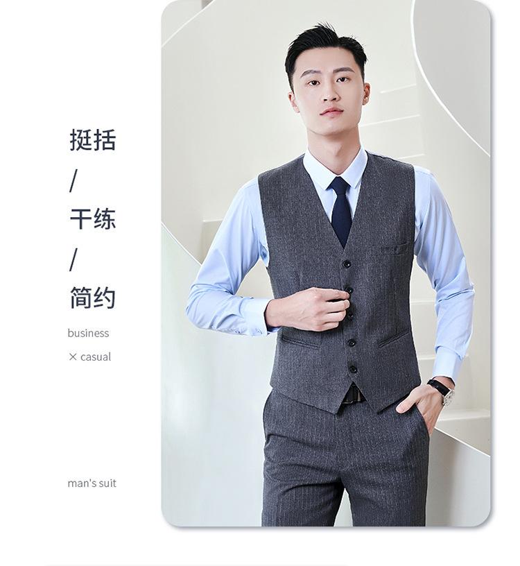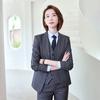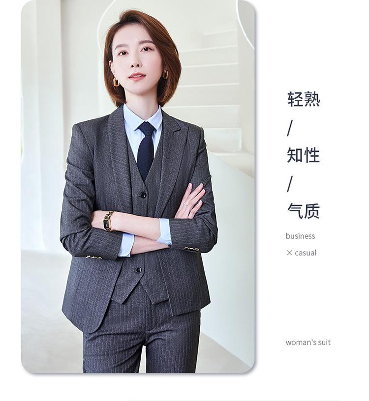 Women's gray striped suit + vest + pants + shirt