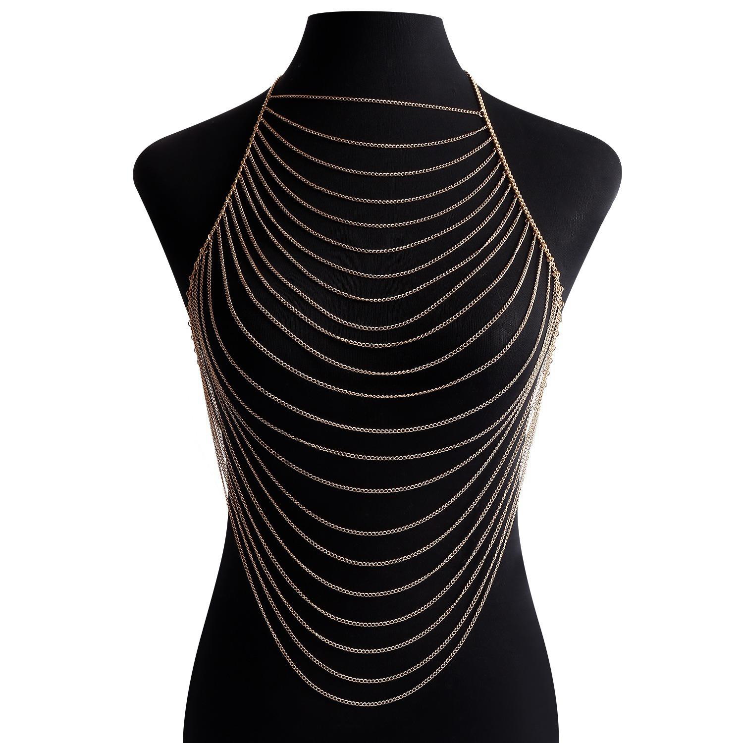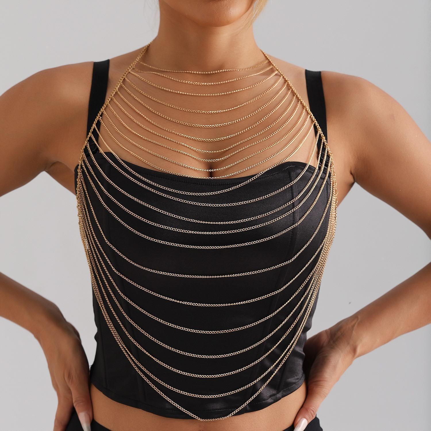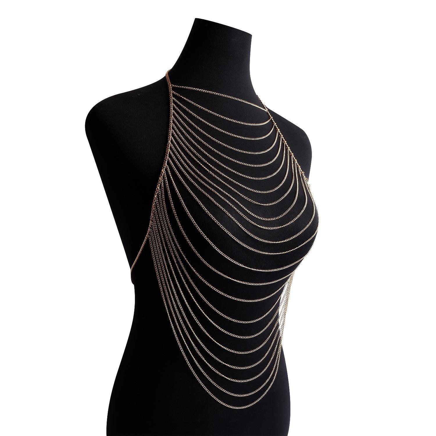 Joyería Transfronteriza Europea y Americana Popular Cadena de Borlas Multicapa Halter Cadena Corporal Cadena de Cintura Femenina Sexy Chica Hot Cadena para el Pecho Accesorios