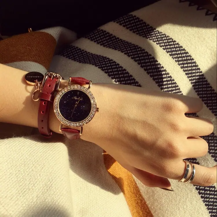 Reloj de pulsera para mujer moderno de dos piezas, los diamantes brillan debido a la luz, ¡y la luz es más hermosa porque está adornada con diamantes!
