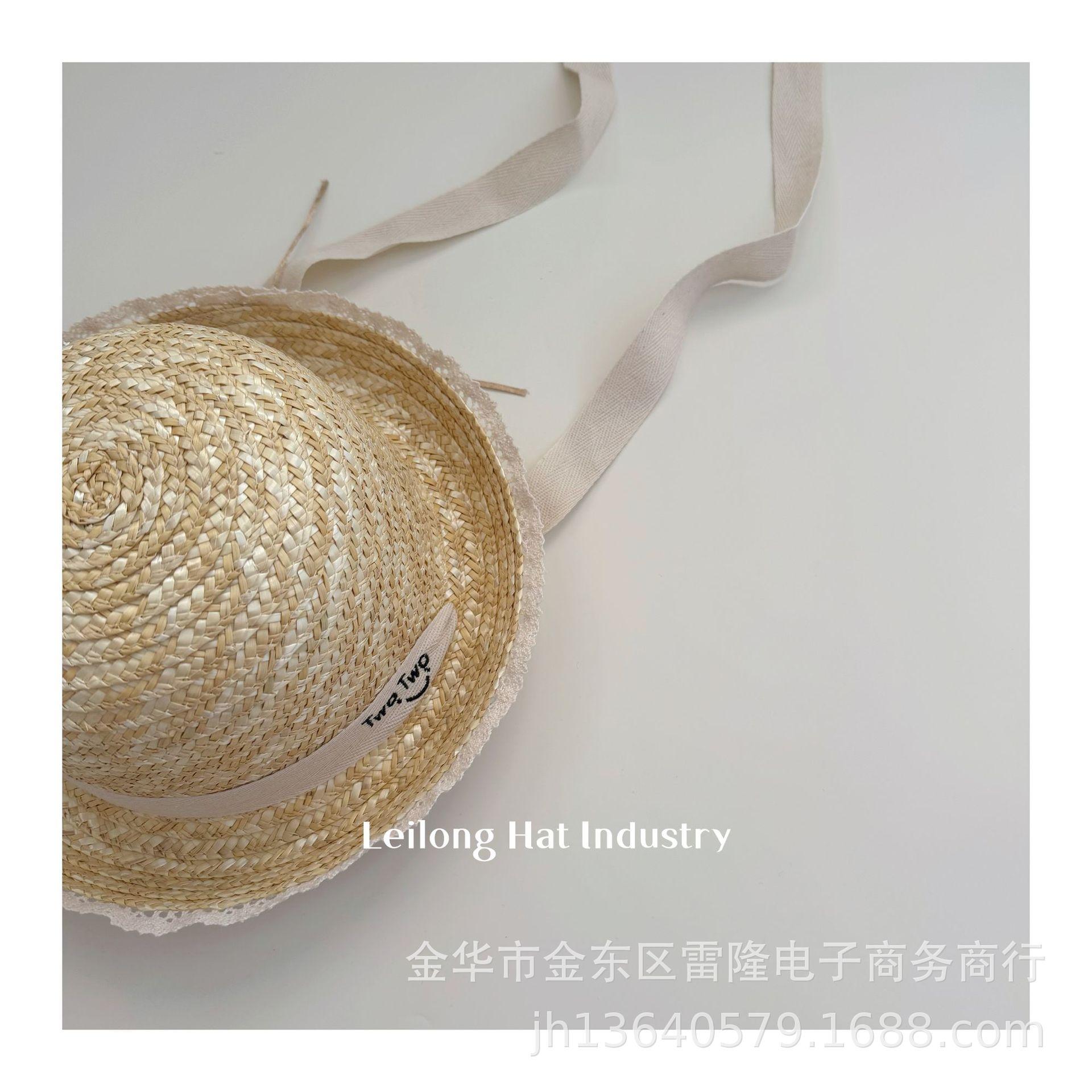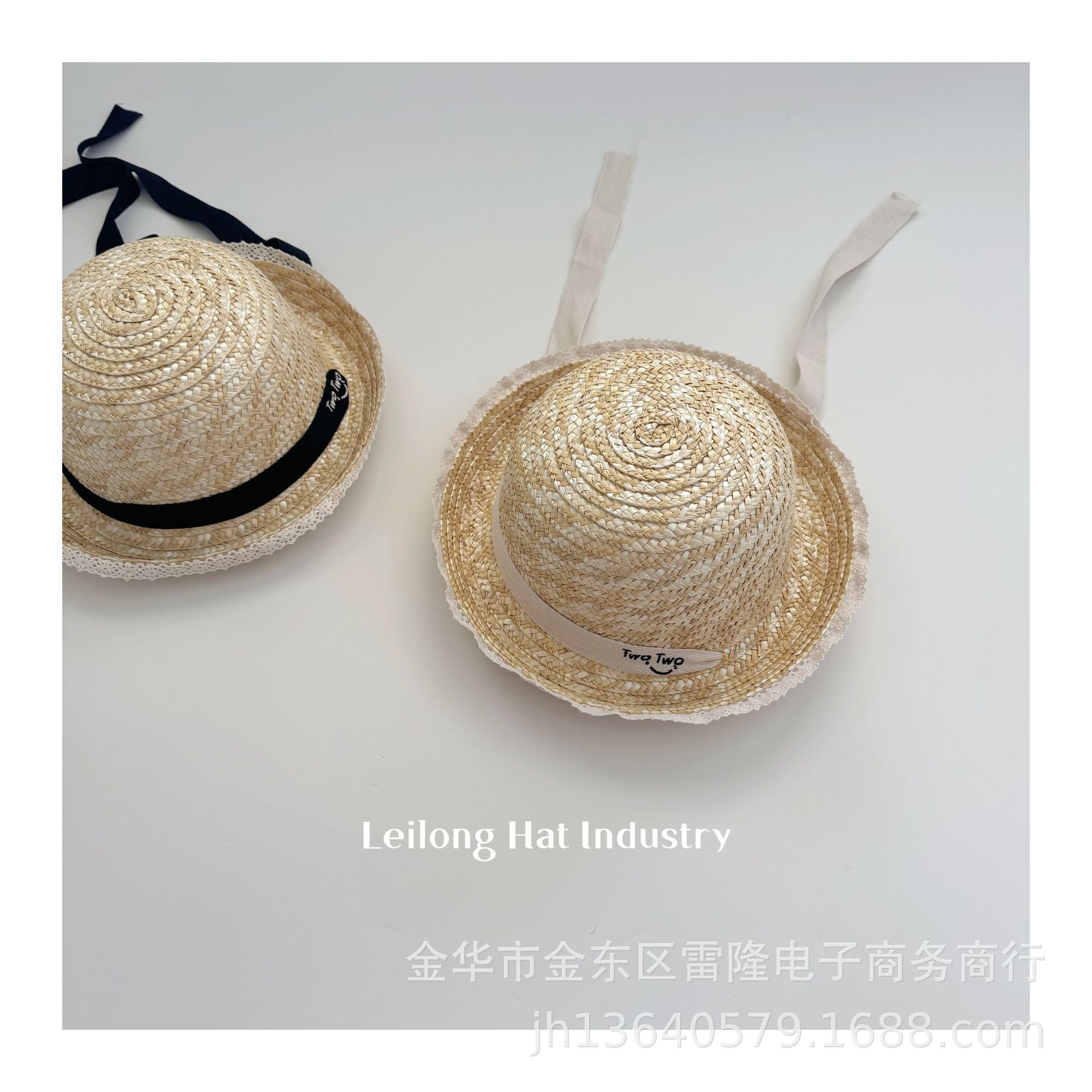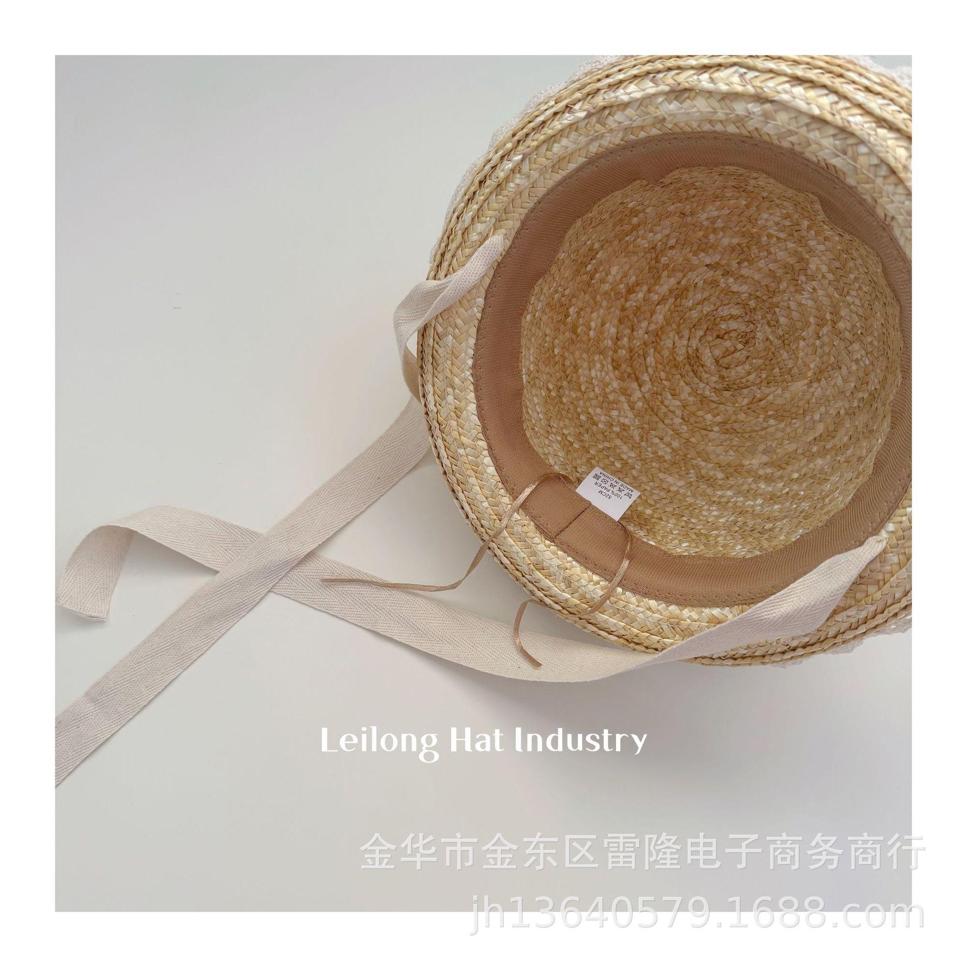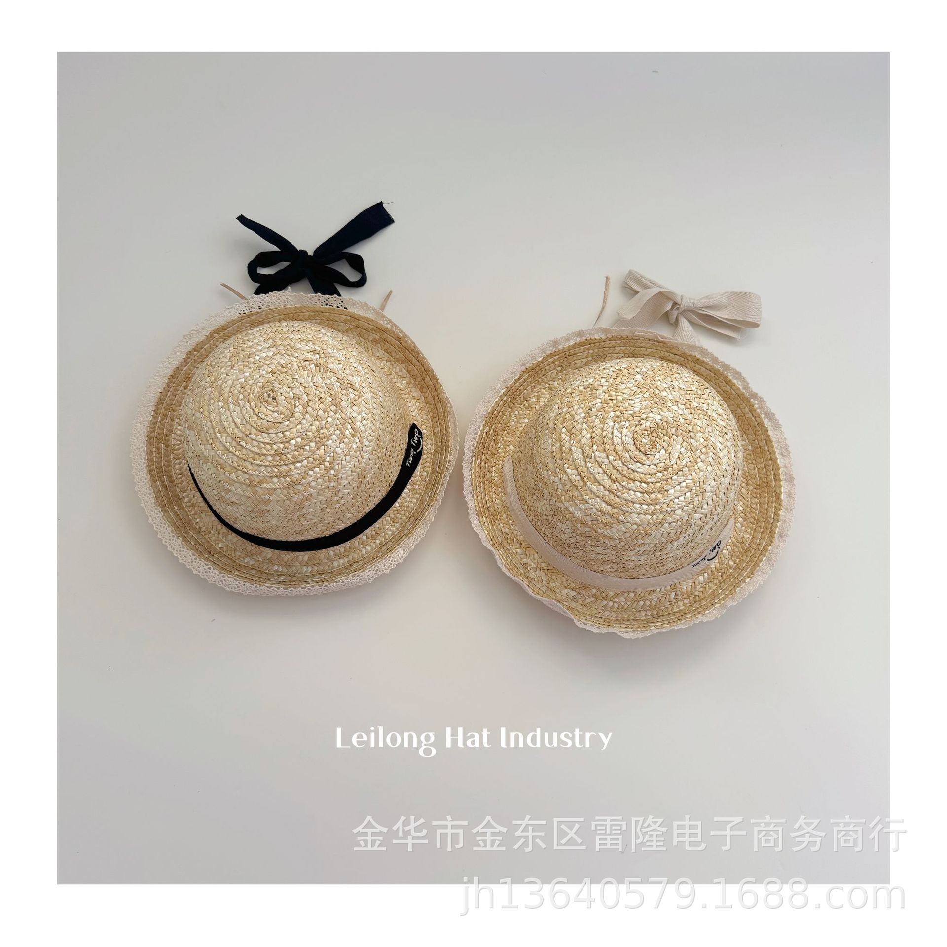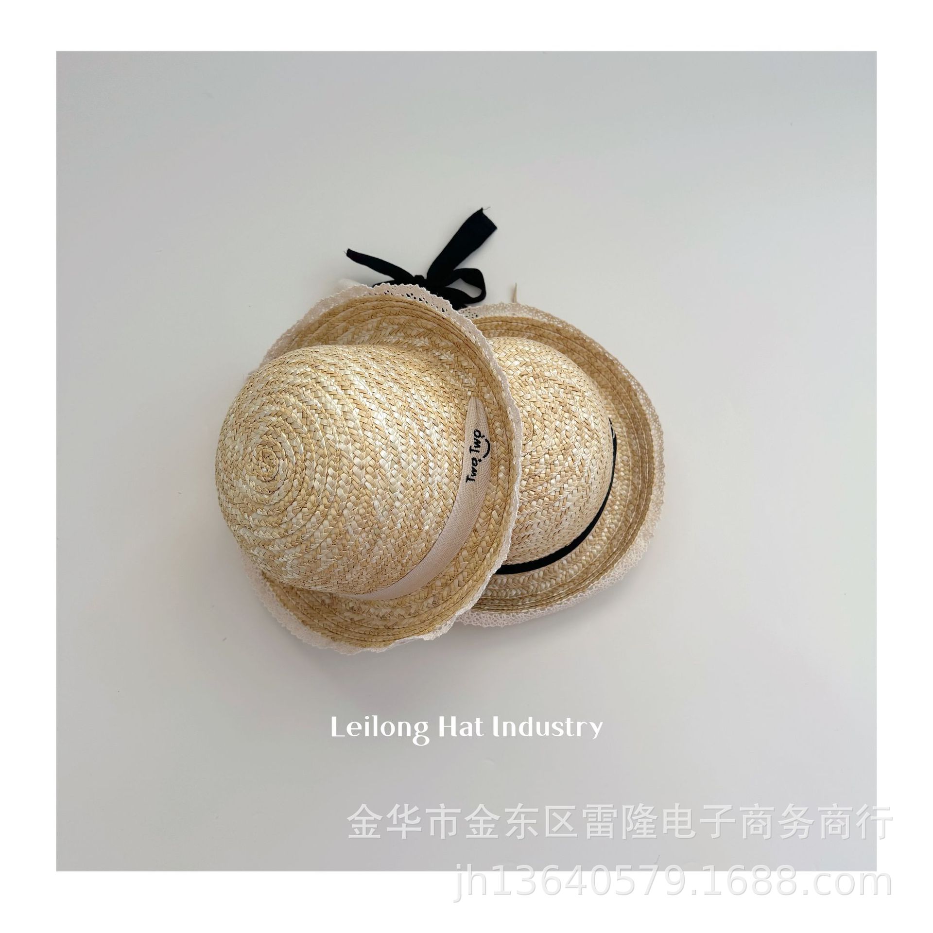 Sombrero de Paja para Niños Masculino y Femenino Estilo Cóncavo para Bebé Combinable Estilo Extranjero Copa Plana Ala Grande Sombrilla Salida Sombrero Anti-Solar