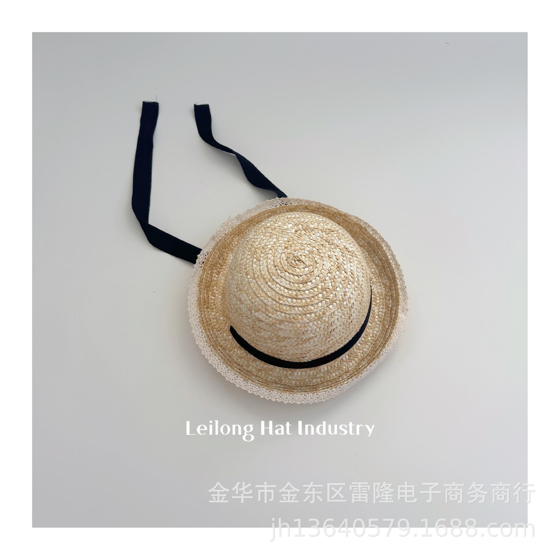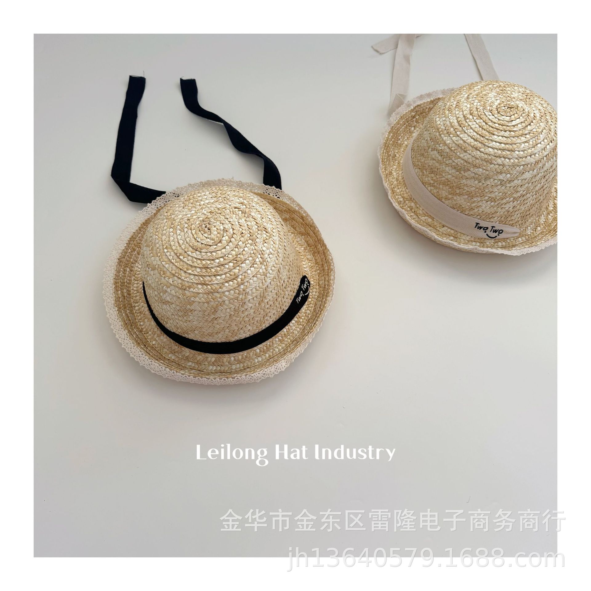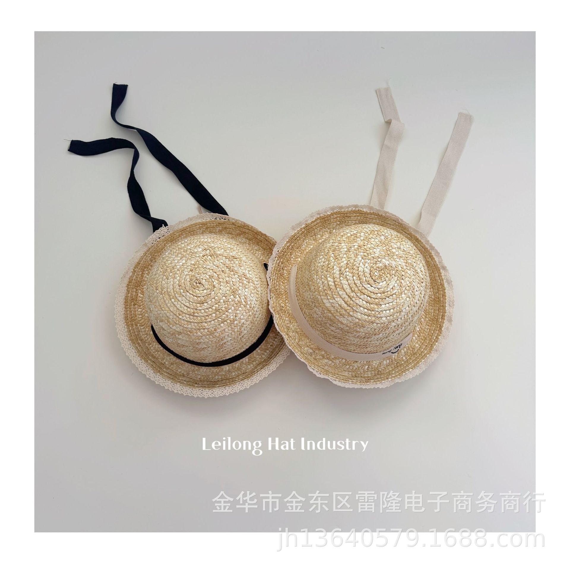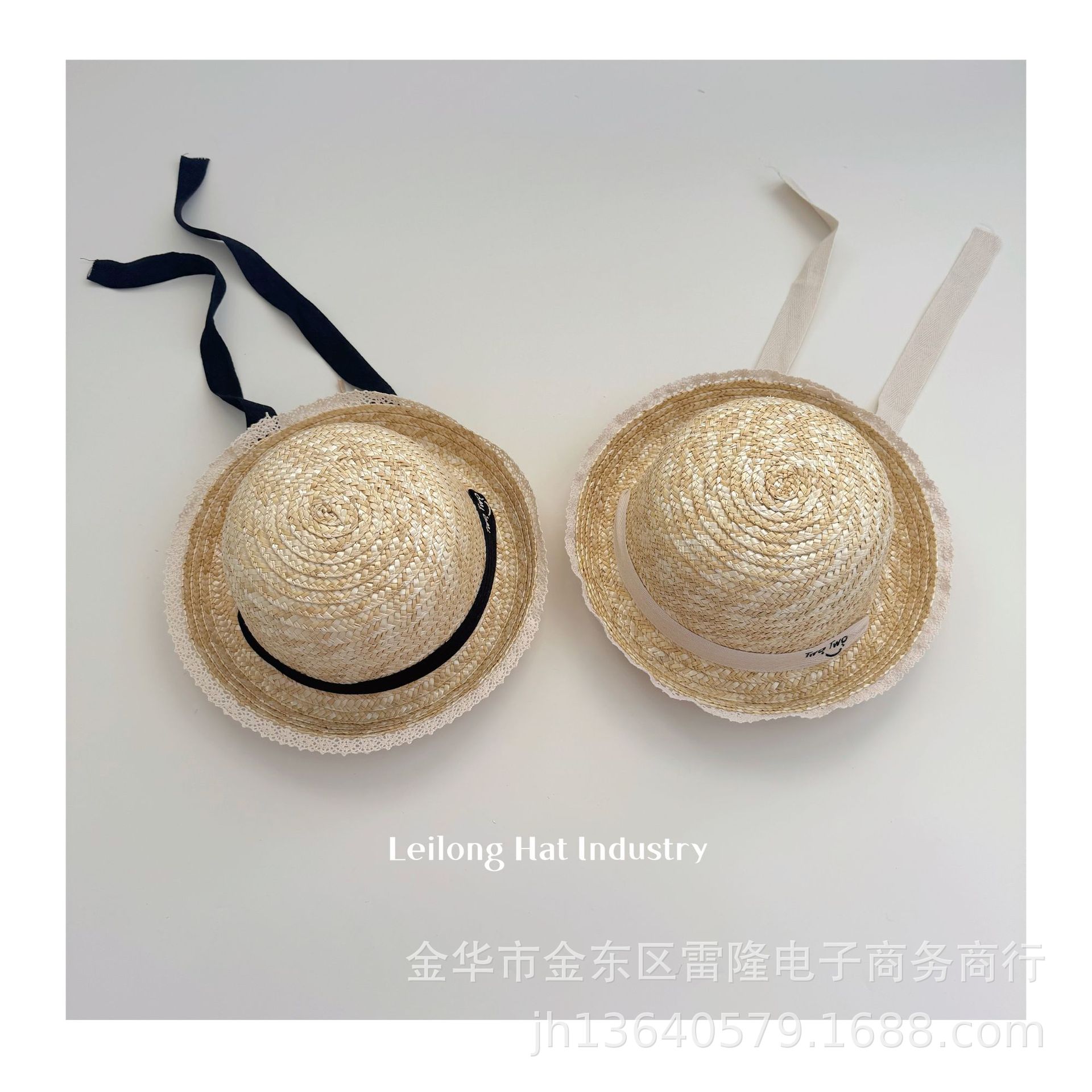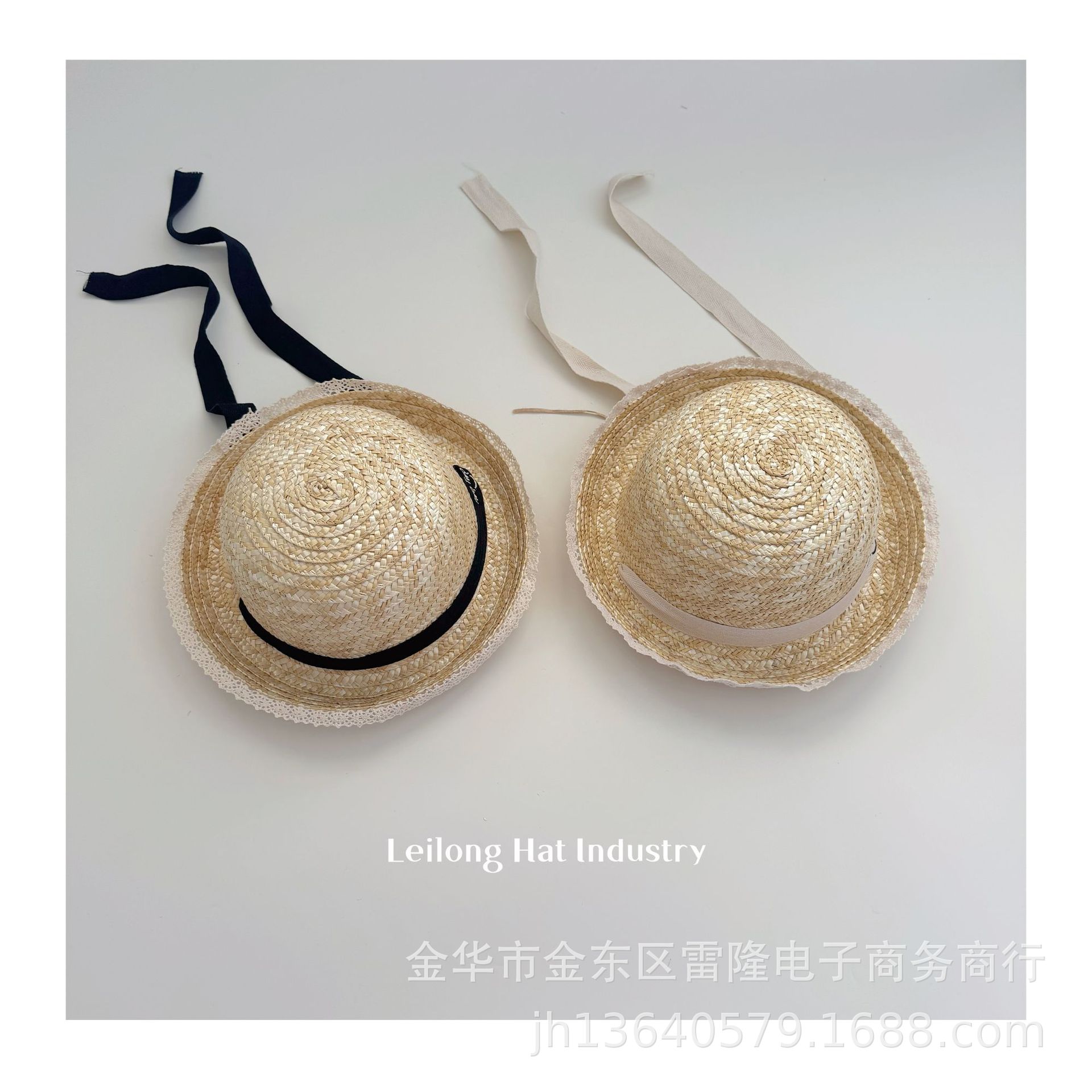 Sombrero de Paja para Niños Masculino y Femenino Estilo Cóncavo para Bebé Combinable Estilo Extranjero Copa Plana Ala Grande Sombrilla Salida Sombrero Anti-Solar