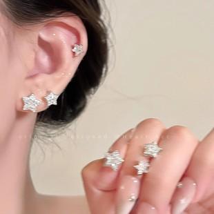 Aretes de estrella hueca de estilo indiferente con circonita cúbica para mujer, súper brillantes, temperamentales, nicho ins de alta gama, aretes de botón, aretes dulces, geniales y de chica hot