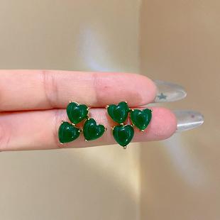 Nuevos Pendientes de Corazón Retro Chino de Calcedonia Falsa para Mujer Moda de Lujo Ligero Temperamento de Socialité Sentido de Alta Gama Pendientes de Botón Pendientes de Personalidad