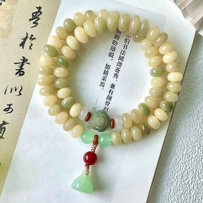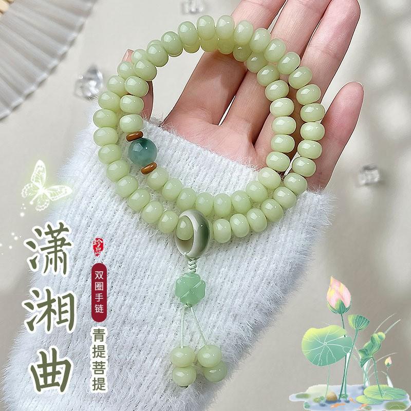 Pulsera de Semillas Bodhi de Jade Blanco Cian Natural Nuevo Producto Juego para Hombre Pulsera de Nuevo Estilo Chino Accesorios para Mujer Juego Literario Fuente de Transmisión en Vivo