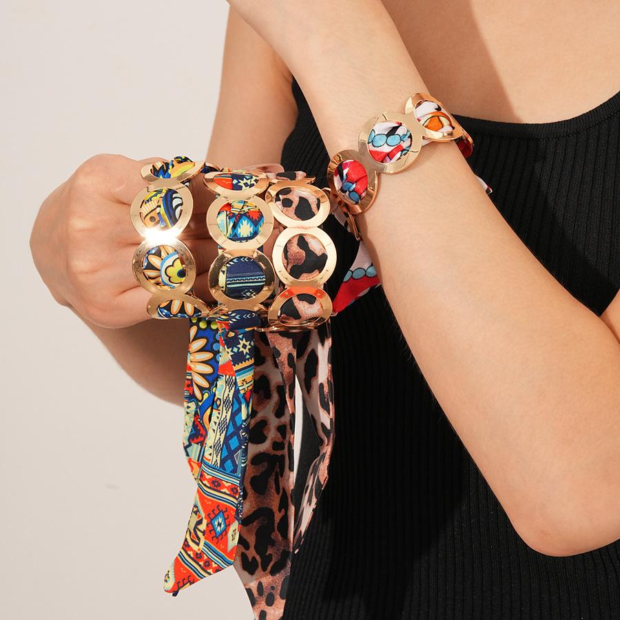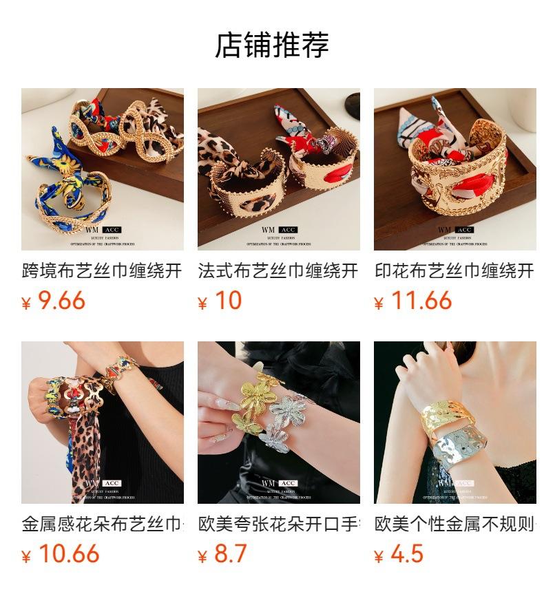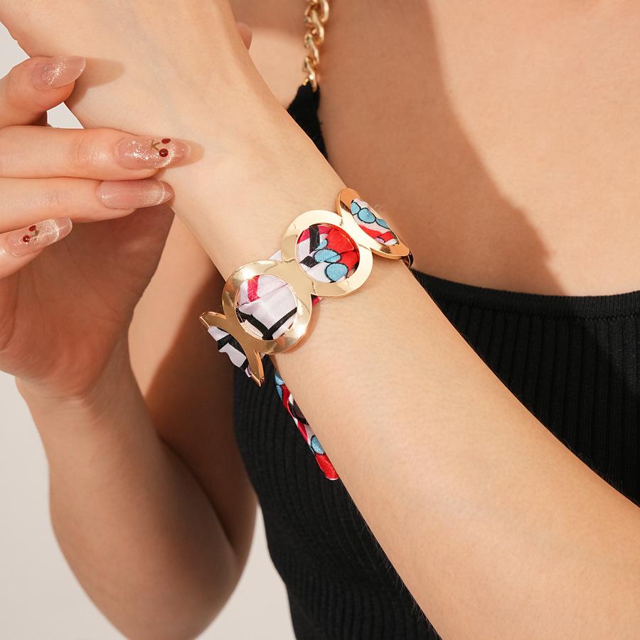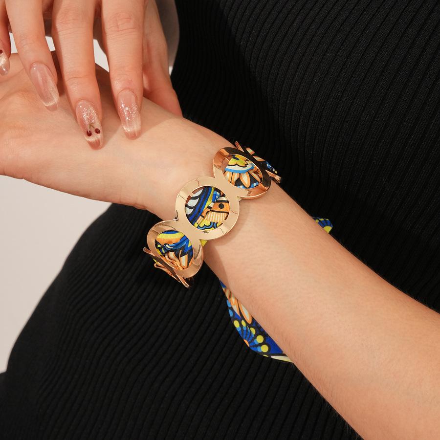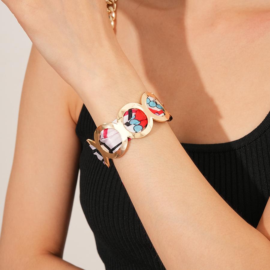Bufanda Retro Redonda de Tela Brazalete Abierto Europeo y Americano Metálico Sentido del Diseño Joyería Nicho de Alta Gama para Mujer
