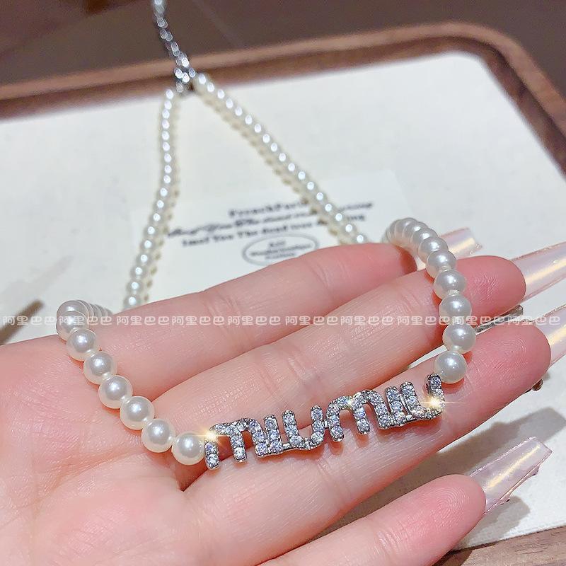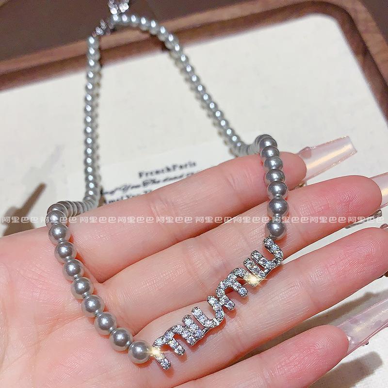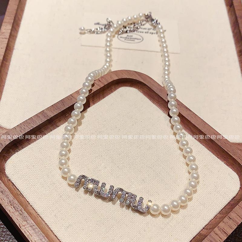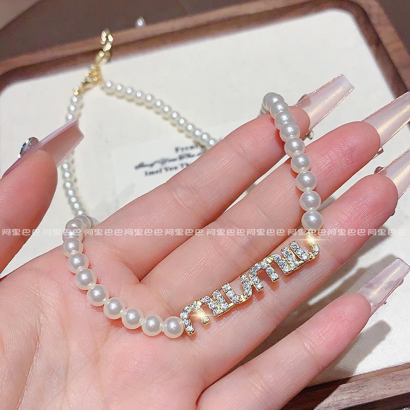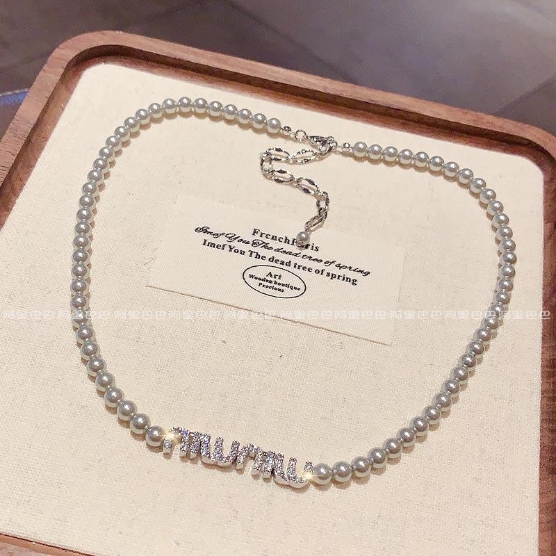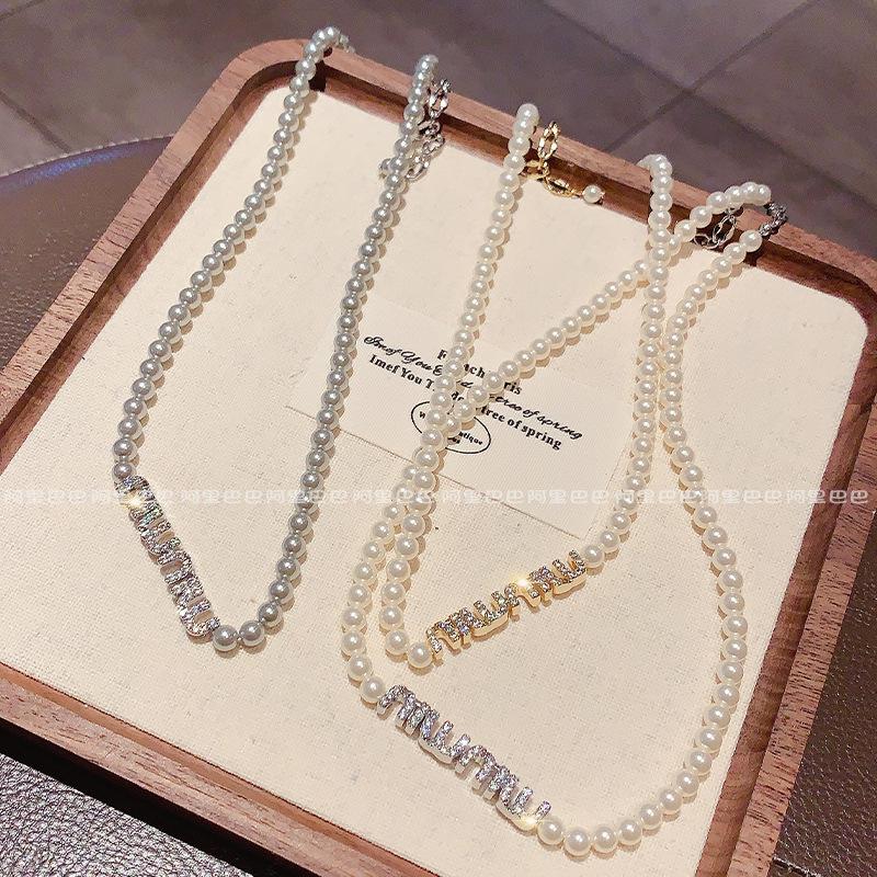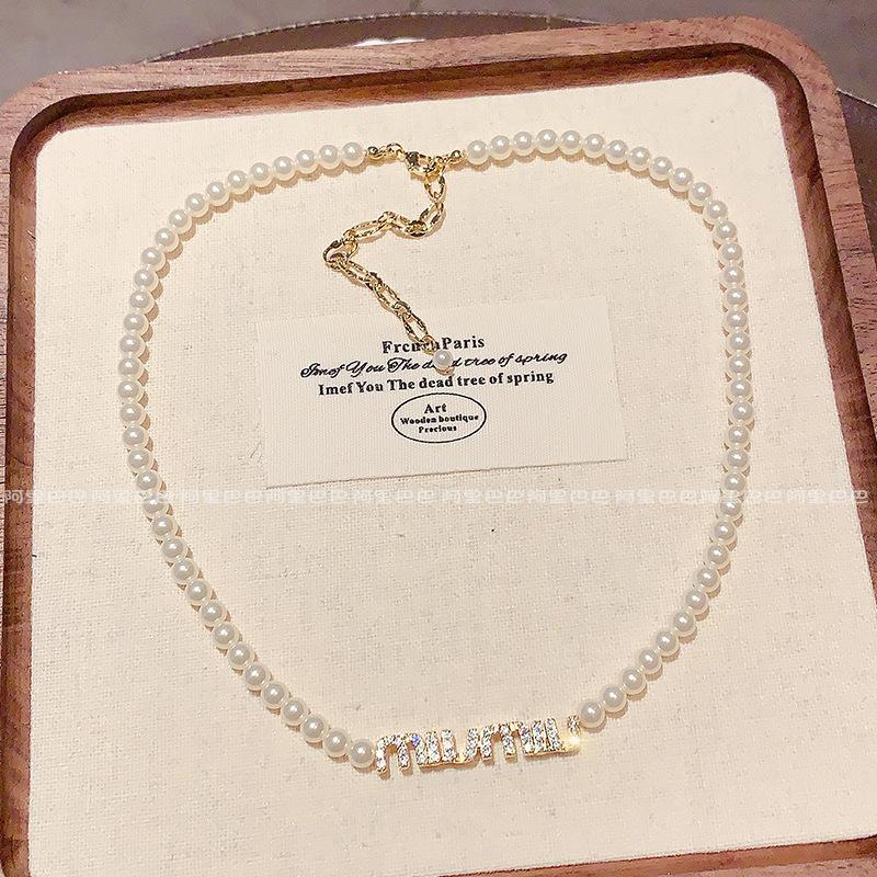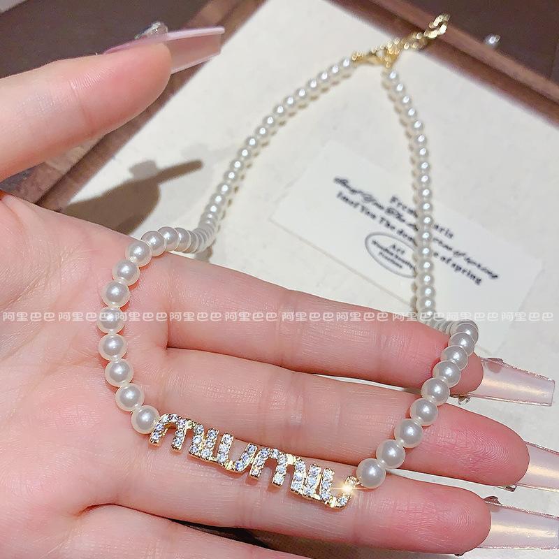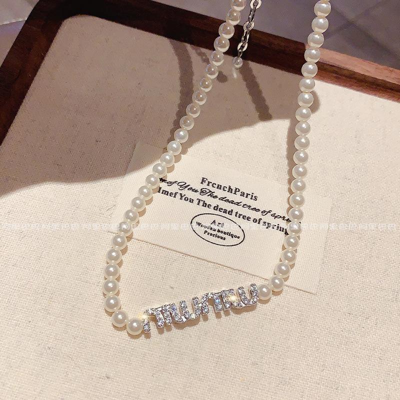Collar de Letra de Perla con Diamantes Completos de Lujo Ligero Estilo Francés para Mujer, Accesorio de Cadena para Clavícula Novedad 2025 de Nicho