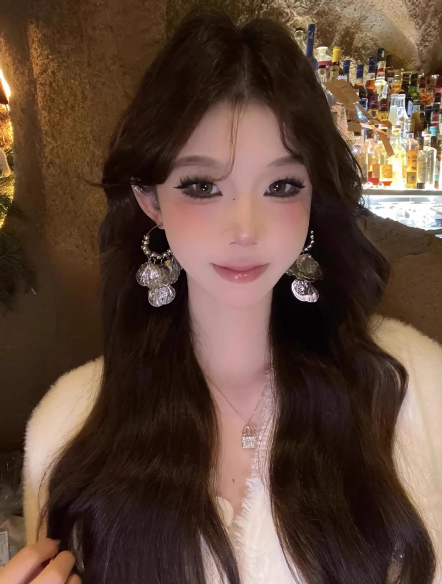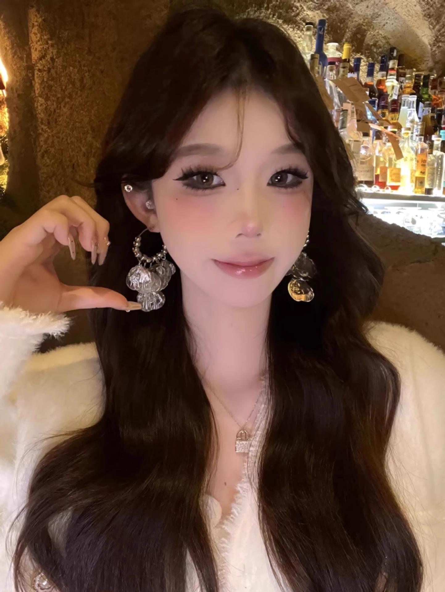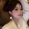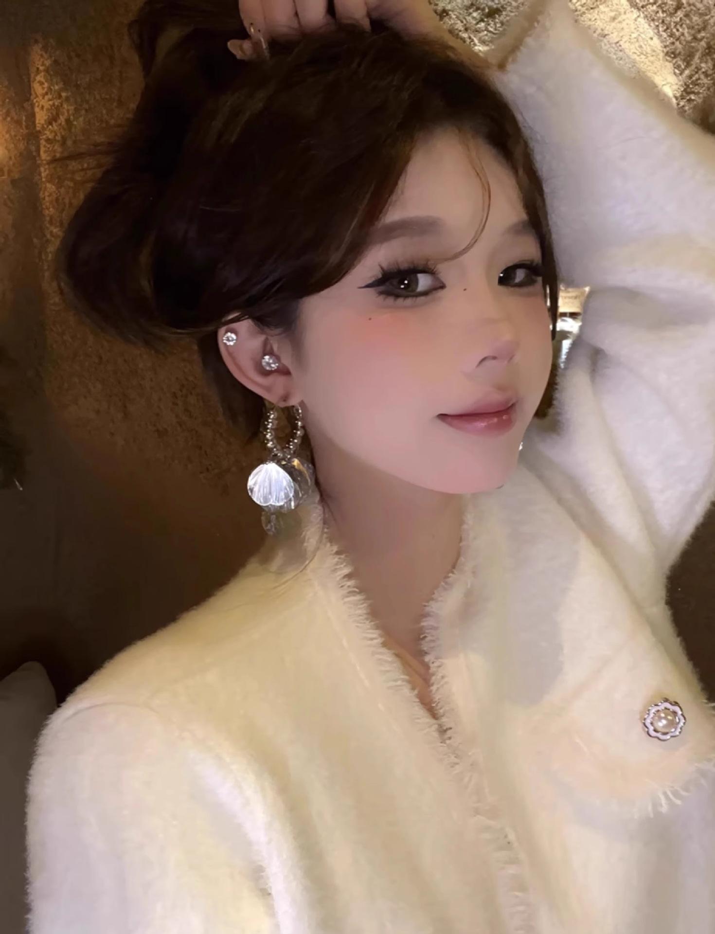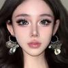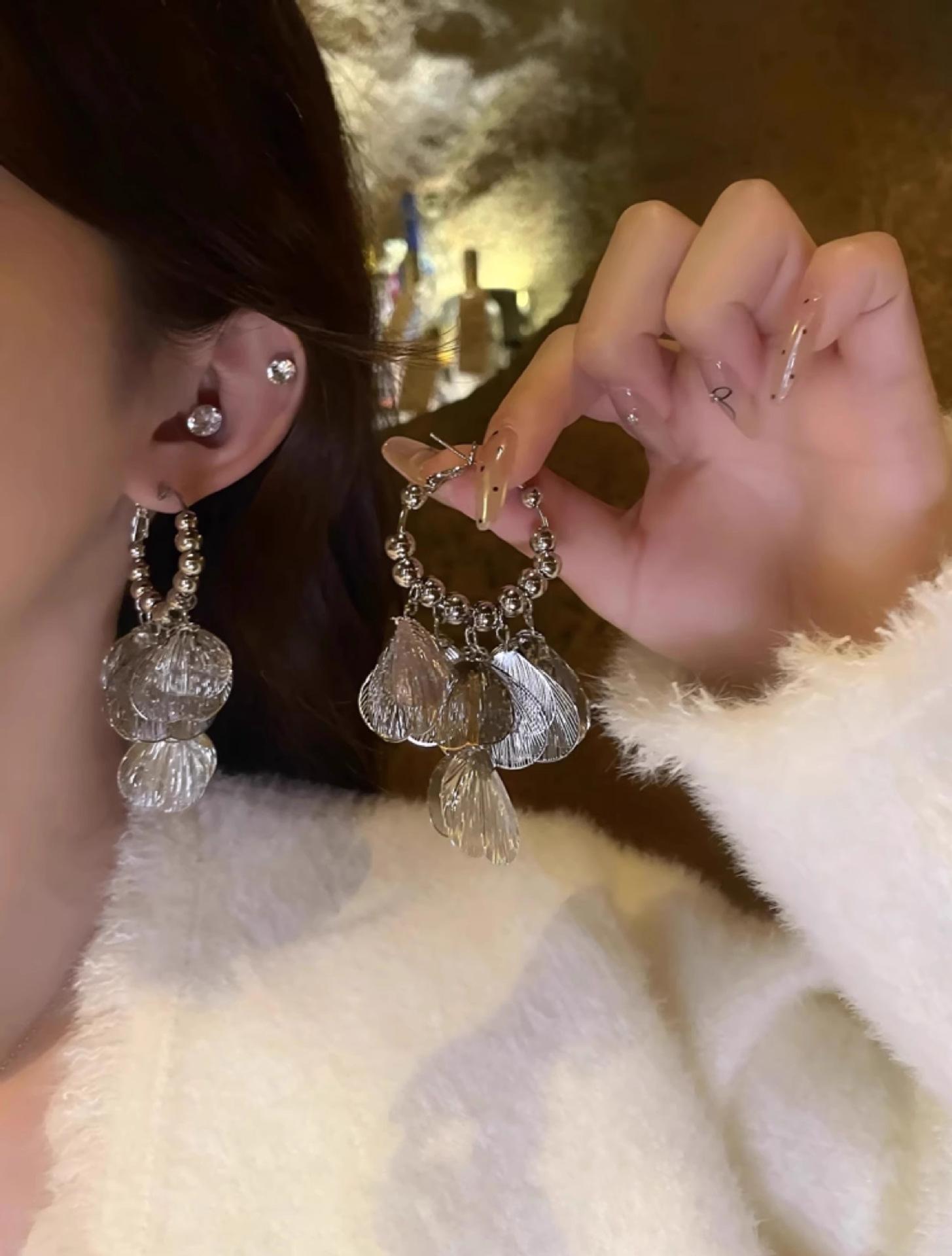 Aretes colgantes de pétalos de perlas retro europeos y americanos, aretes de diseño exquisito exagerado de nicho, aretes de alta gama de lujo ligero