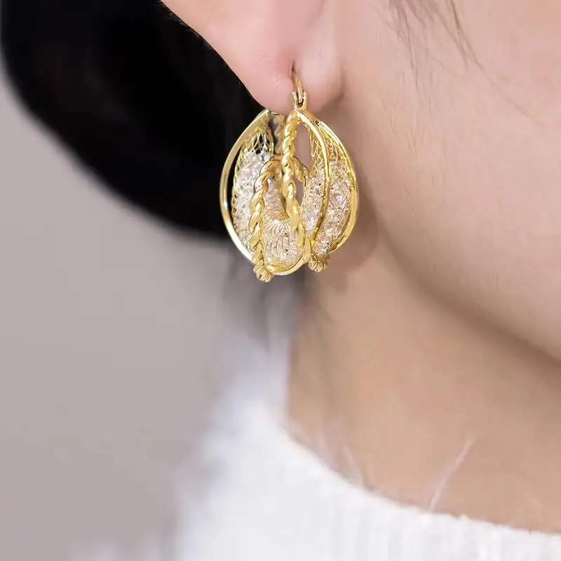 Diseño de Moda Envolventes Aretes de Malla de Cristal Huecos Nuevos Aretes de Lujo Ligero de Alto Sentido para Mujer Celebridad de Internet Nuevos Aretes