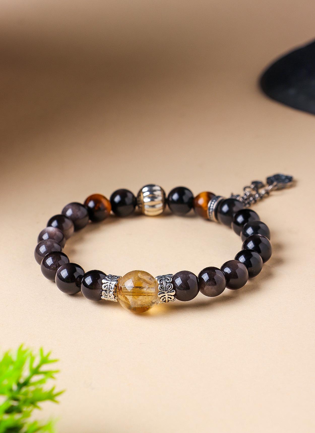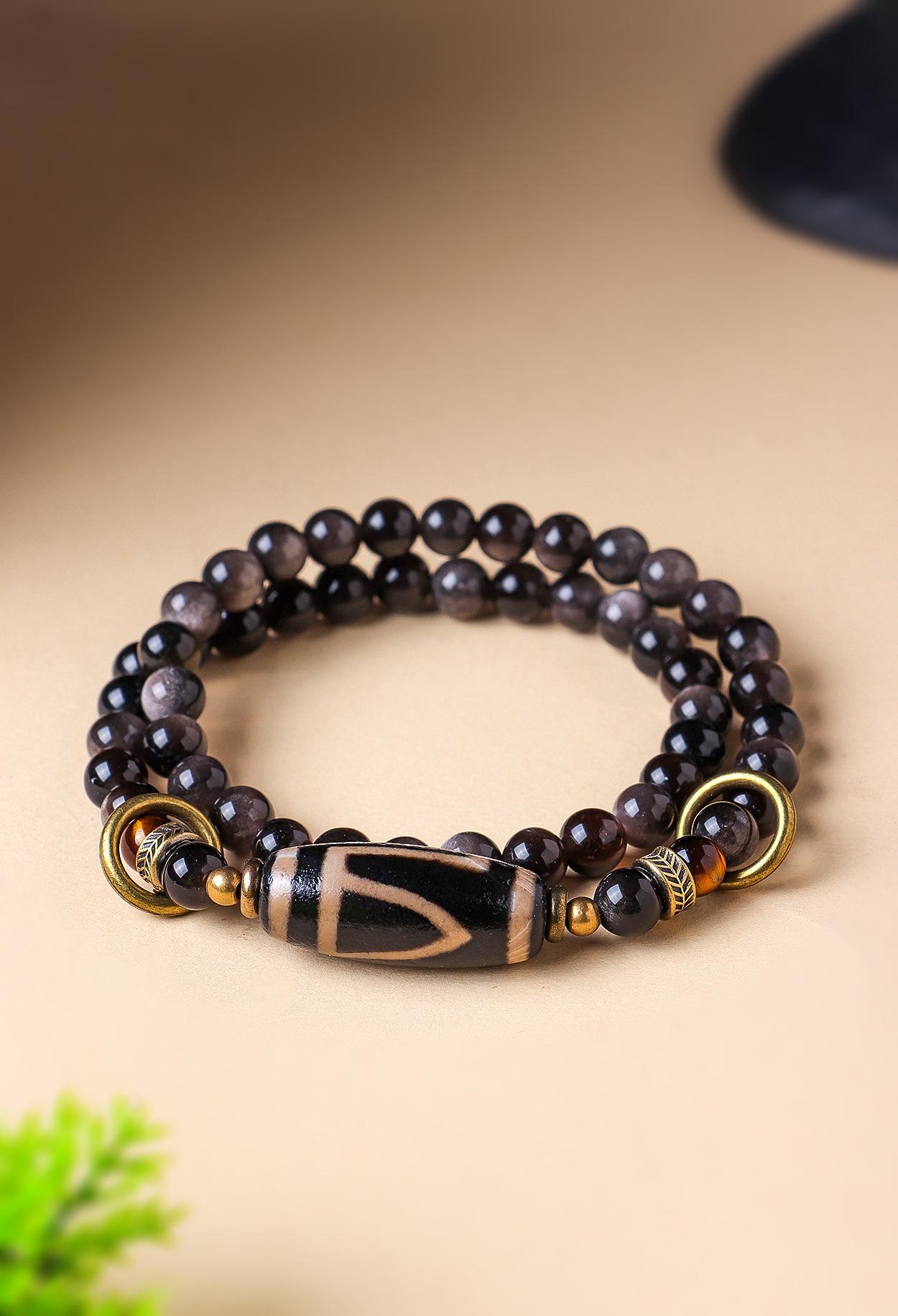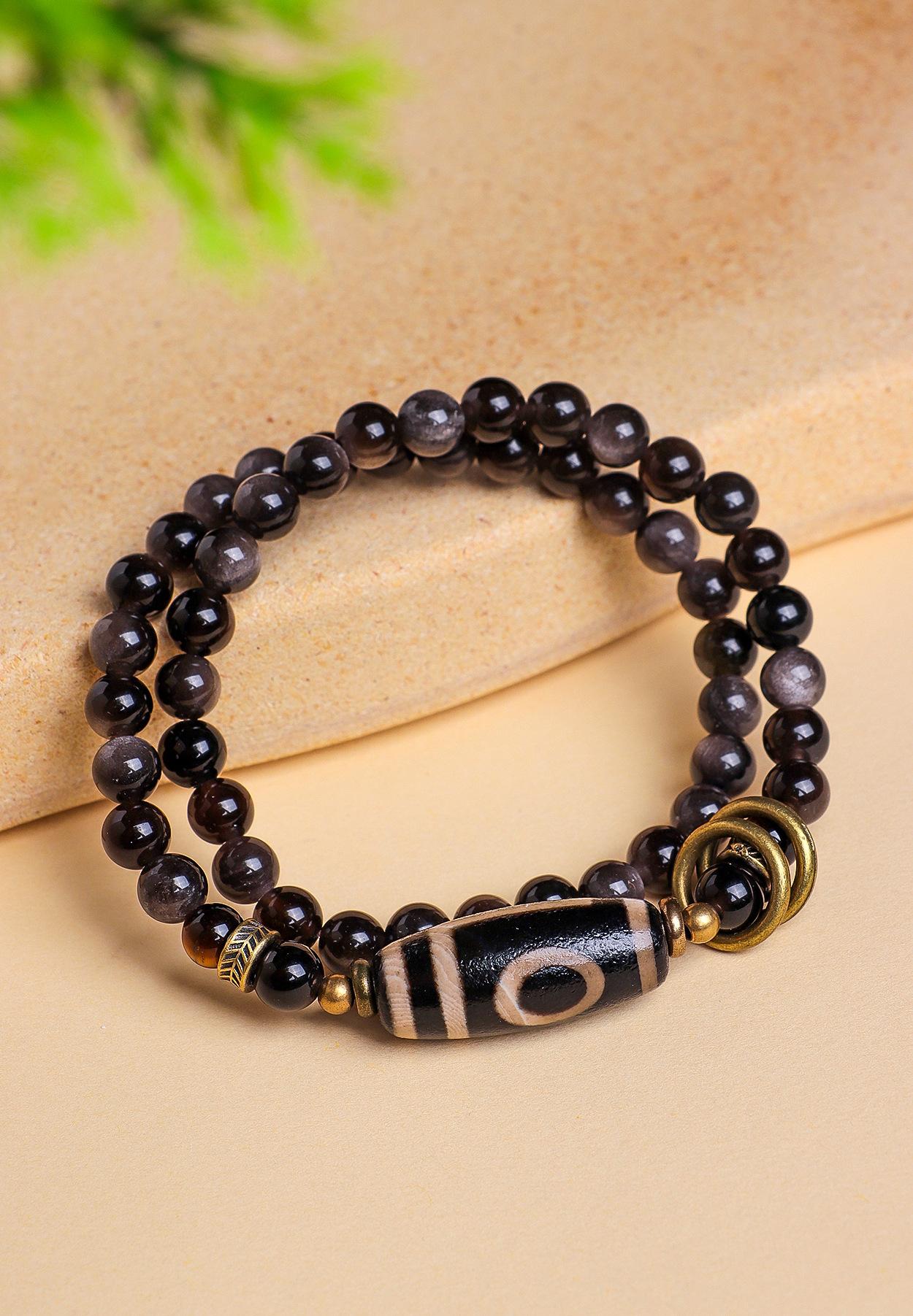 8mm natural silver obsidian bracelet, 6mm natural silver obsidian dzi bead bracelet