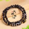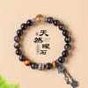 Pulsera de Cuentas Dzi de Ágata Obsidiana Plateada Natural para Hombres y Mujeres, Estilo Retro Literario Chino, Joyería de Pulsera de Piedra Ojo de Tigre