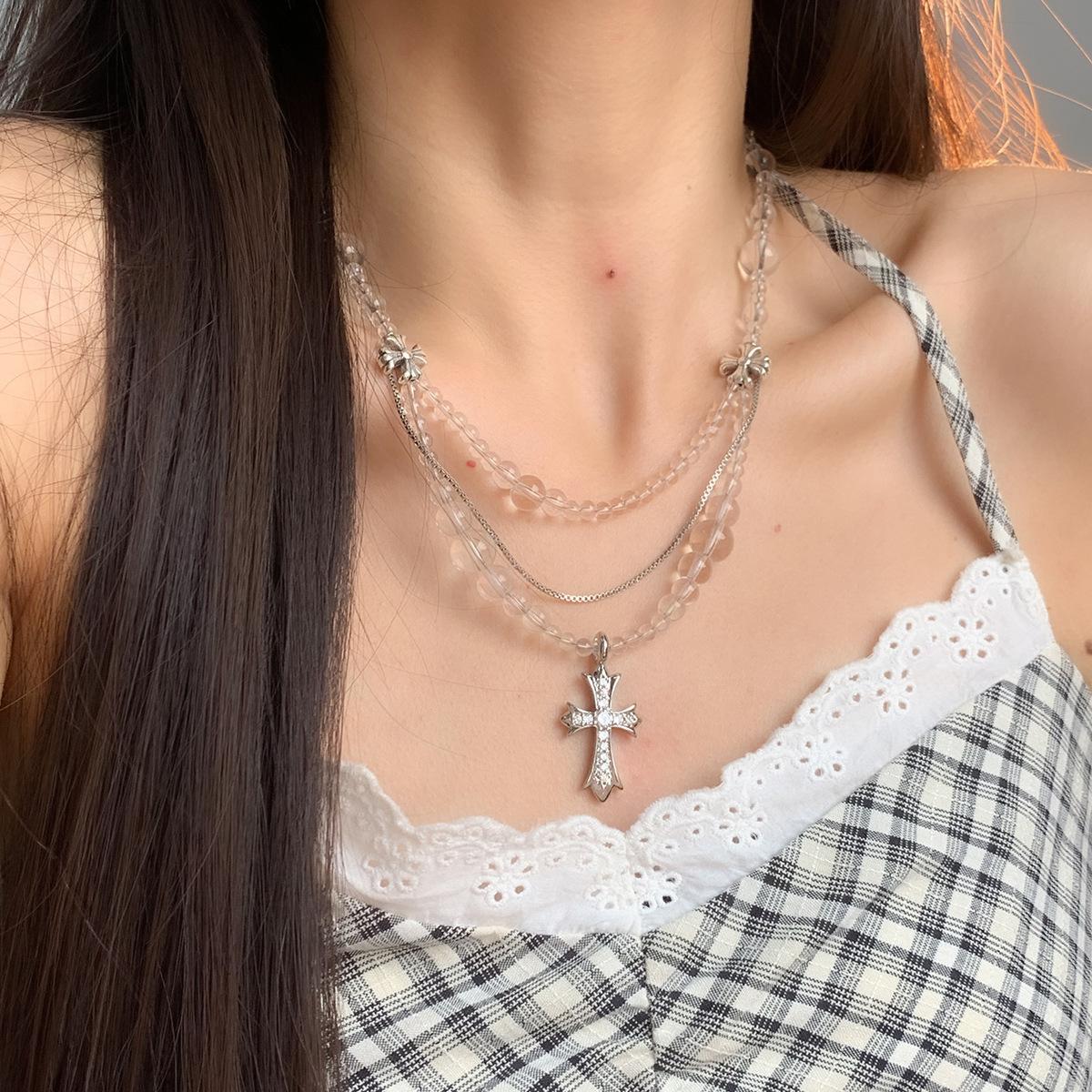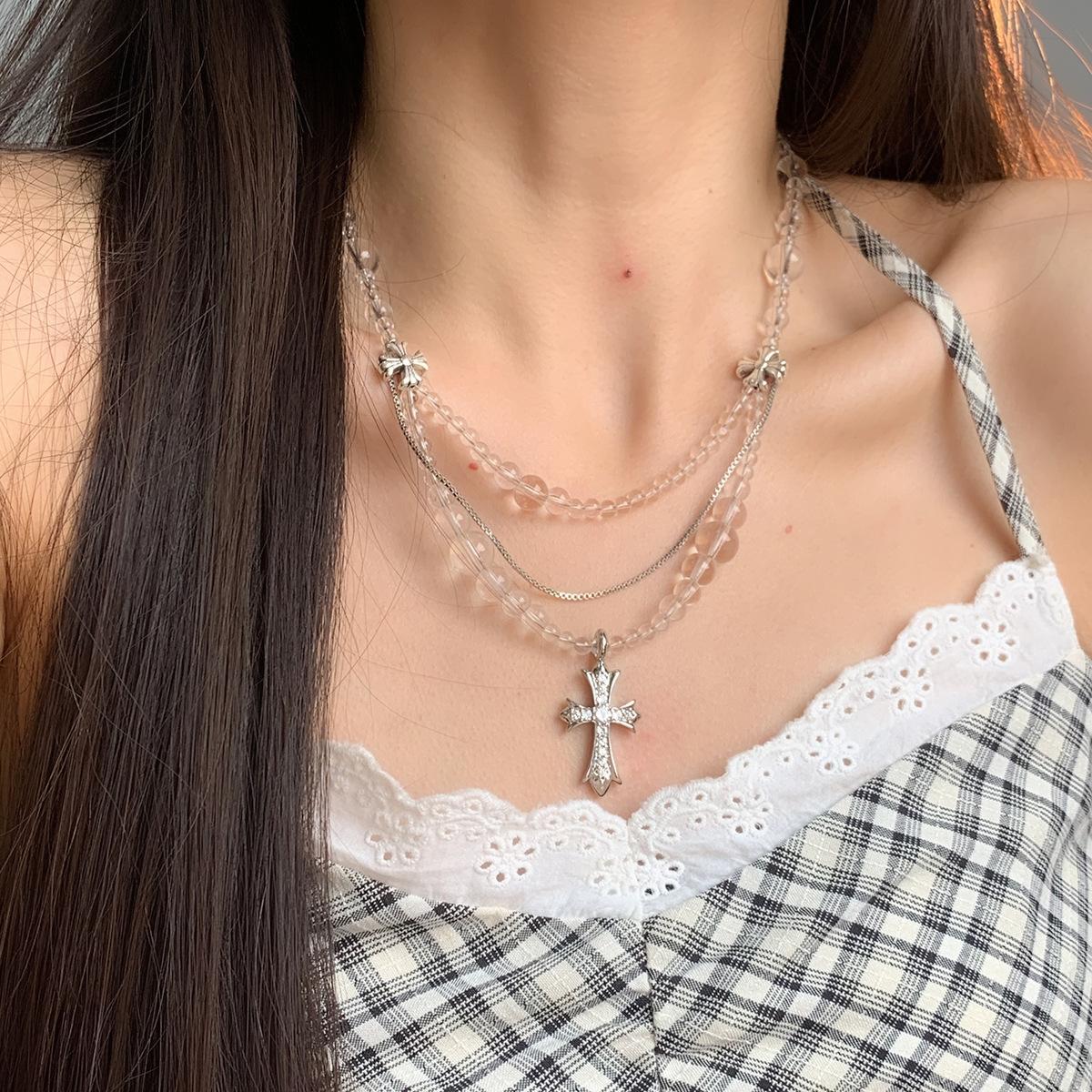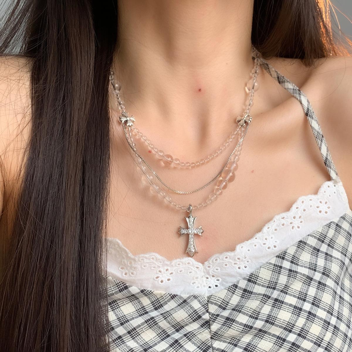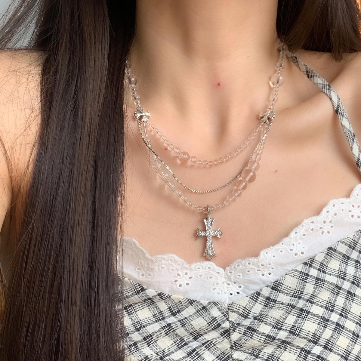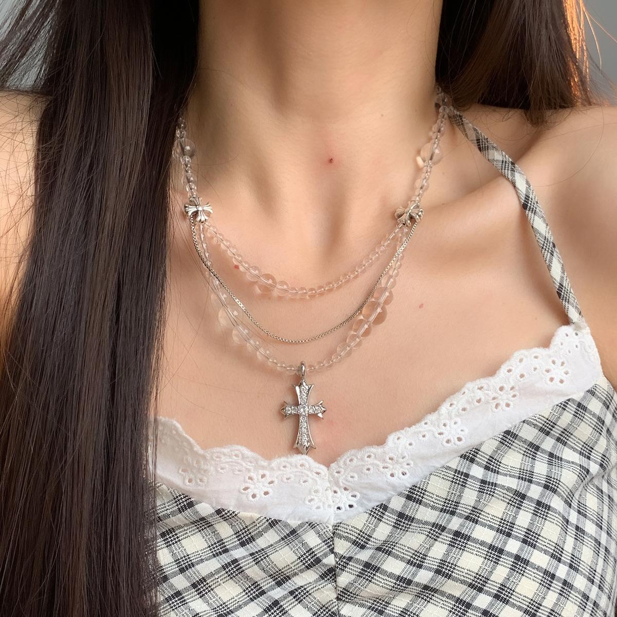 Compra Collar versátil con colgante de cruz de cristal multicapa empalmado, diseño nicho para mujer, temperamento de lujo ligero de alta gama al por mayor en Joom.pro