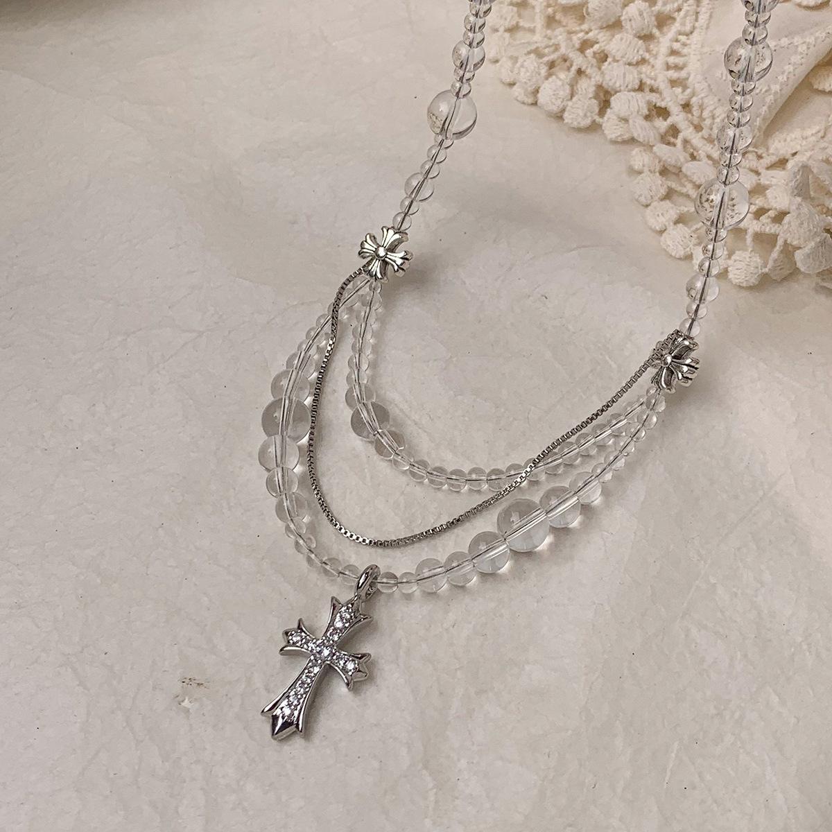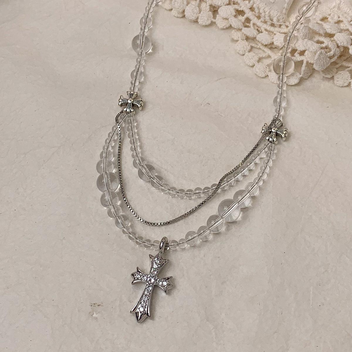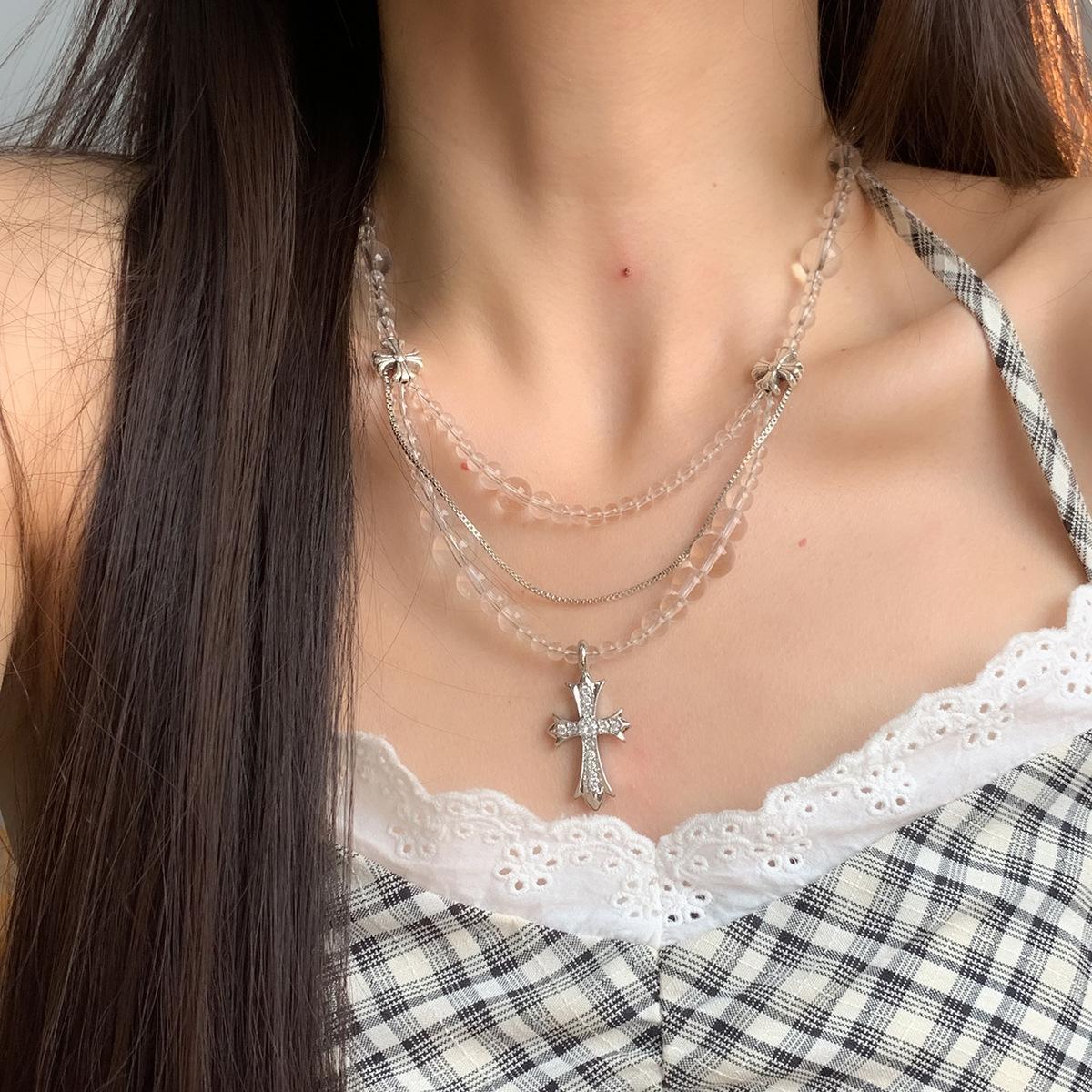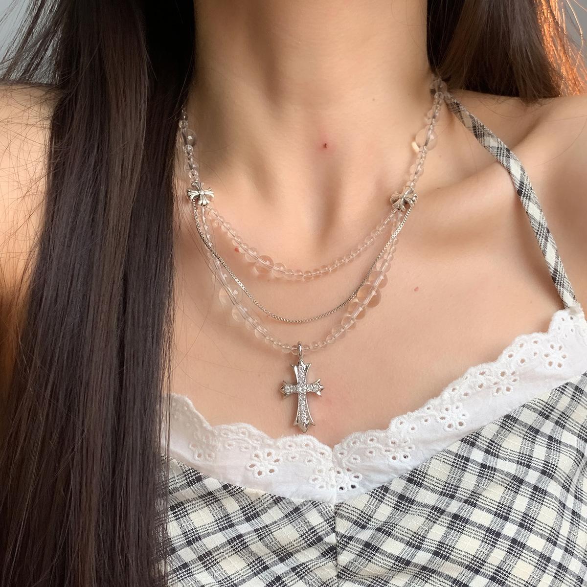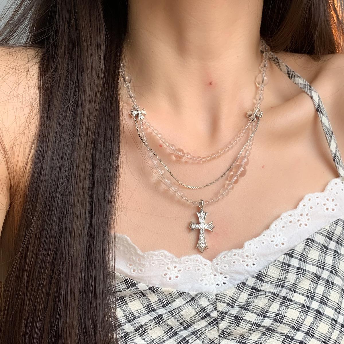 Compra Collar versátil con colgante de cruz de cristal multicapa empalmado, diseño nicho para mujer, temperamento de lujo ligero de alta gama al por mayor en Joom.pro