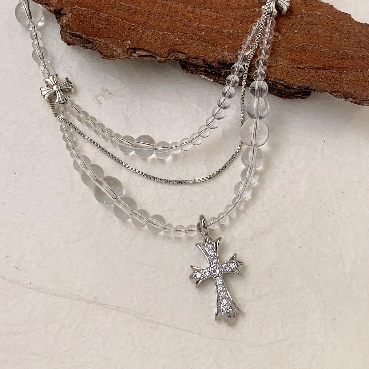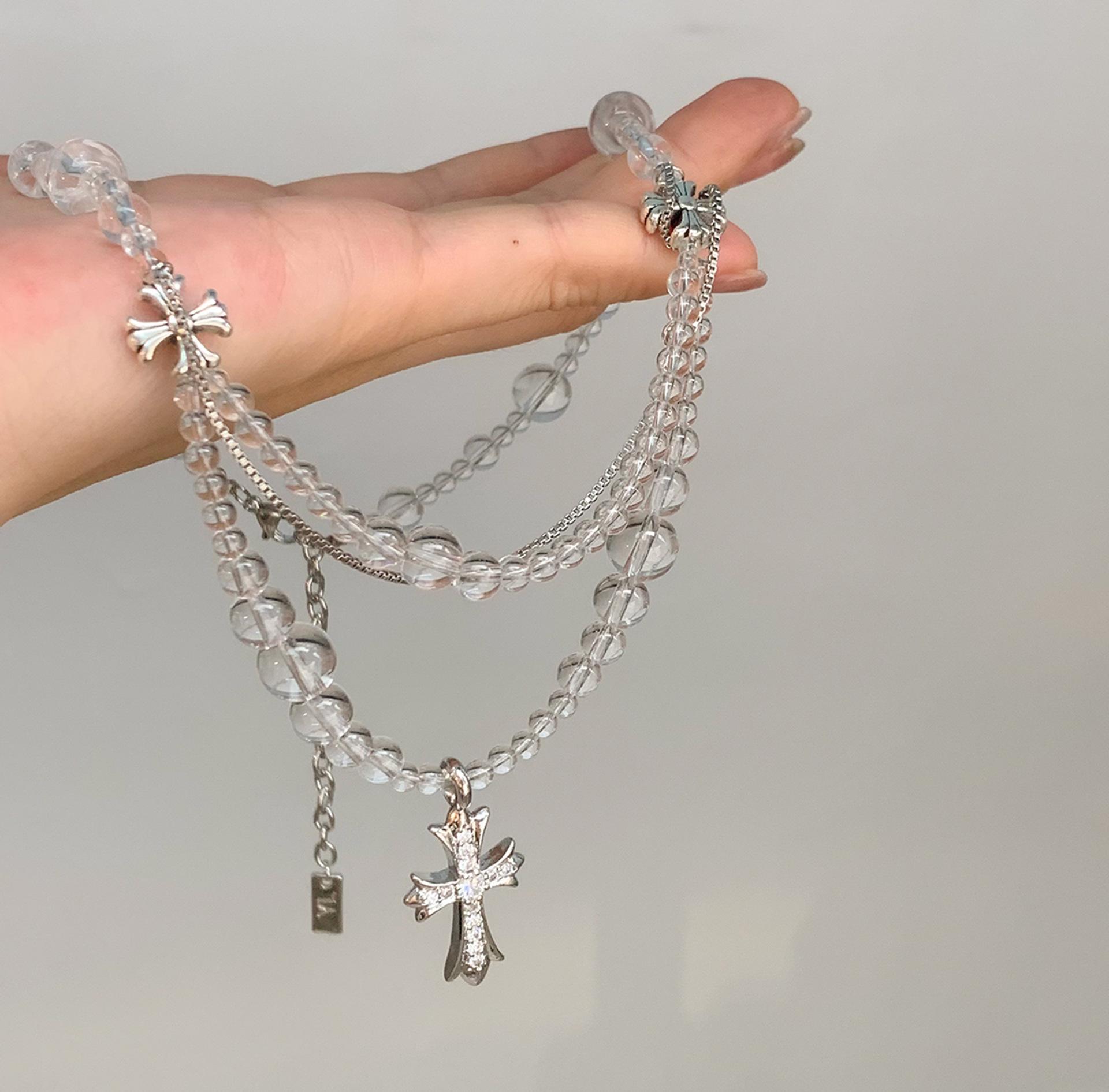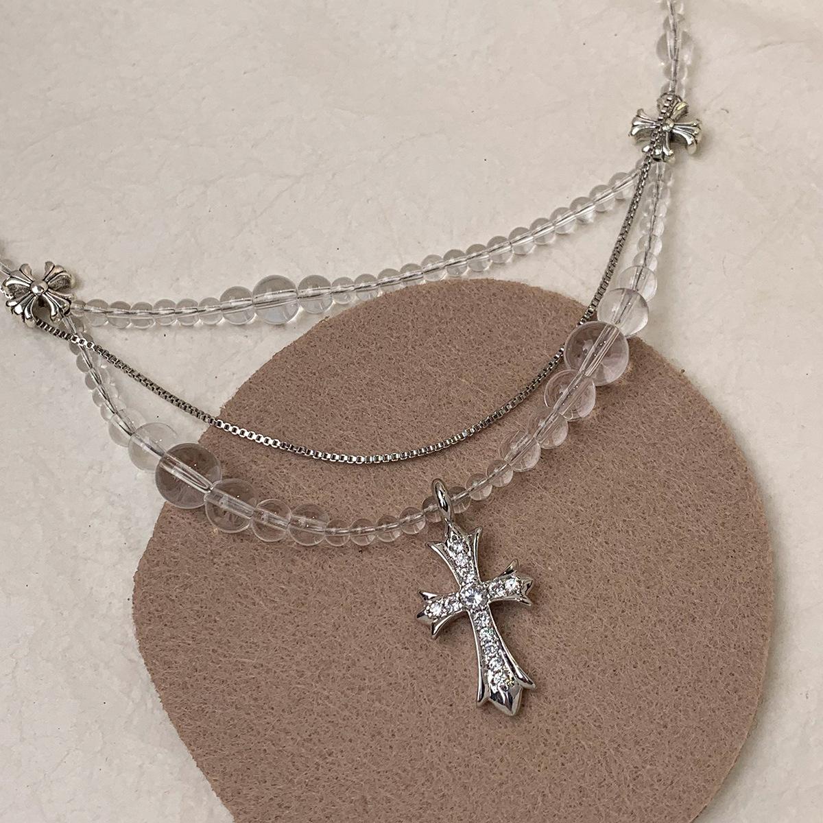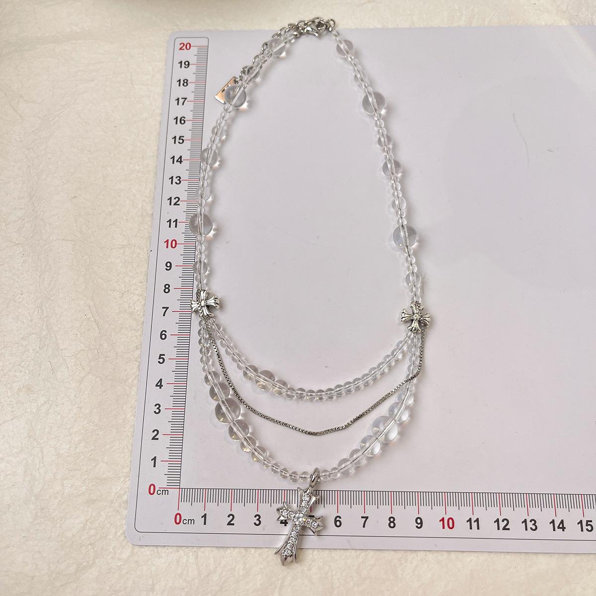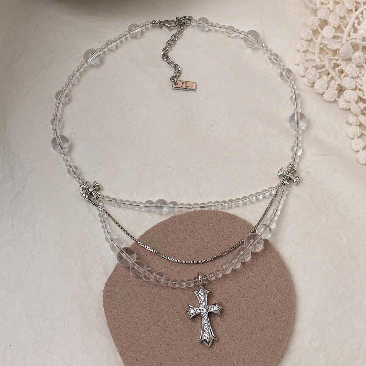 Compra Collar versátil con colgante de cruz de cristal multicapa empalmado, diseño nicho para mujer, temperamento de lujo ligero de alta gama al por mayor en Joom.pro