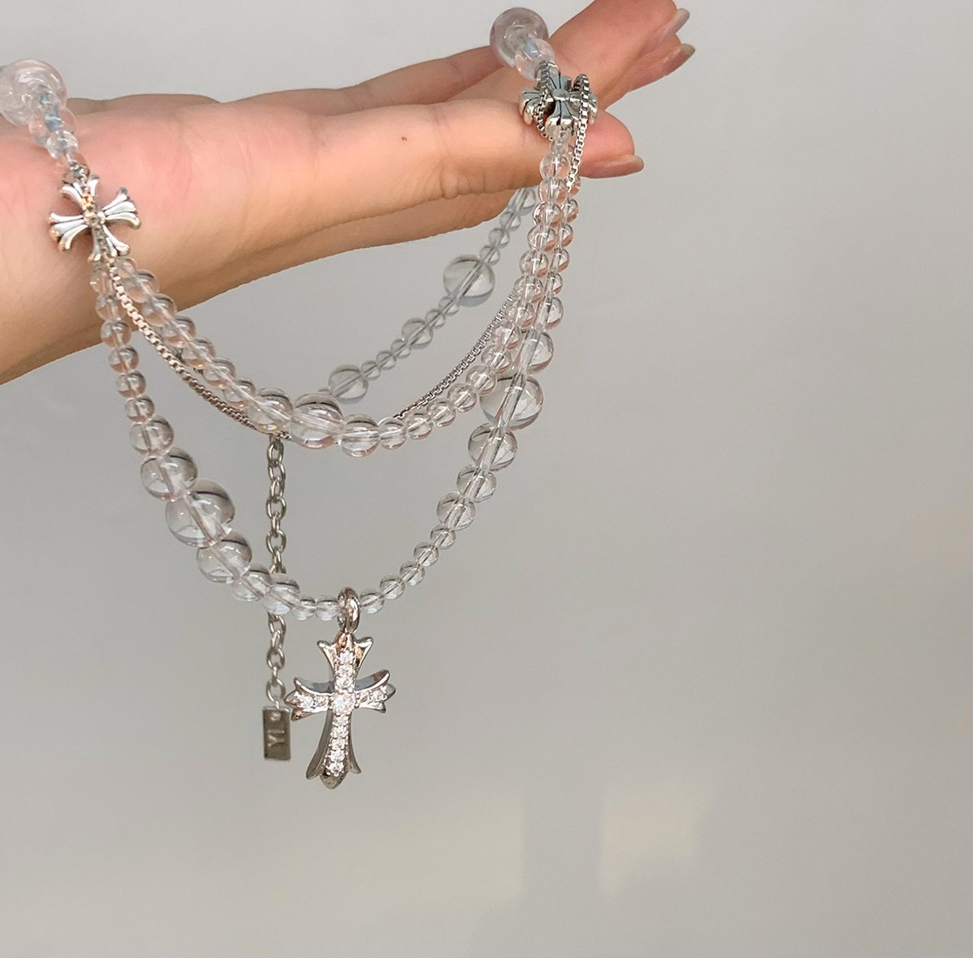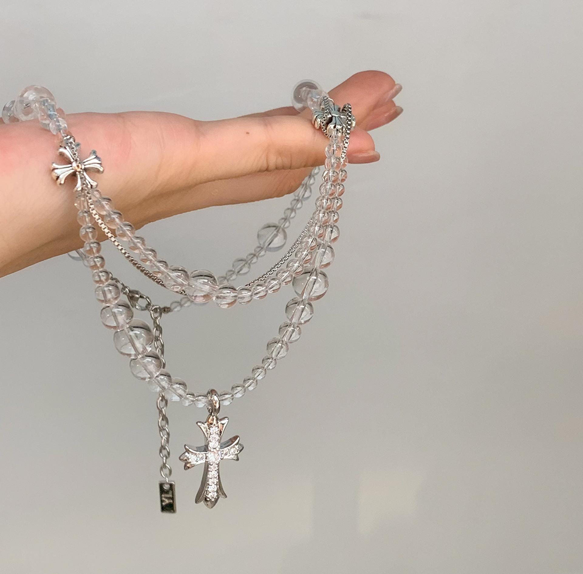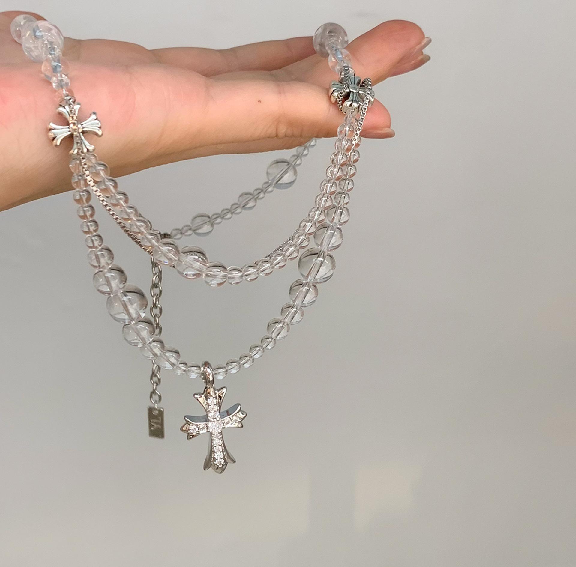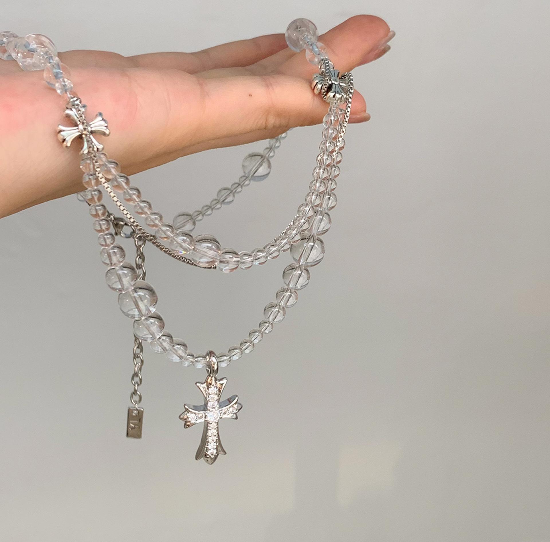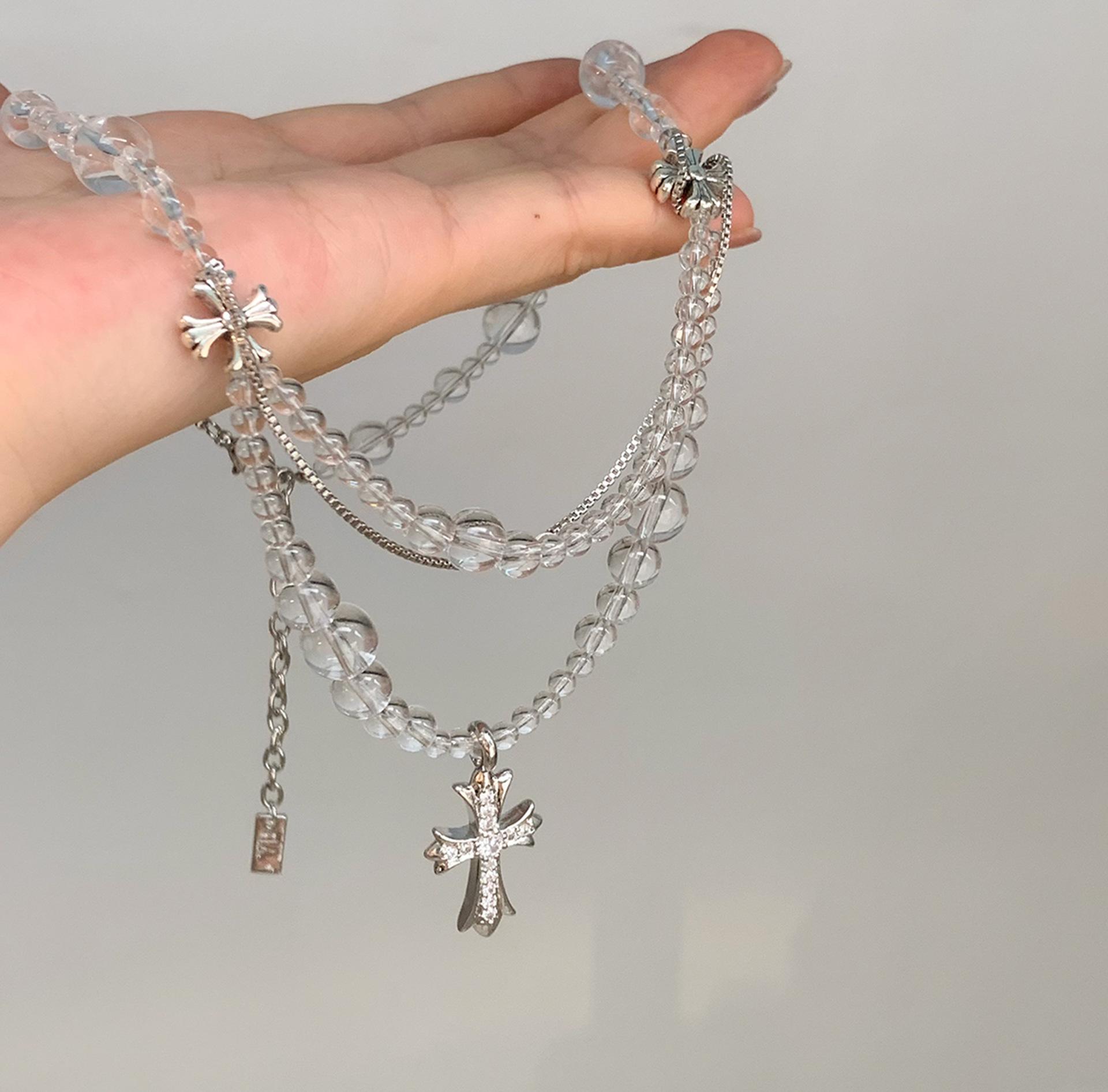 Compra Collar versátil con colgante de cruz de cristal multicapa empalmado, diseño nicho para mujer, temperamento de lujo ligero de alta gama al por mayor en Joom.pro