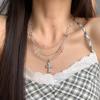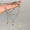 Collar versátil con colgante de cruz de cristal multicapa empalmado, diseño nicho para mujer, temperamento de lujo ligero de alta gama