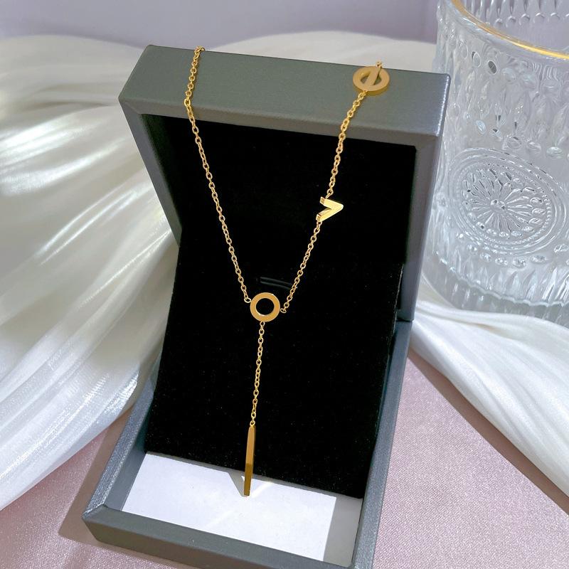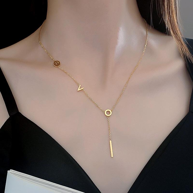 Compra [Acero de titanio de cuerpo completo] Collar de oro real para amantes del minimalwind, accesorios de cadena de clavícula roja de red ins para mujer al por mayor en Joom.pro
