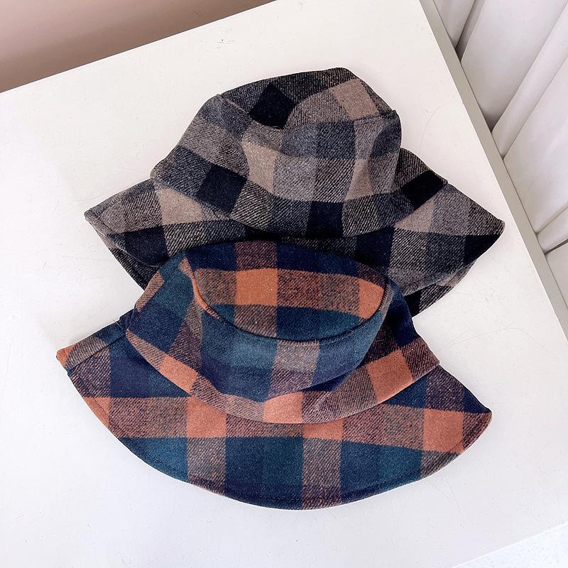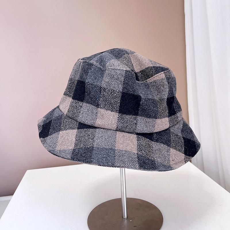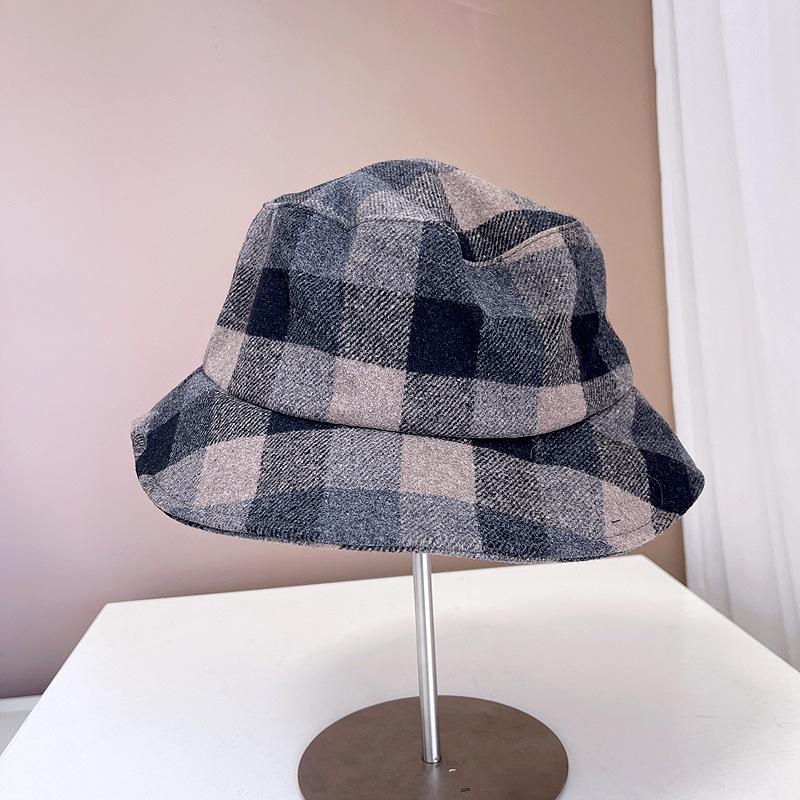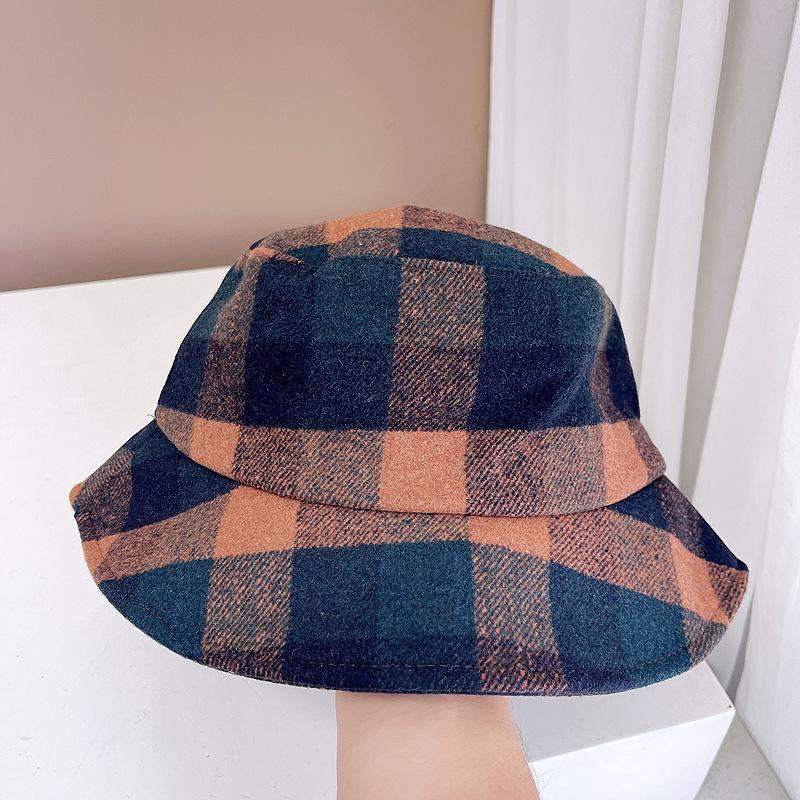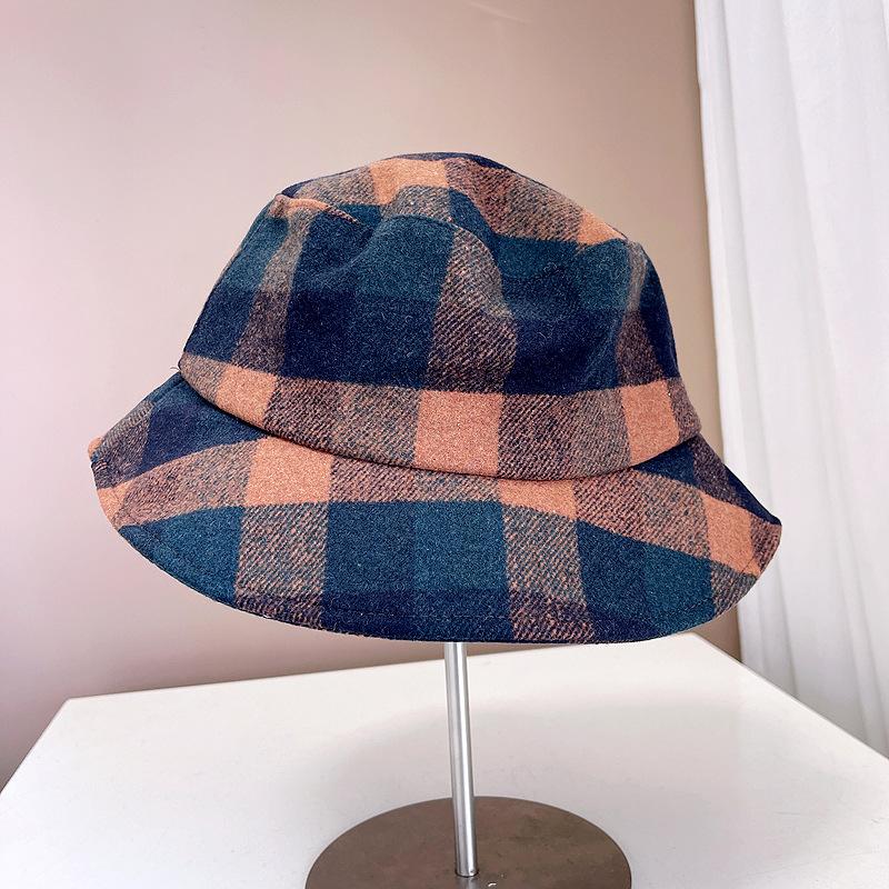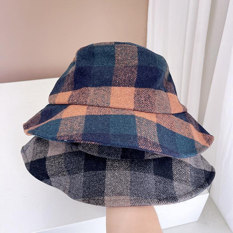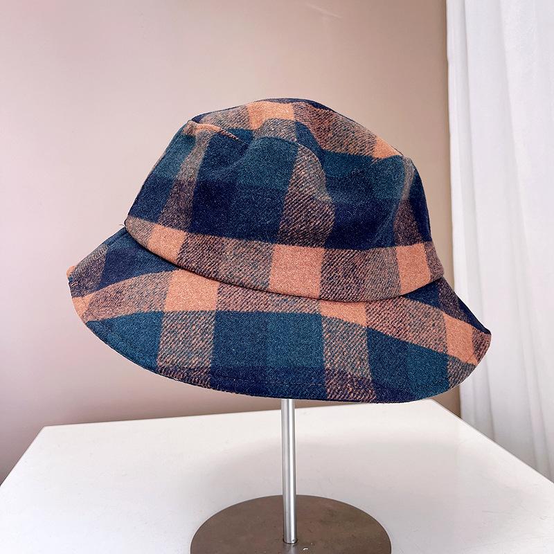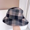 2024 Otoño e Invierno Nuevo Vintage Color Contraste Cuadros Sombrero de Pescador para Mujer Estilo Japonés Artístico Moda Sombrero de Cubo Sombrero Cálido para el Frío Trendy