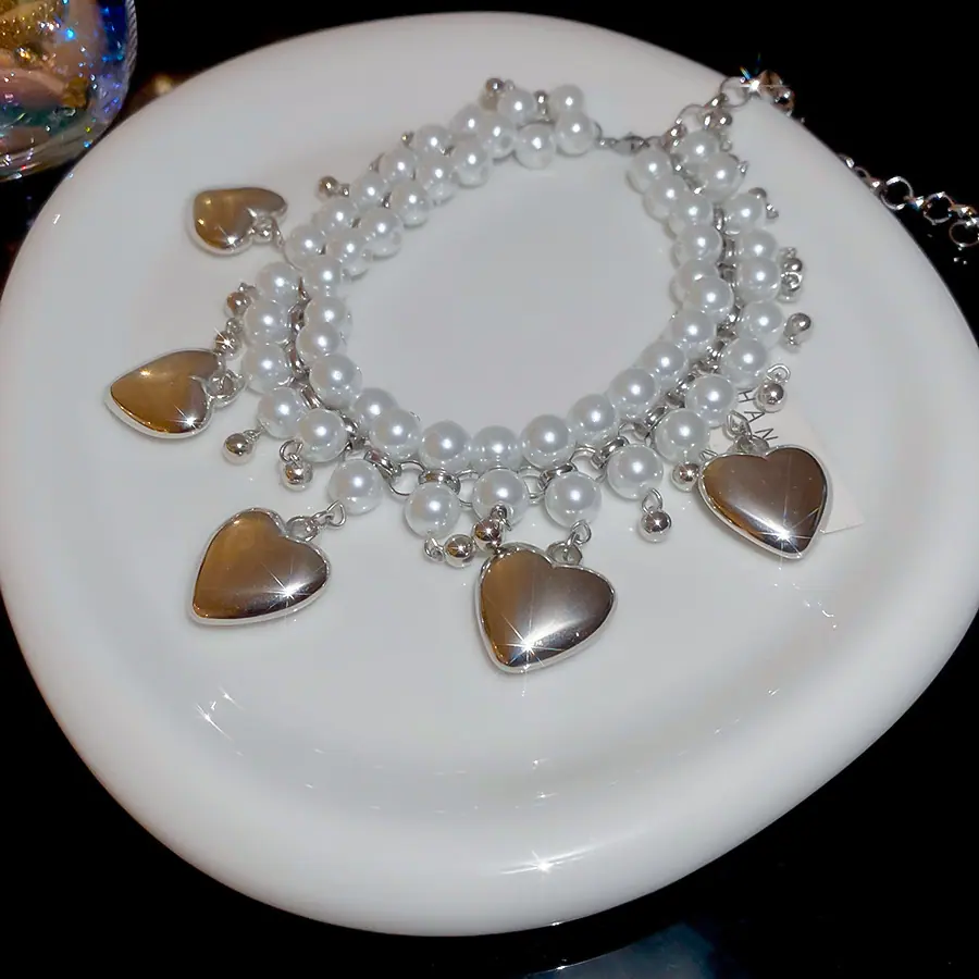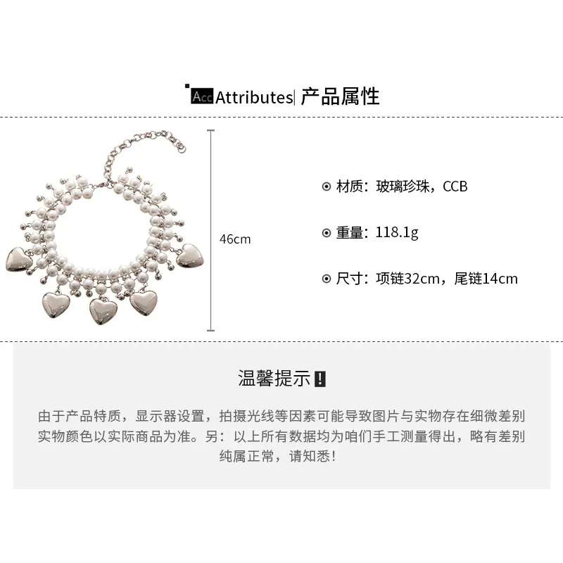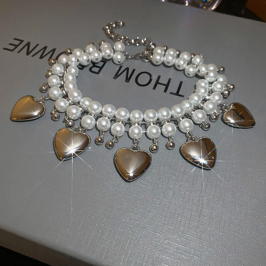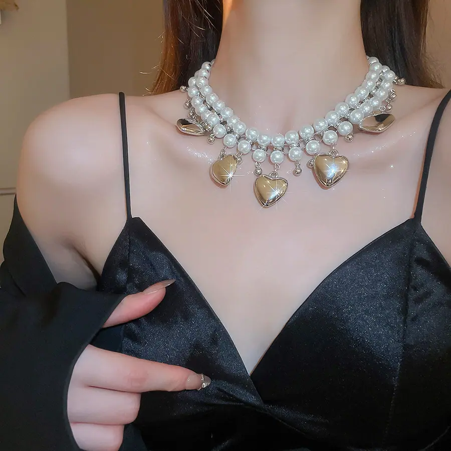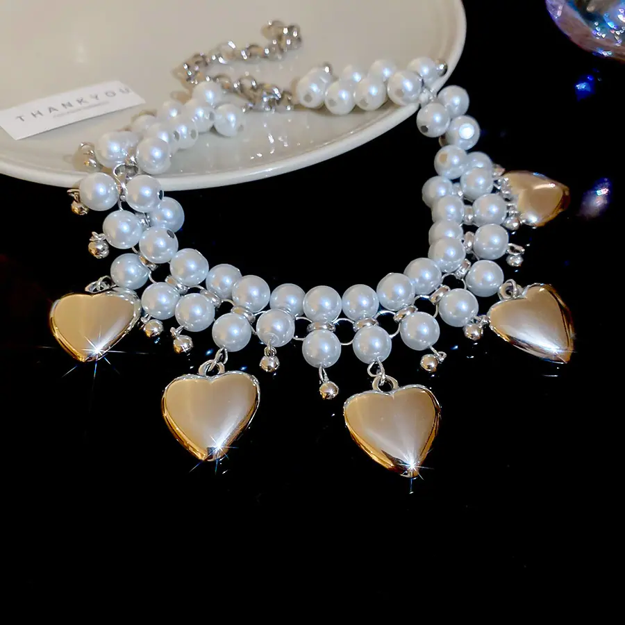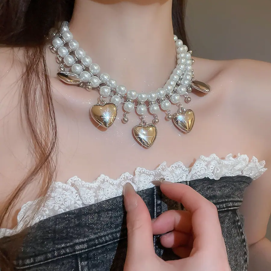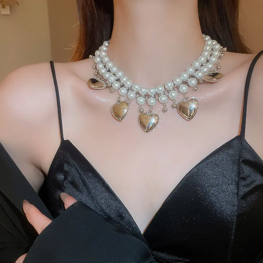 Collar de Perlas de Doble Capa Amor Europeo y Americano Cadena Clavicular de Estilo Frío Retro para Mujer Lujo Ligero de Alto Grado Cadena de Collar Elegante