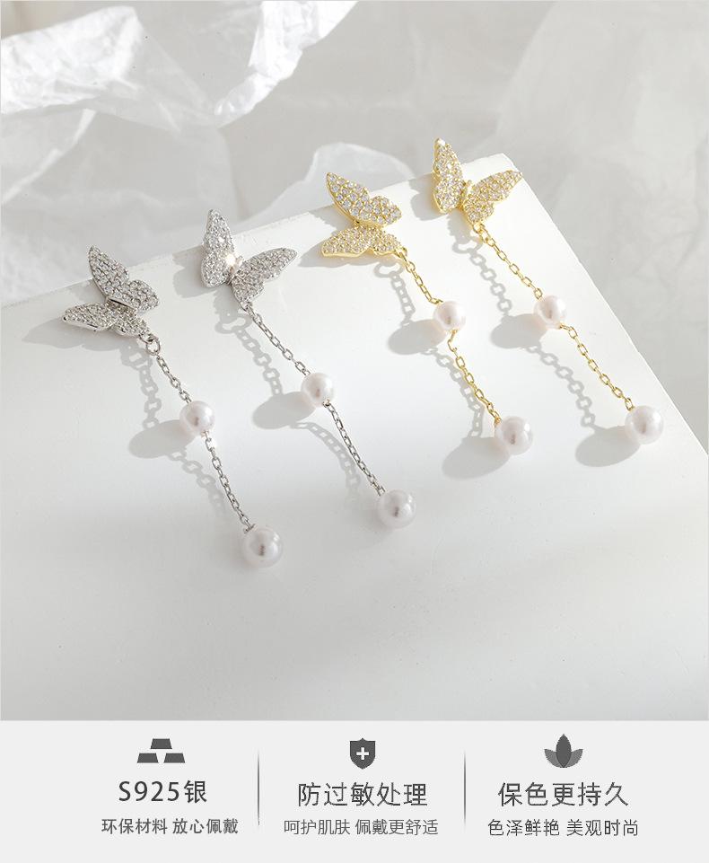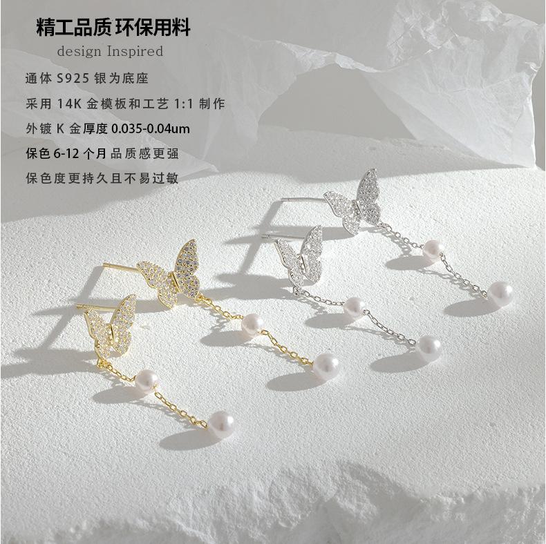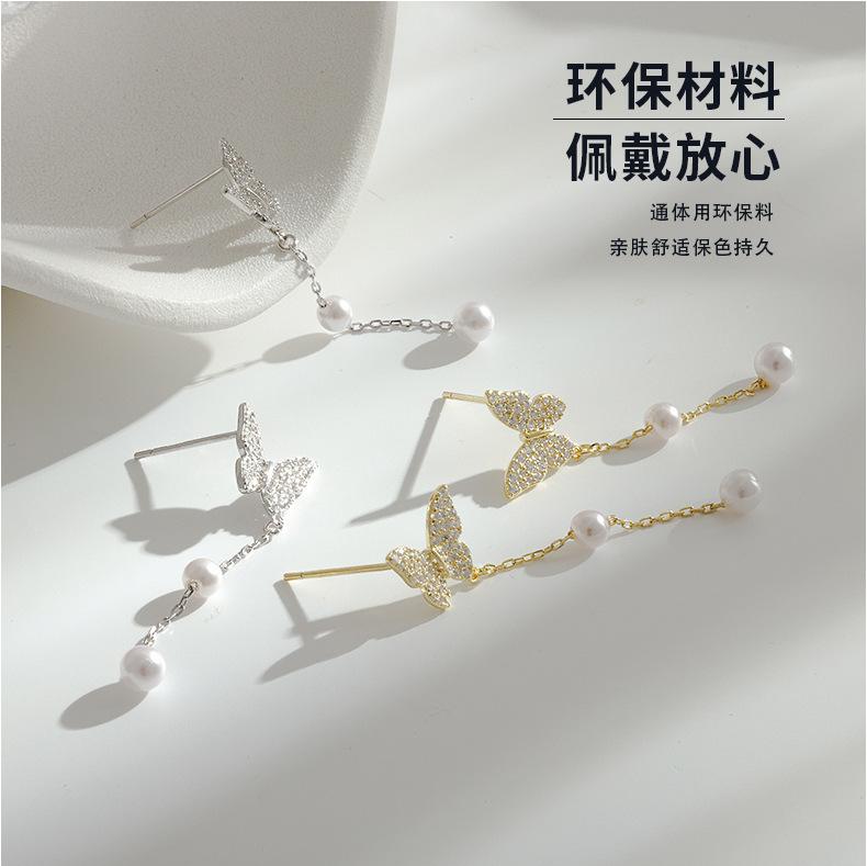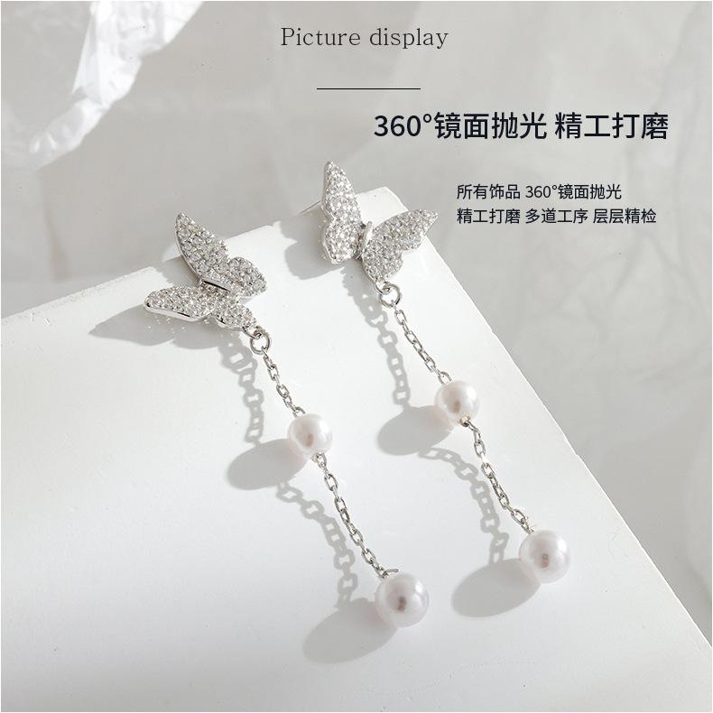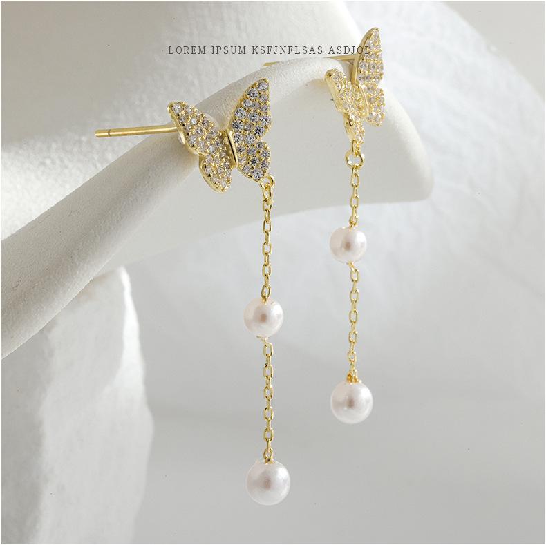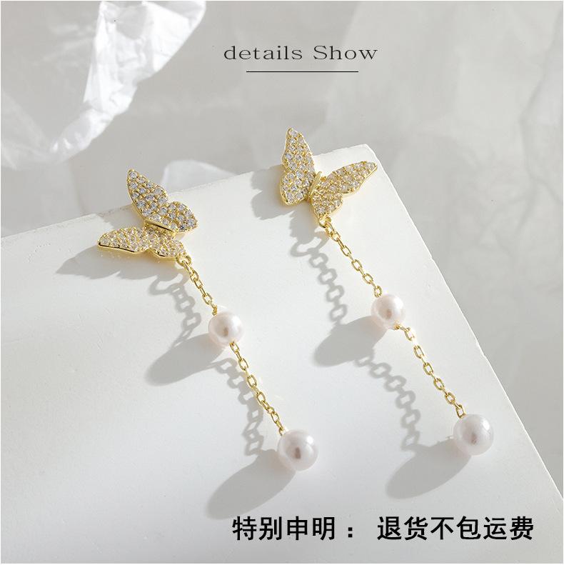 Aretes de Perlas de Mariposa Aretes Borla Larga Moda Combinable