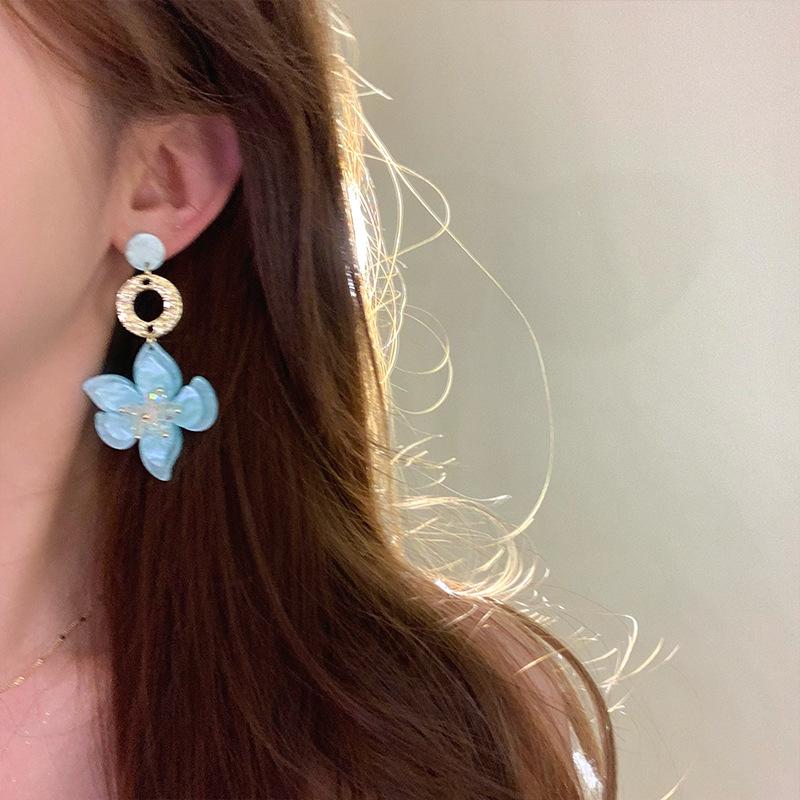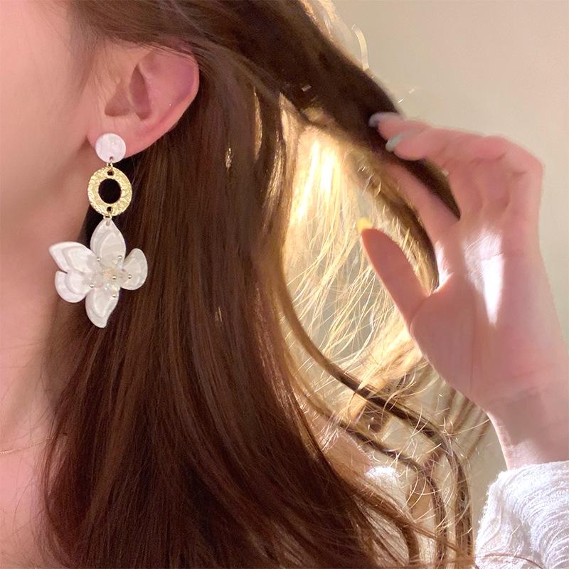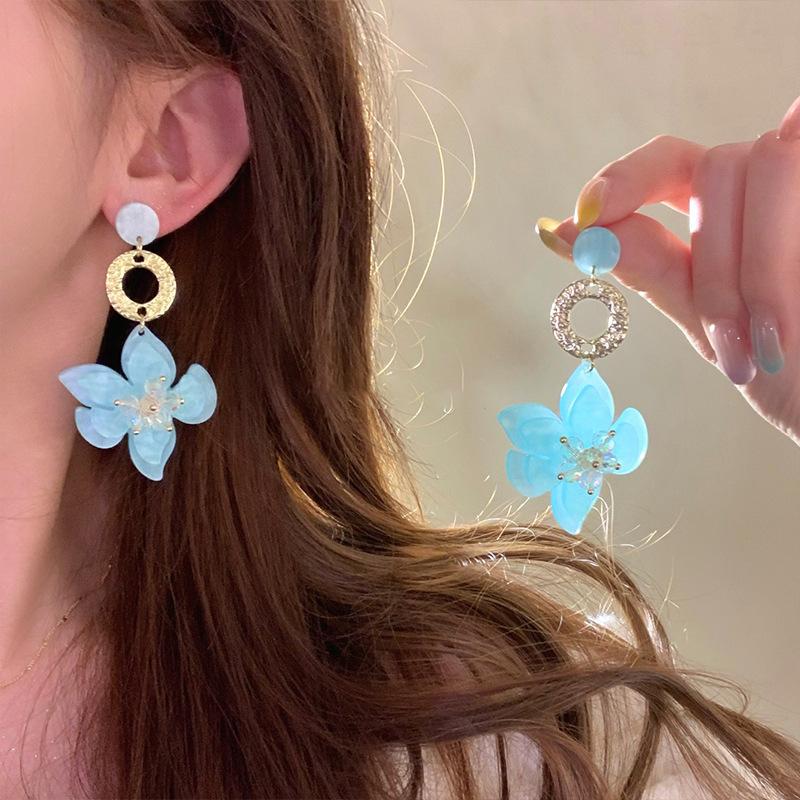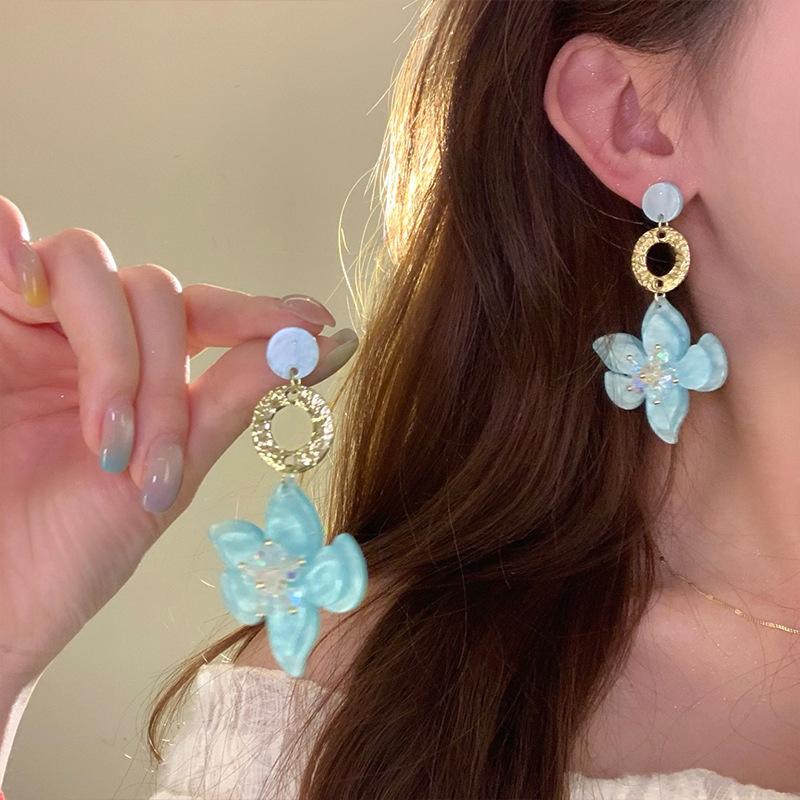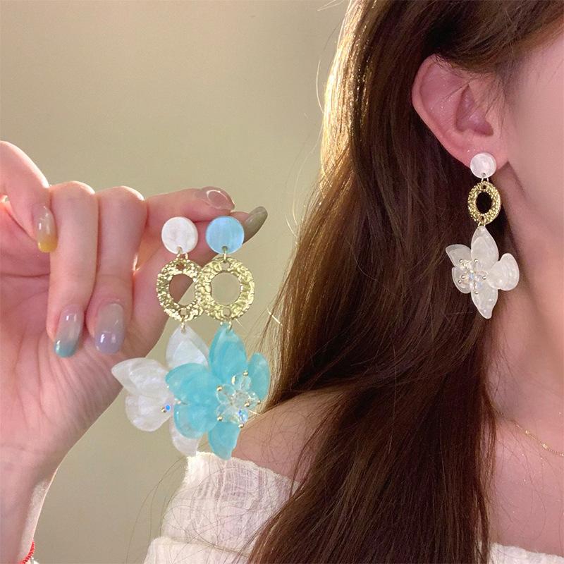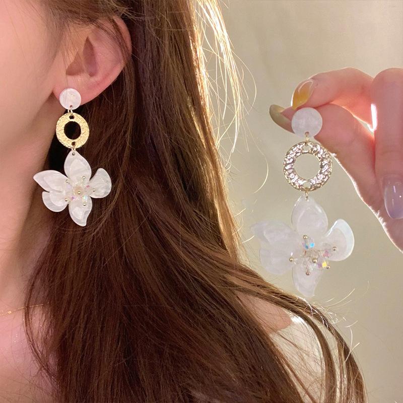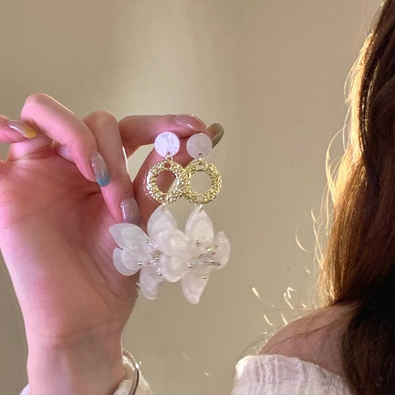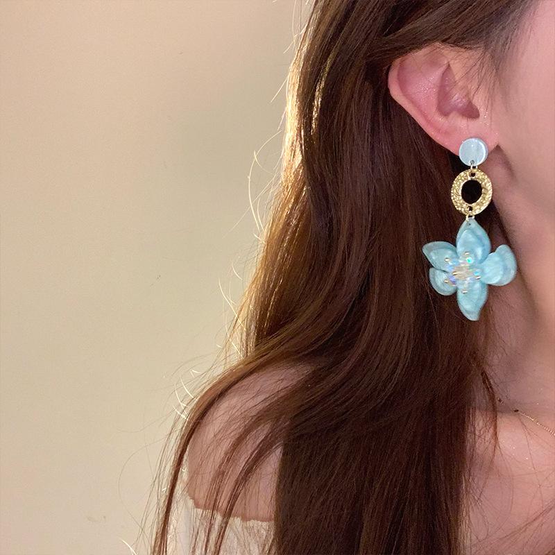 Compra Aretes de Borla de Flor de Resina Dulce Súper Hada Aguja de Plata Geométricos Personalidad Nicho Aretes Lujo Ligero Aretes de Alta Gama para Mujer al por mayor en Joom.pro