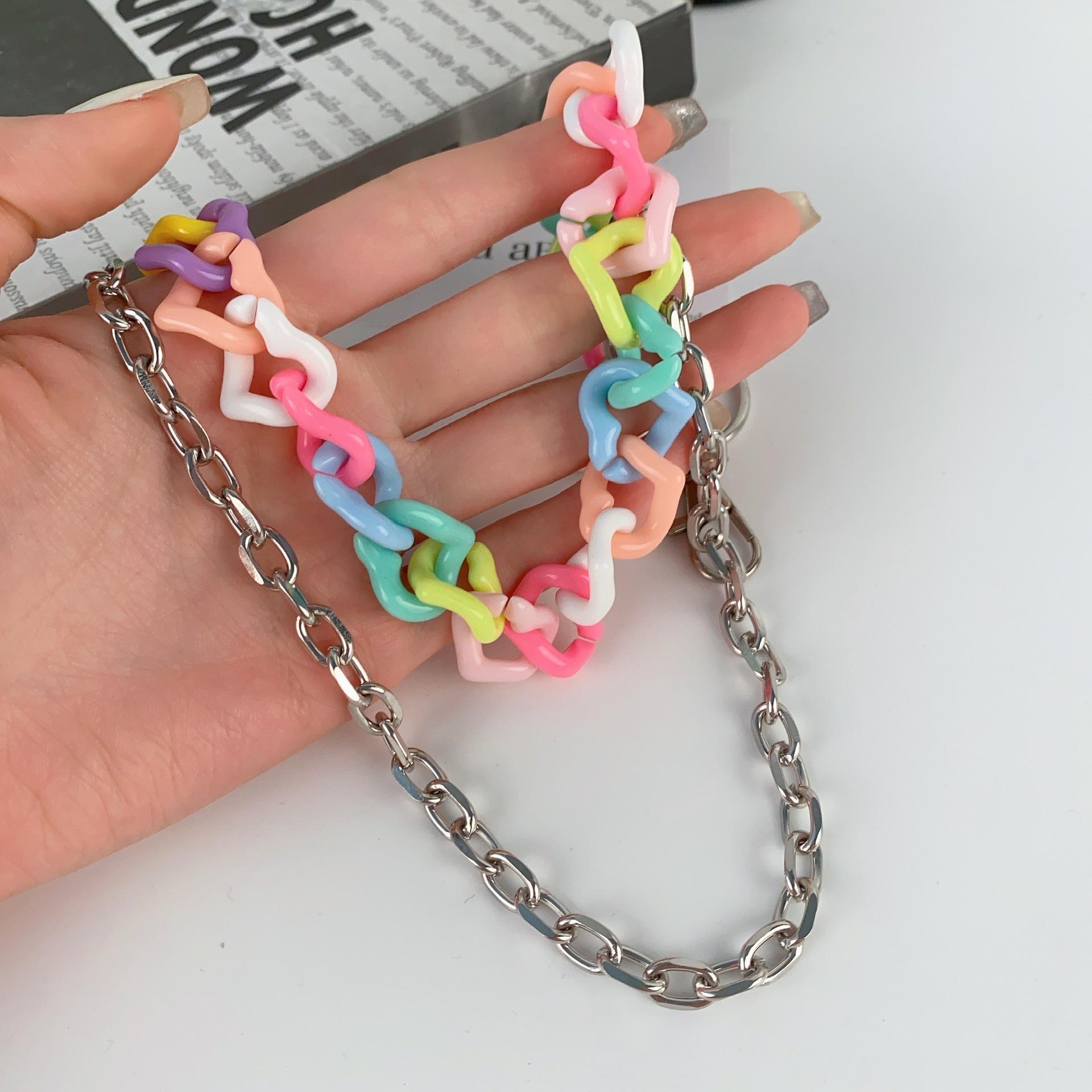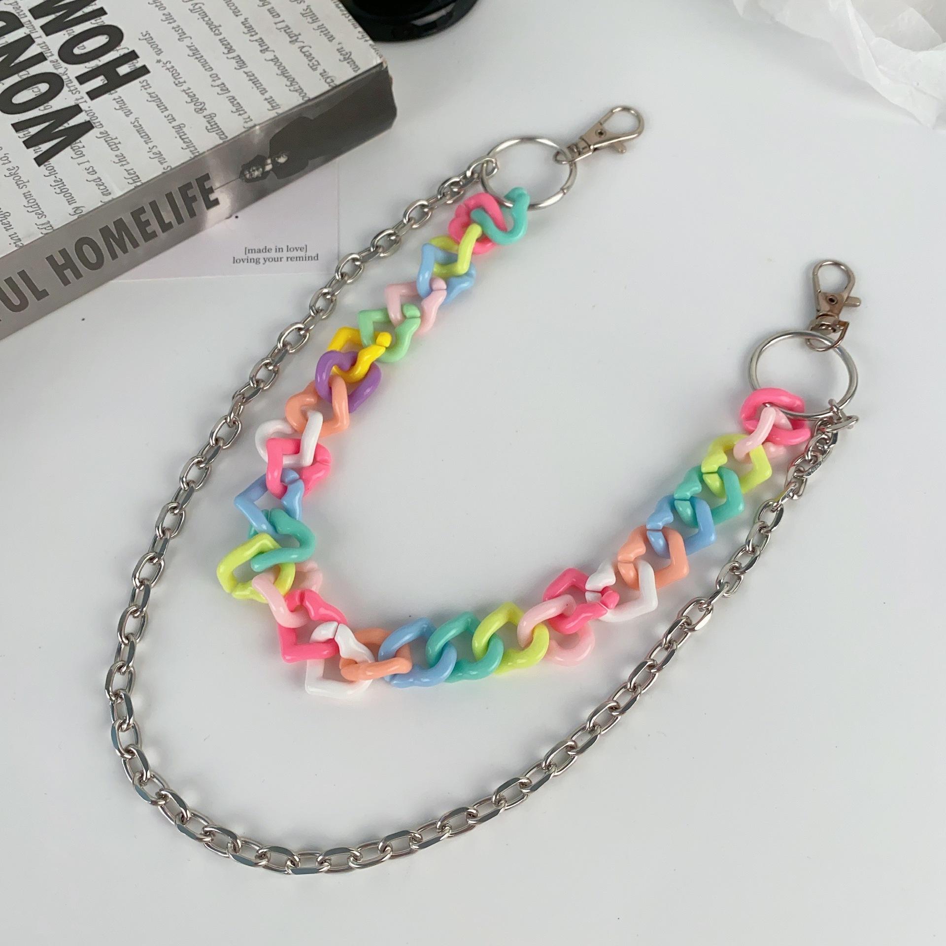 Colorida Cadena de Corazón de Dopamina, Cadena de Parchework para Pantalones para Mujer, Diseño Nicho Ins, Accesorio Dulce, Cool, Versátil, Accesorio de Moda