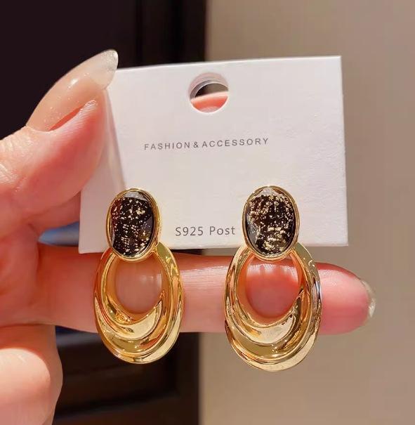 Aretes Plisados Retro Estilo Vintage Lámina de Oro Nicho Lujo Ligero Celebridad de Internet Versátiles Aretes de Tuerca de Aguja de Plata Aretes de Personalidad de Alta Gama