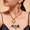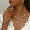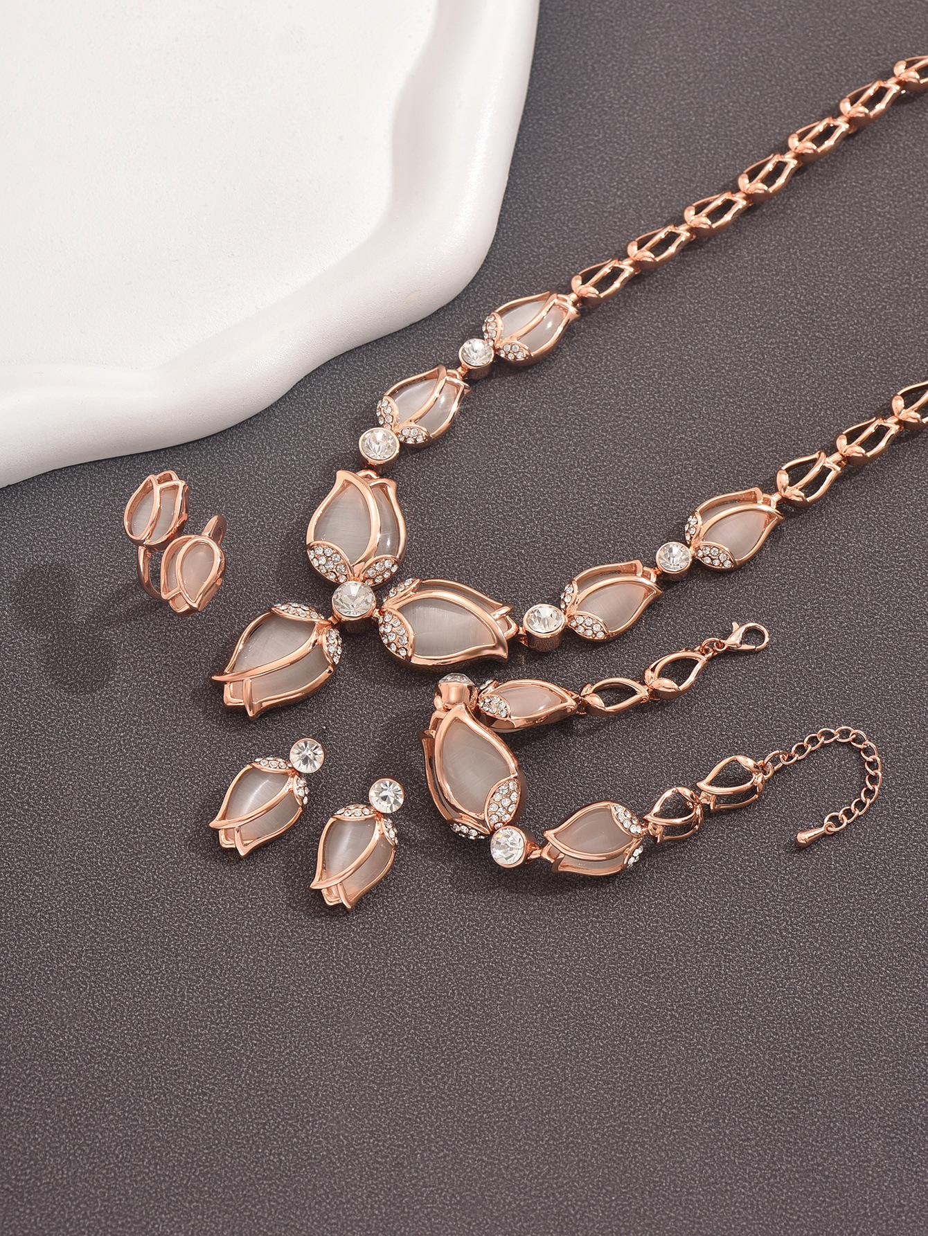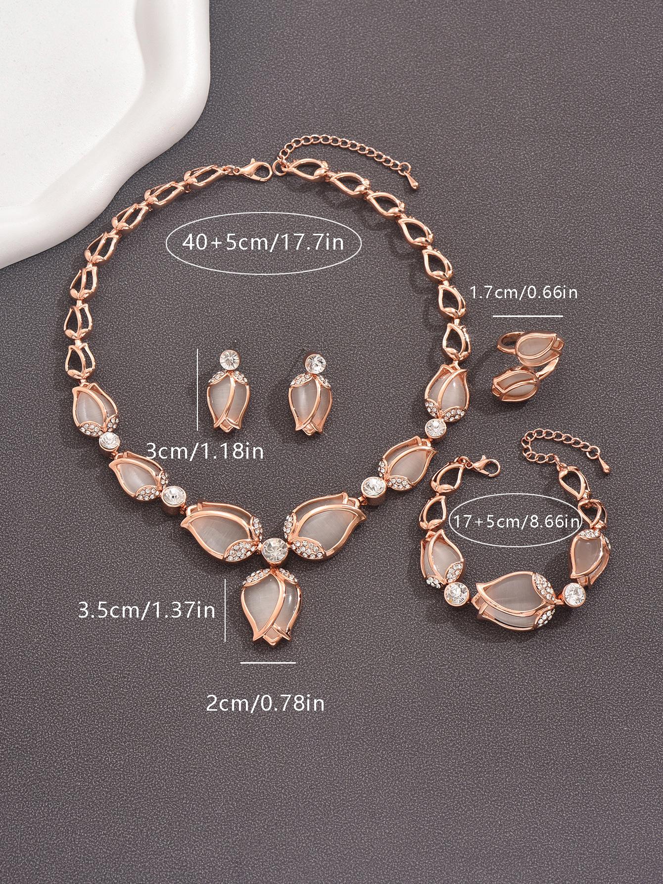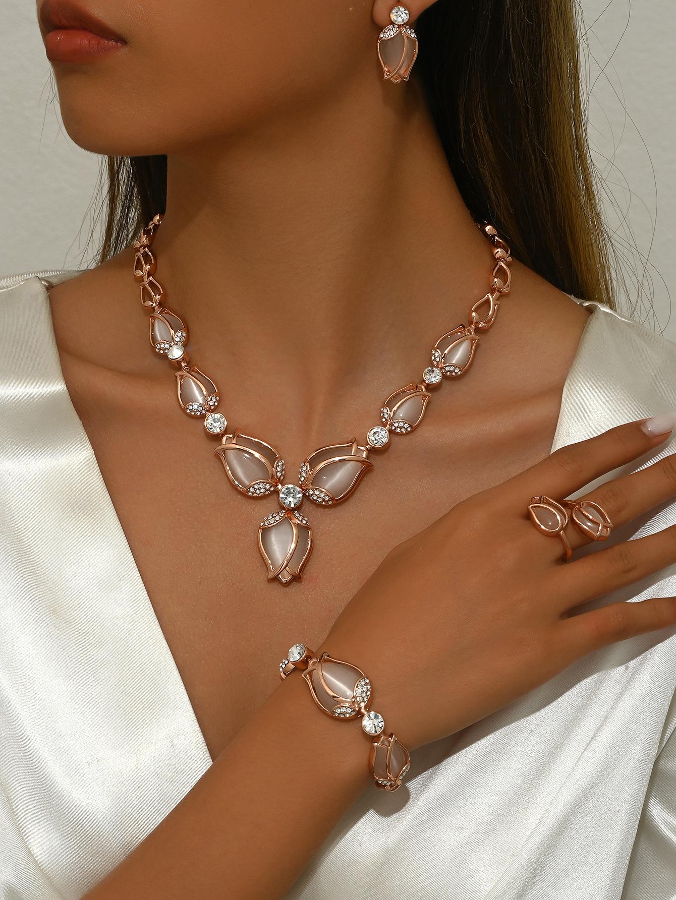 Juego de Joyería de Cuatro Piezas de Moda Europea y Americana, Collar de Tulipán Ojo de Gato Chapado en Oro de 18K, Aretes, Pulsera, Anillo